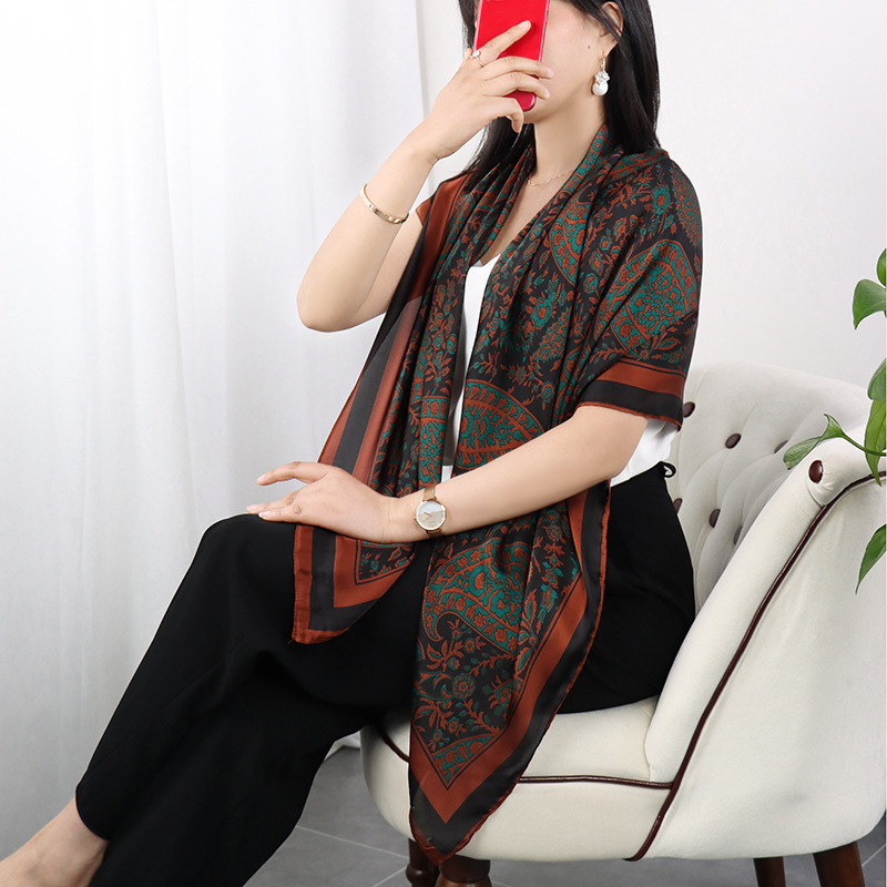 Xiaoxiang 봄과 가을 고급 실크 흑백 110 대형 스퀘어 스카프 리 브로케이드 새틴 폴리 에스터 스카프 동백 선 스크린 스카프 여성스토어 가기