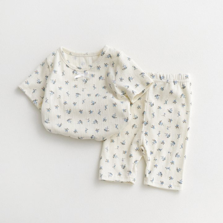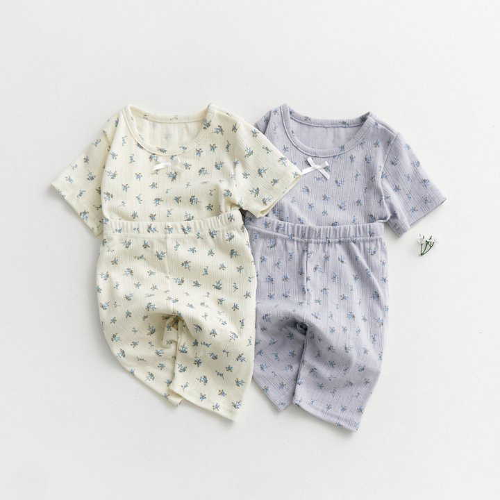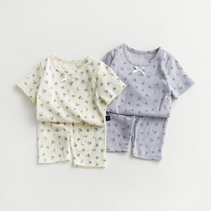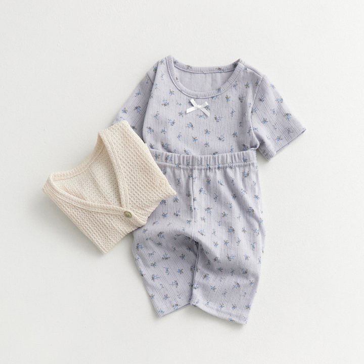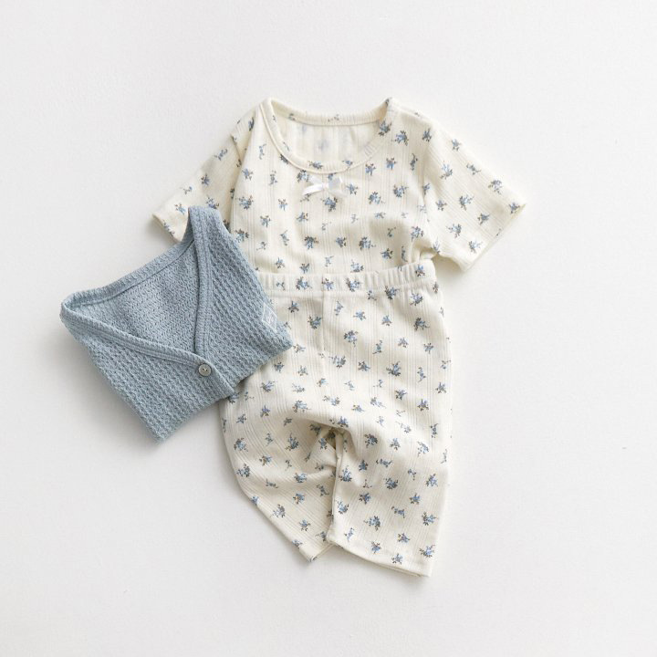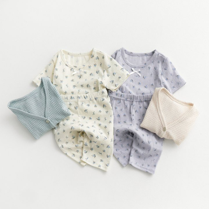 여름 소녀의 집 세트 2024 새로운 한국 스타일 작은 꽃 얇은 귀여운 공주 에어컨 세트 투피스 세트스토어 가기