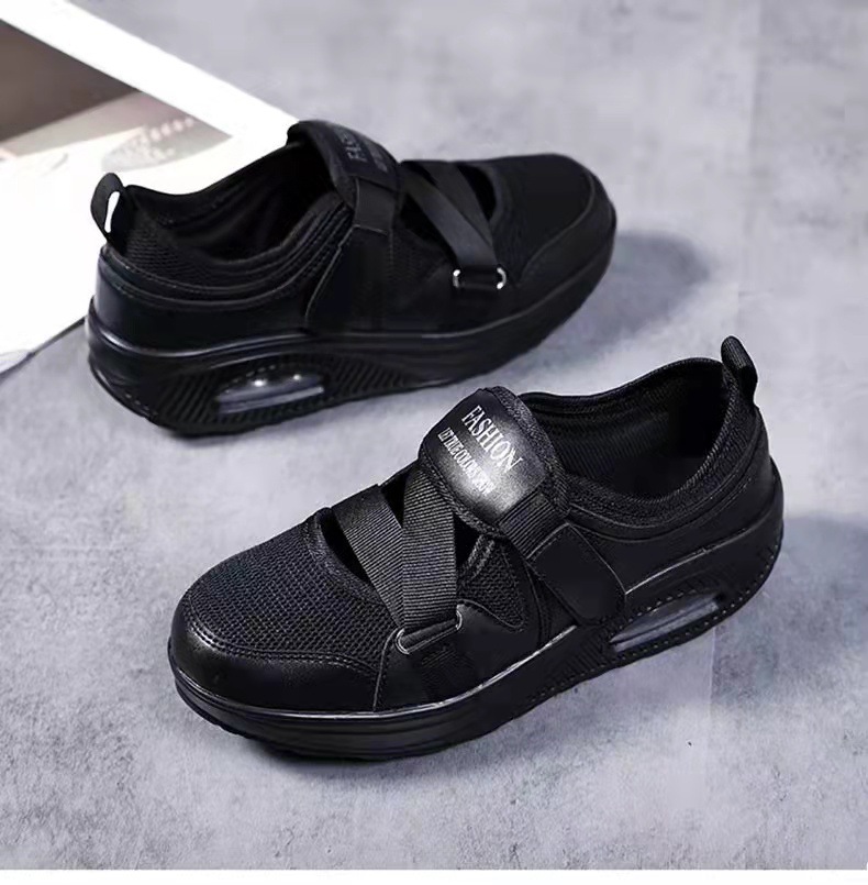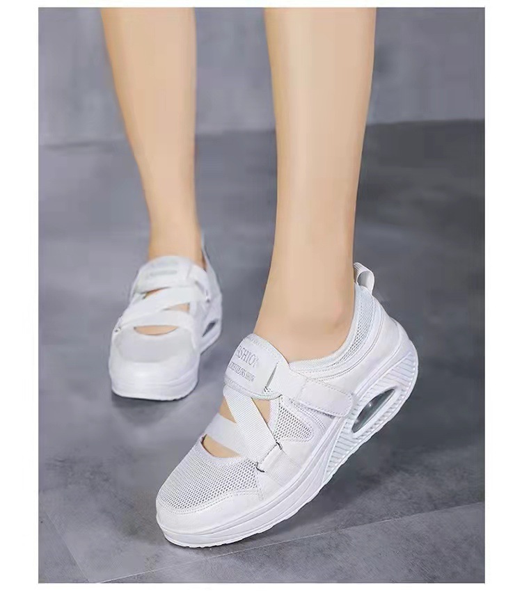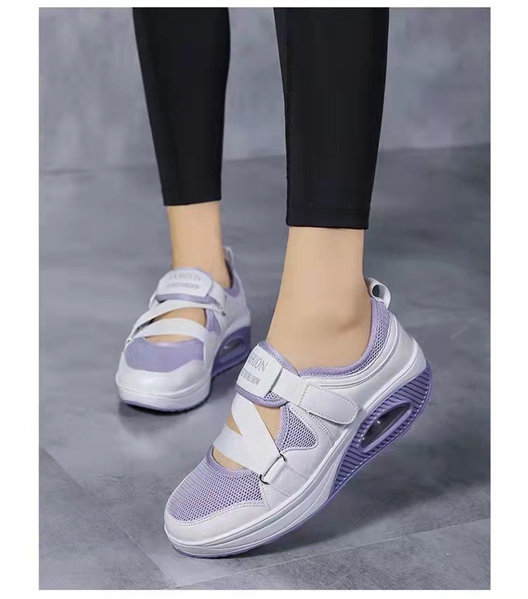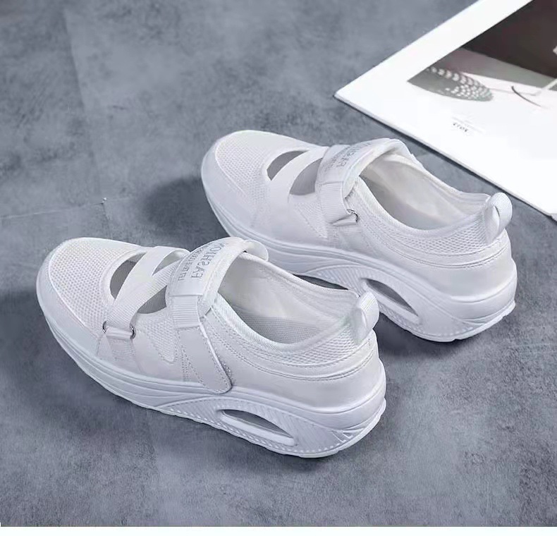 2024 년 여름 새로운 통기성 국경 뜨거운 공기 쿠션 여성 싱글 신발 두꺼운 단독 에어 쿠션 여성 캐주얼 신발 벨크로 신발 배치스토어 가기