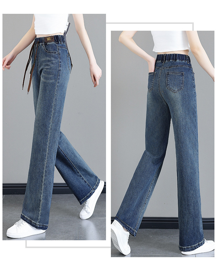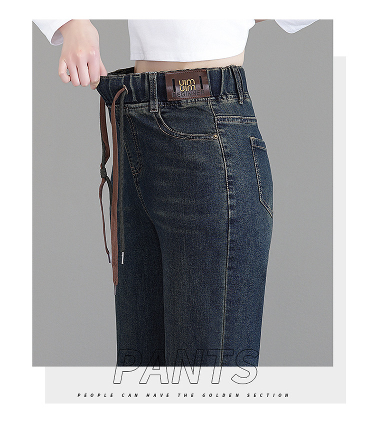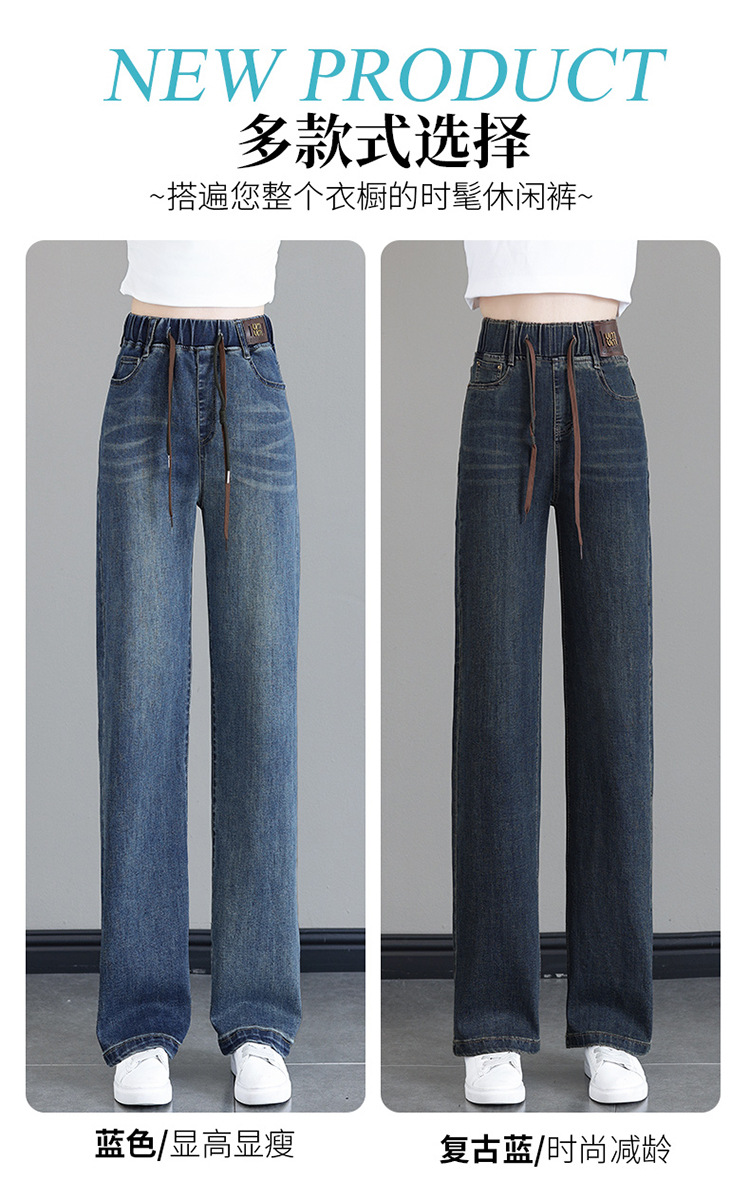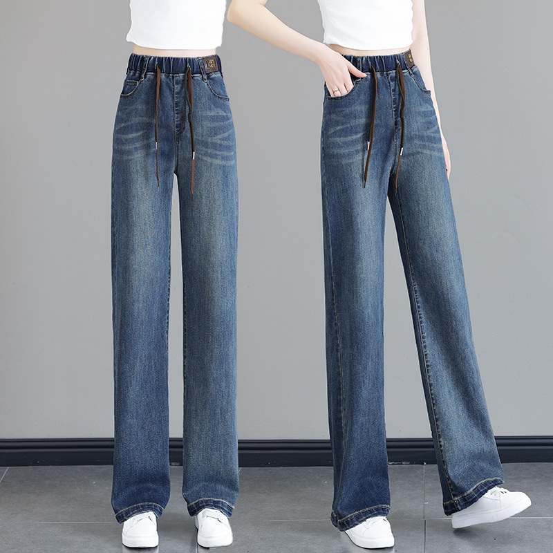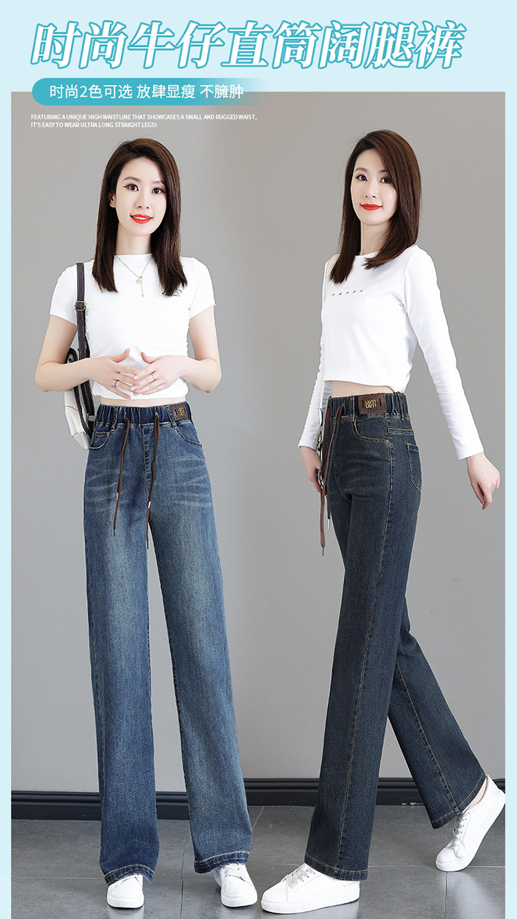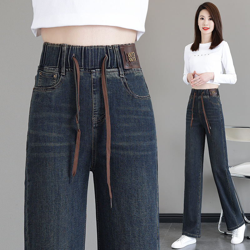 여성용 하이웨이스트 신축성 청바지 2025 봄 가을 신상 루즈한 대형 슬림하고 키가 큰 9부 스트레이트 와이드 팬츠스토어 가기