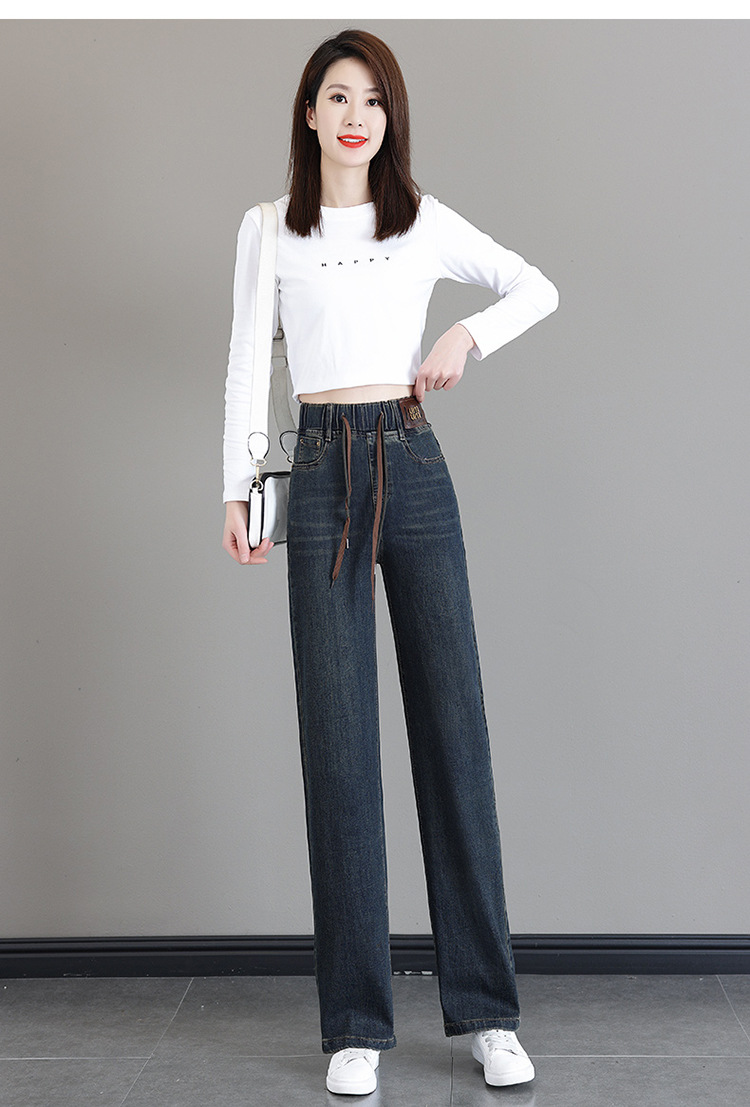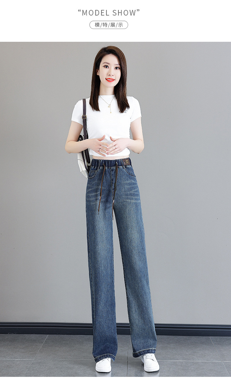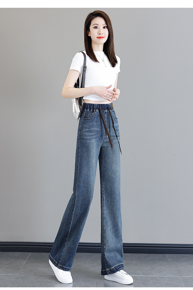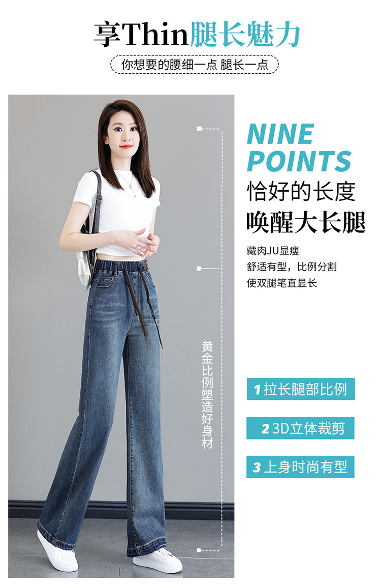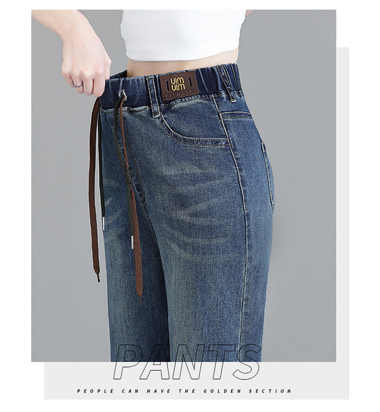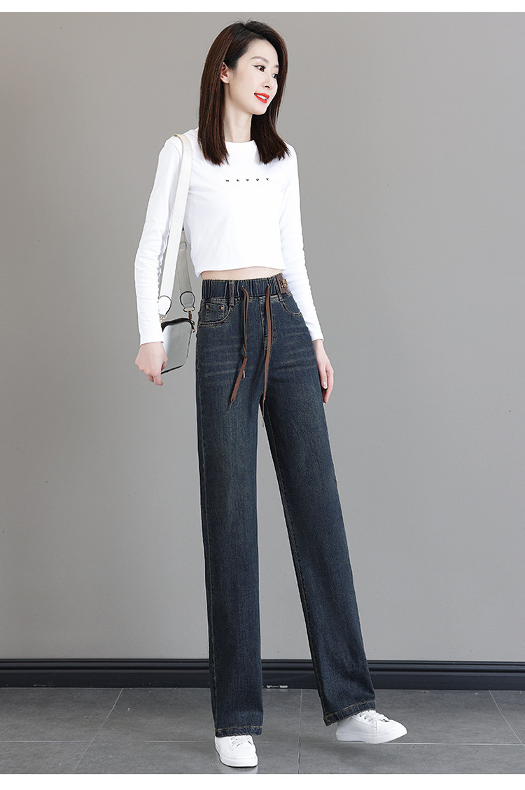 여성용 하이웨이스트 신축성 청바지 2025 봄 가을 신상 루즈한 대형 슬림하고 키가 큰 9부 스트레이트 와이드 팬츠스토어 가기