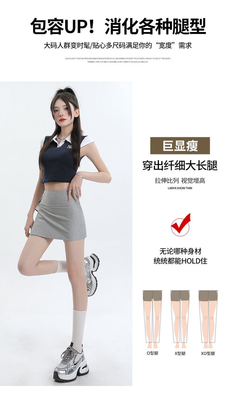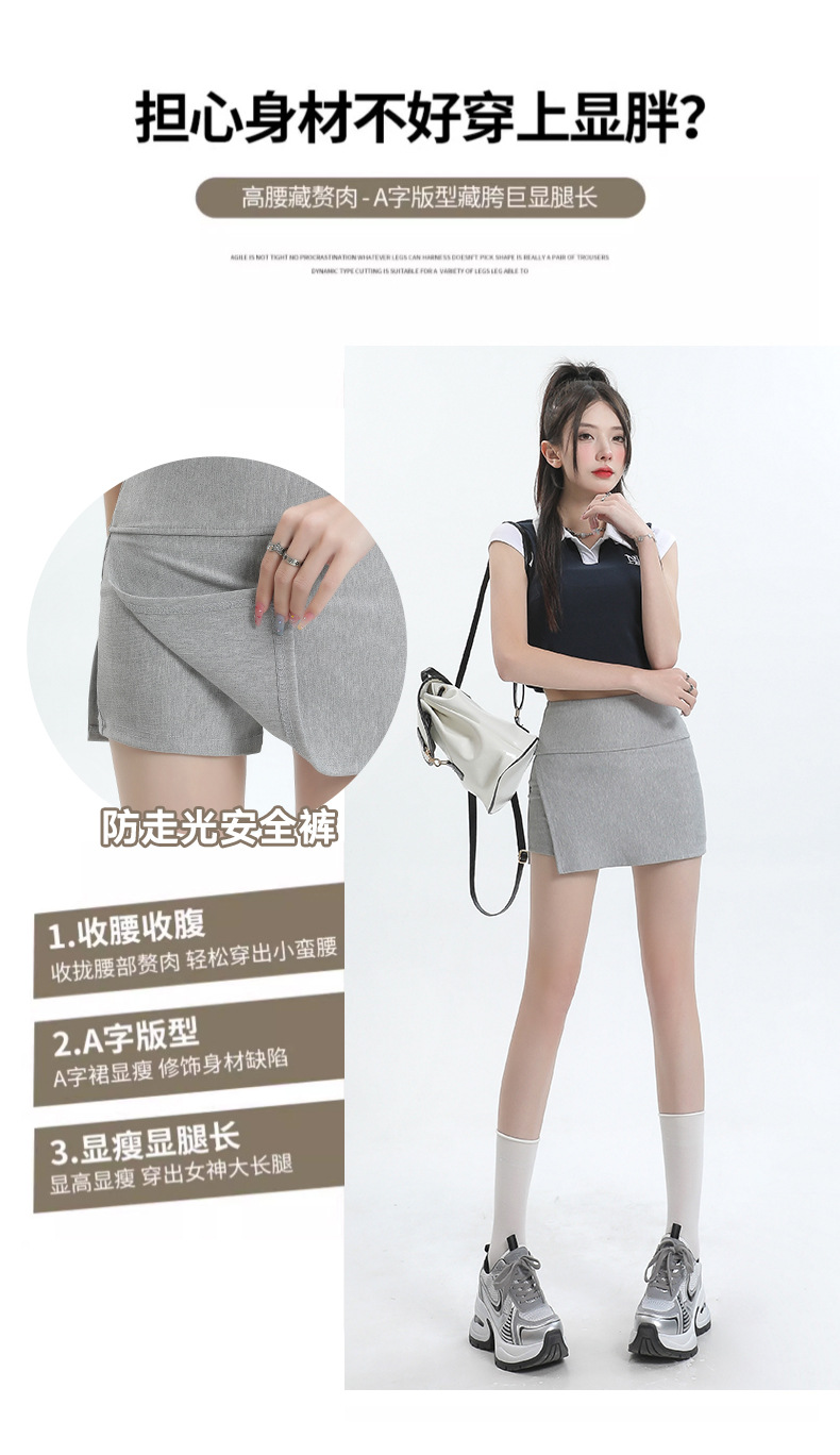 높은 허리 A 라인 스커트 바지 여성의 여름 얇은 슬림 스커트 안티 라이트 스커트 여성 라이트 그레이 핫 걸 반바지스토어 가기