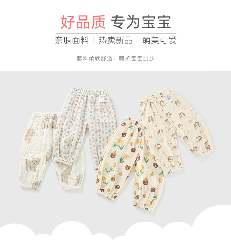 모기 방지 바지 소년 봄과 여름 바지 만화 작은 동물 어린이 얇은 바지 여름 에어컨 바지 아기 안티 모기 바지