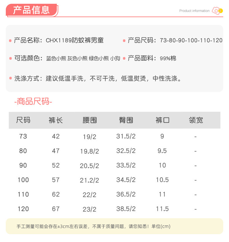 모기 방지 바지 소년 봄과 여름 바지 만화 작은 동물 어린이 얇은 바지 여름 에어컨 바지 아기 안티 모기 바지스토어 가기