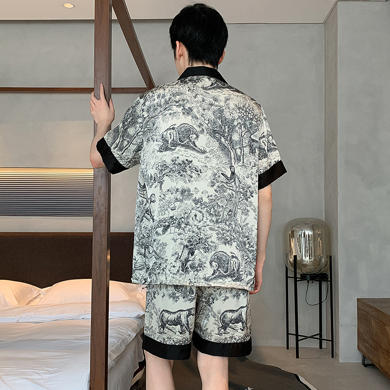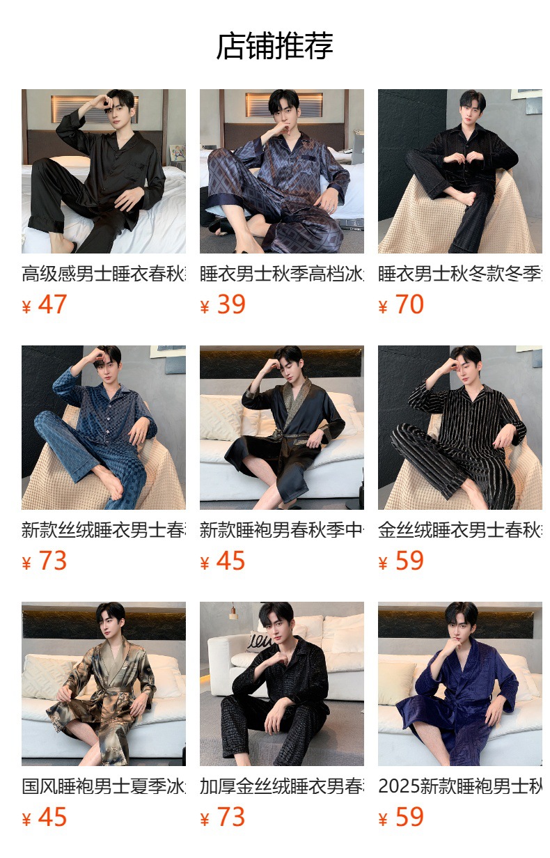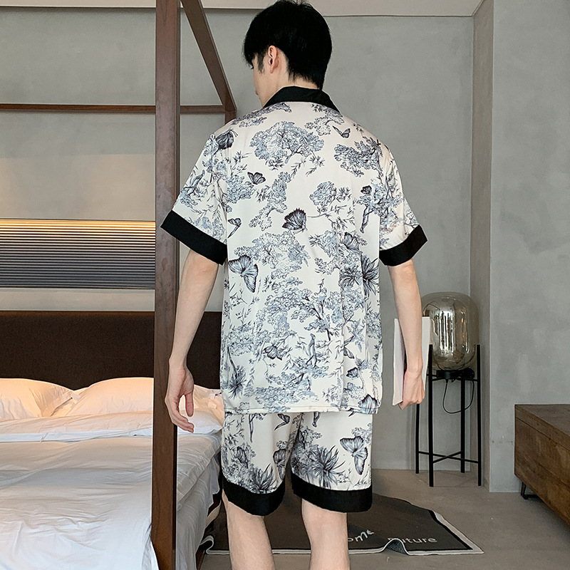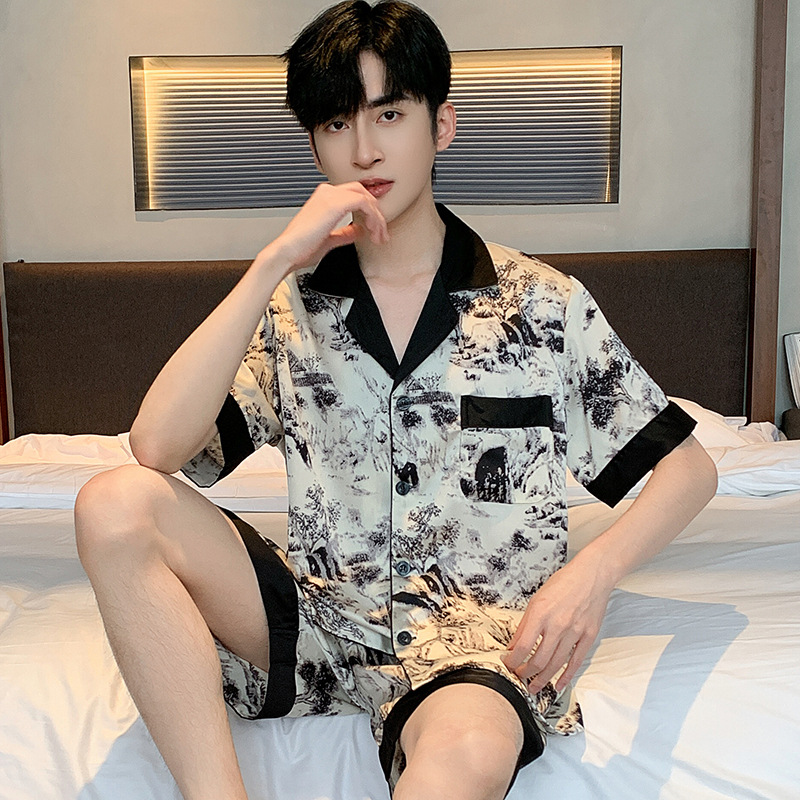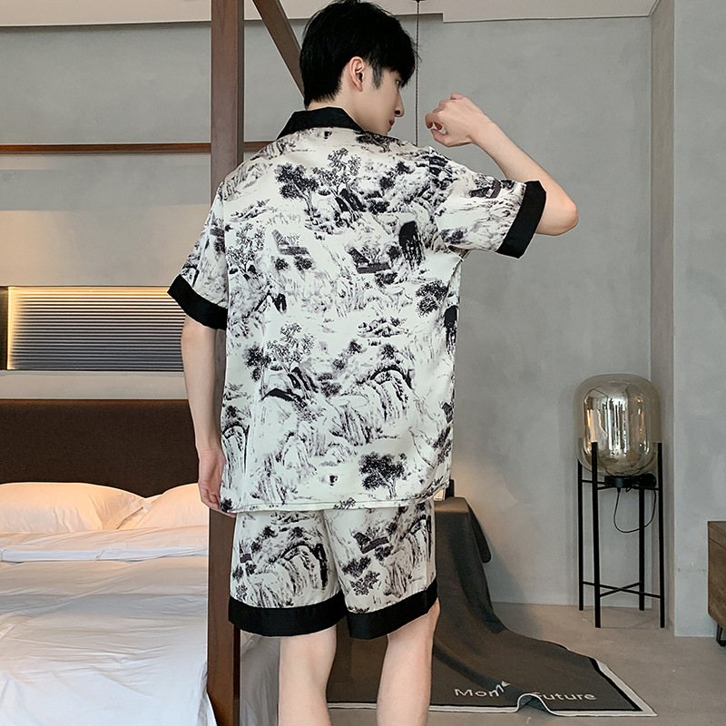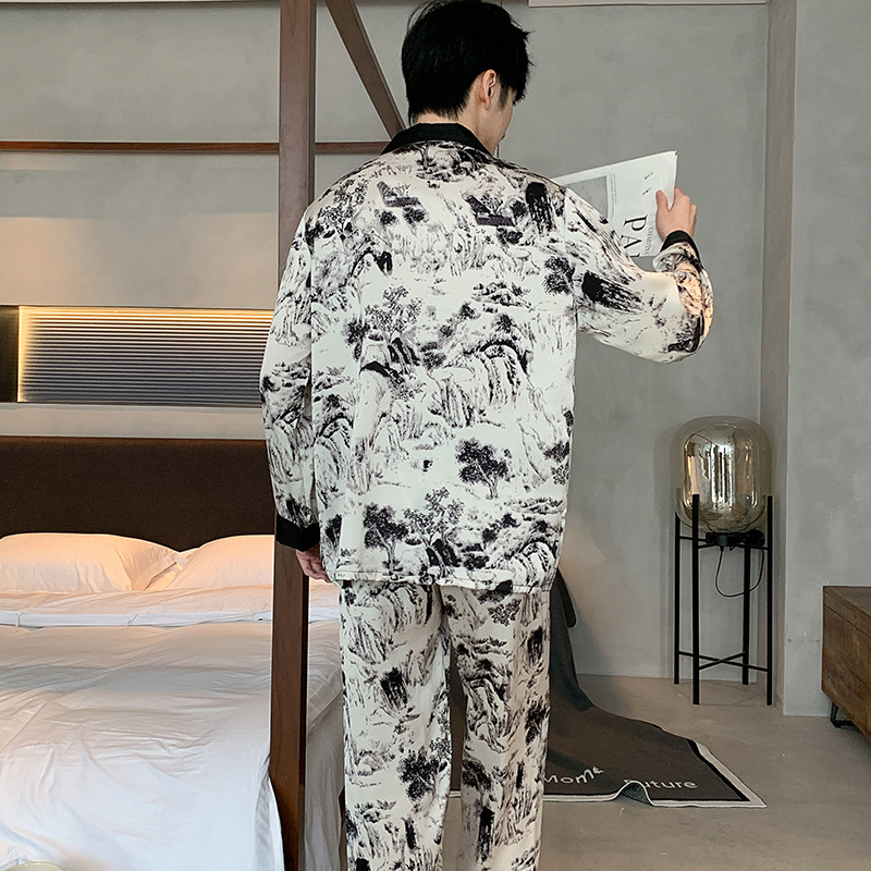 새로운 중국 스타일 국가 스타일 새틴 남성 잠옷 봄과 가을 긴 소매 아이스 실크 하이 엔드 스타일 의상스토어 가기