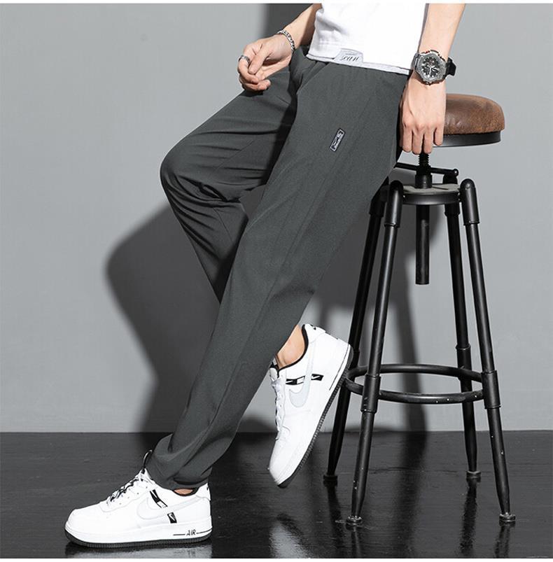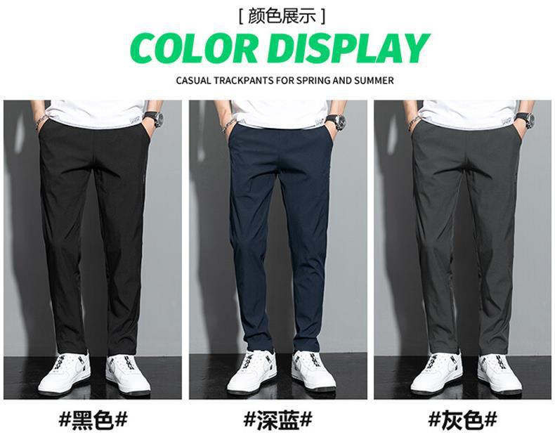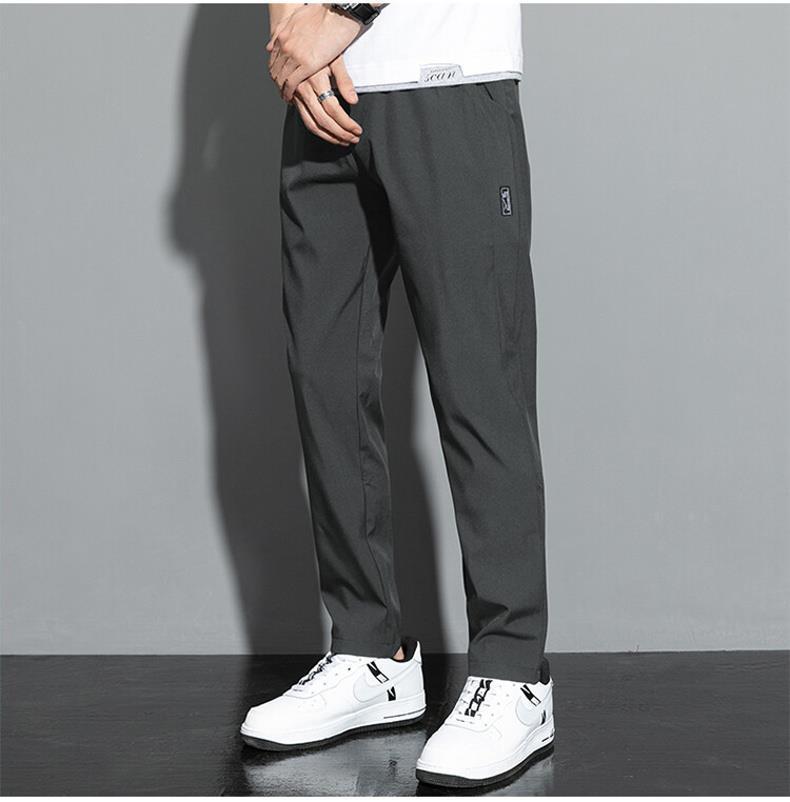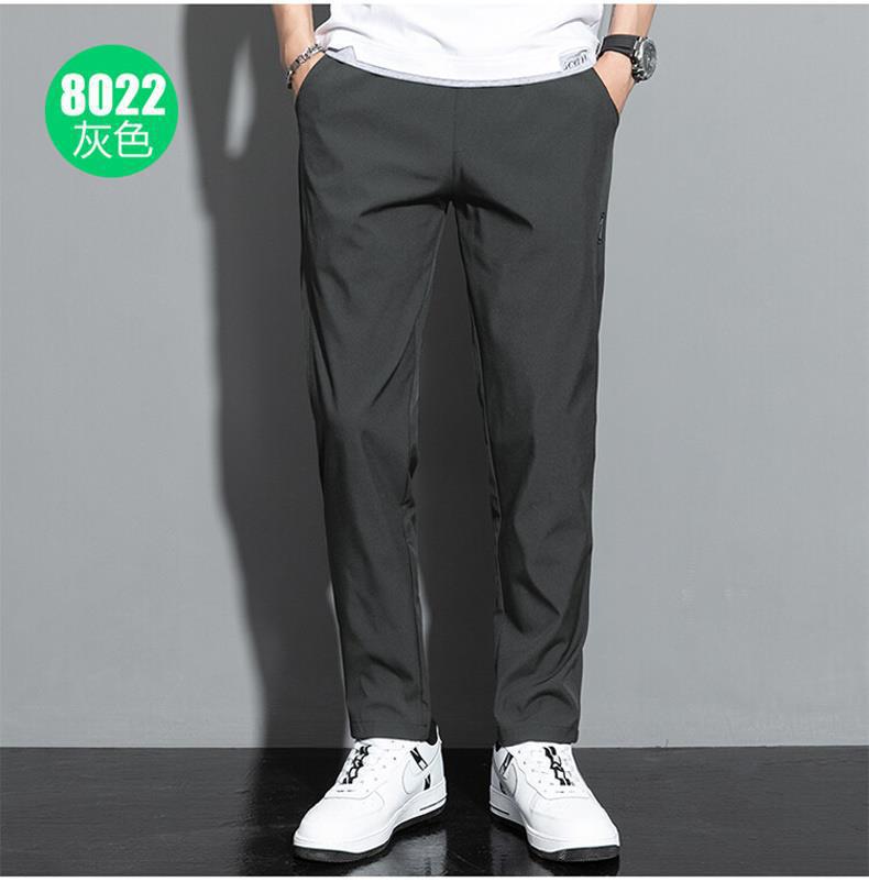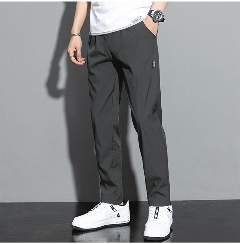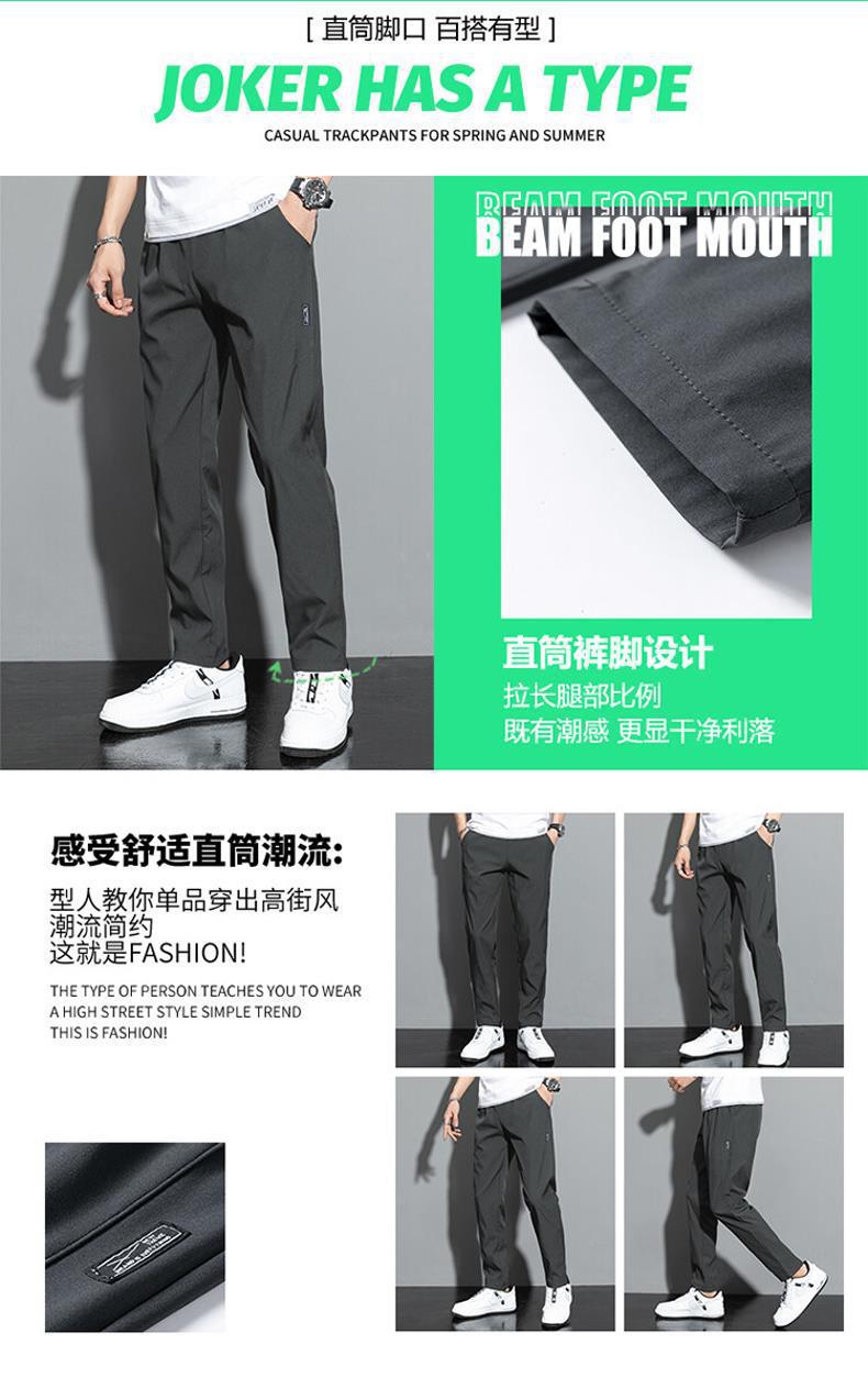 스트레이트 슬림 남성 캐주얼 바지 여름 얇은 아이스 실크 빠른 건조 여름 남성 패션 브랜드 스포츠 자른 서양 바지스토어 가기