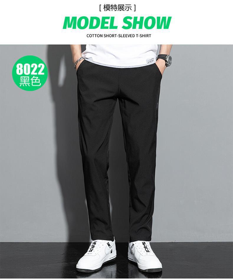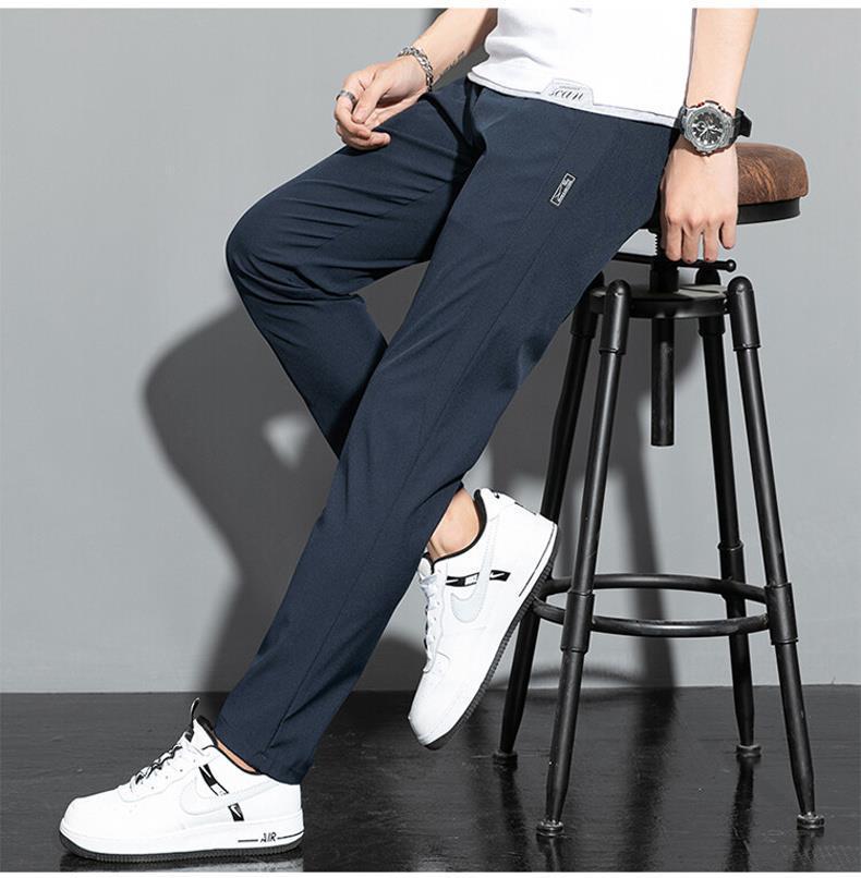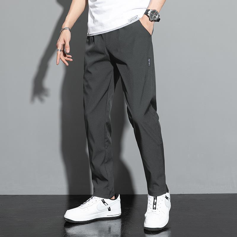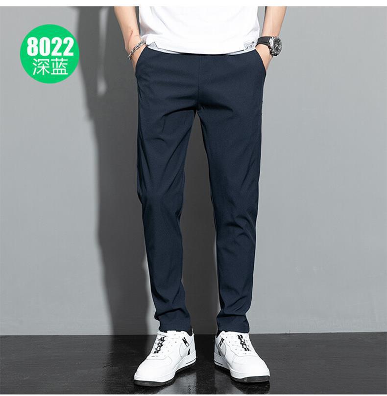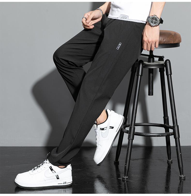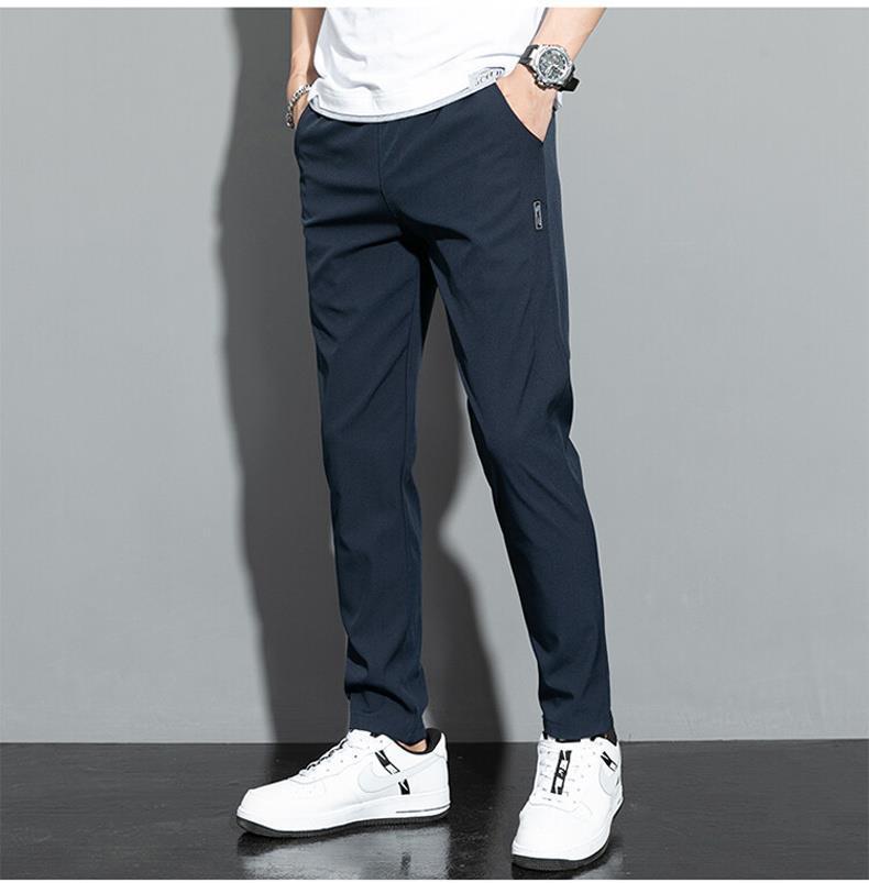 스트레이트 슬림 남성 캐주얼 바지 여름 얇은 아이스 실크 빠른 건조 여름 남성 패션 브랜드 스포츠 자른 서양 바지스토어 가기