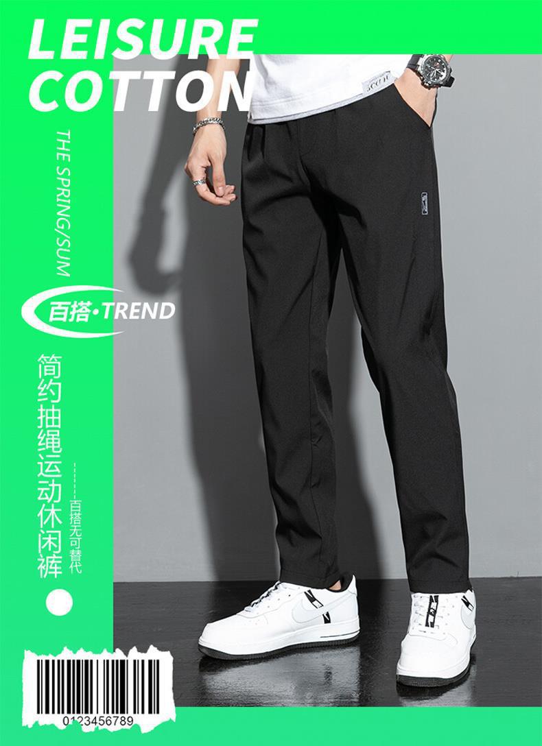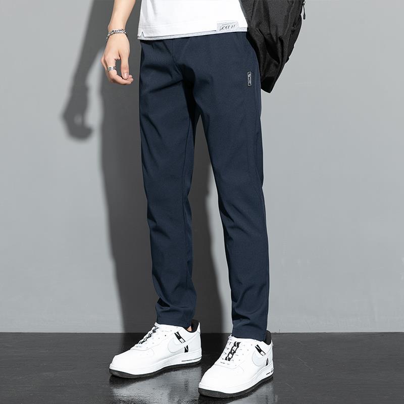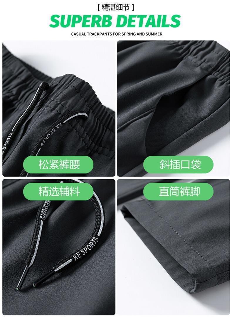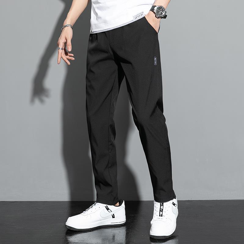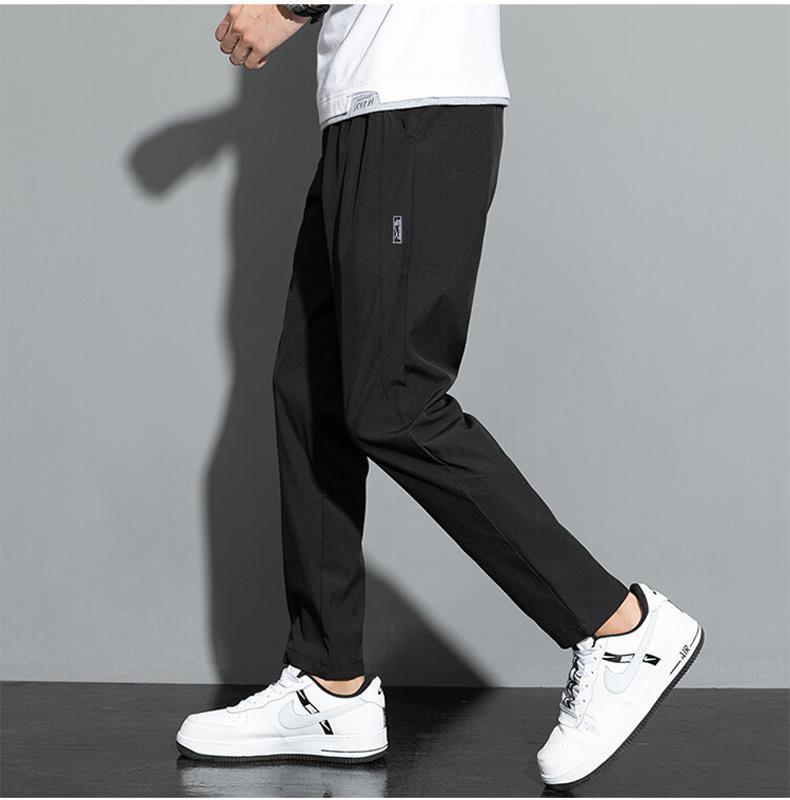 直筒修身男士休闲裤夏季薄款冰丝速干夏天男装潮牌运动九分西裤子