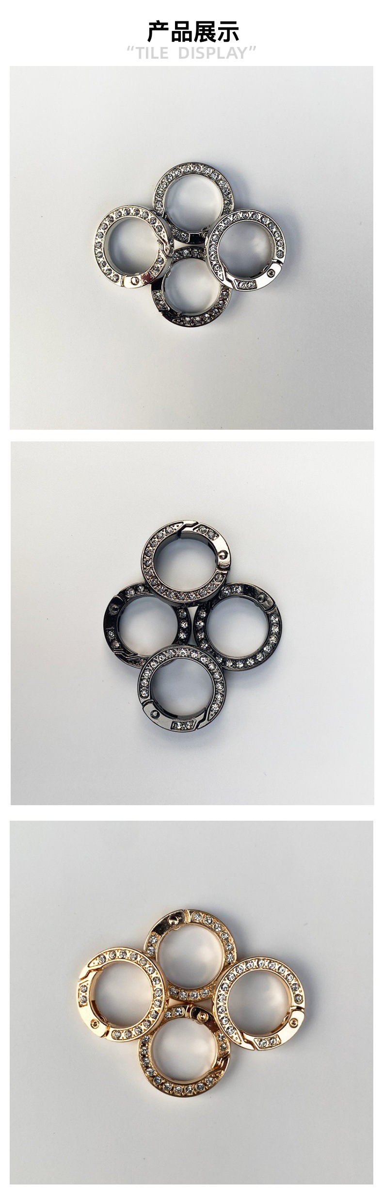 다이아몬드 스프링 링 아연 합금 오픈 링 금속 자동차 키 버클 말굽 버클 라운드 버클 DIY 쥬얼리 액세서리