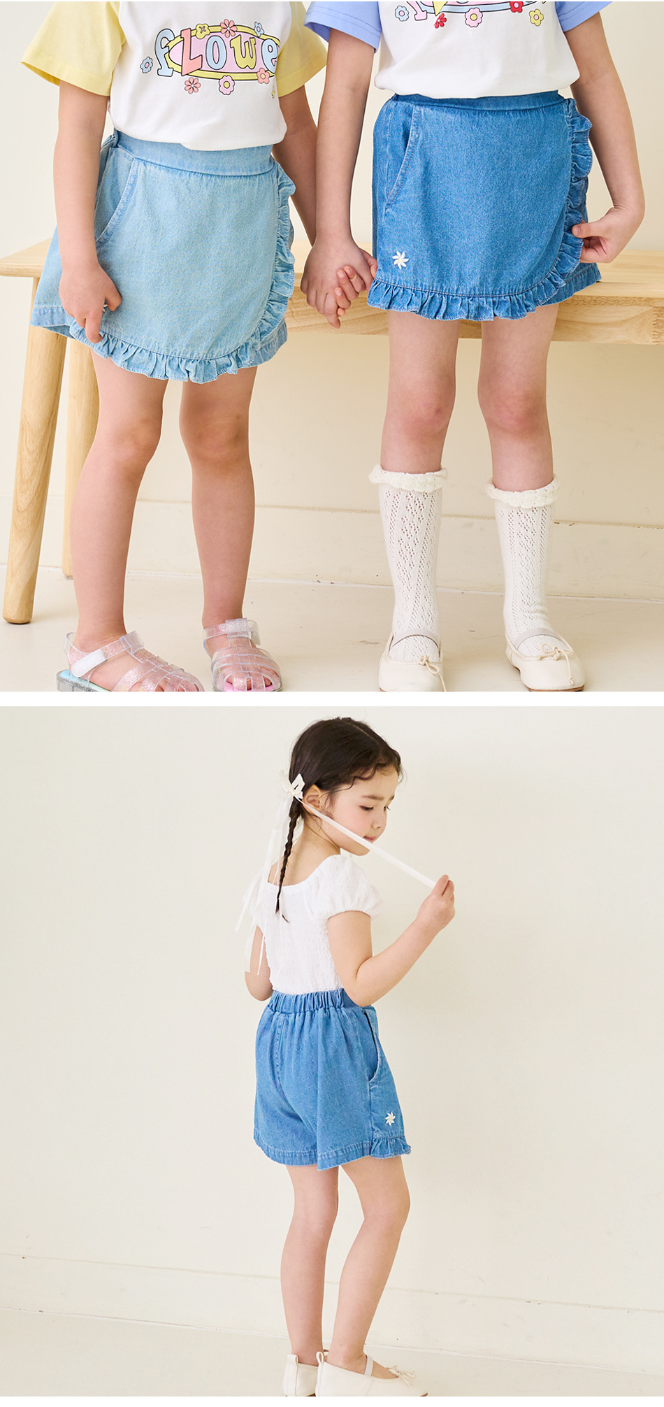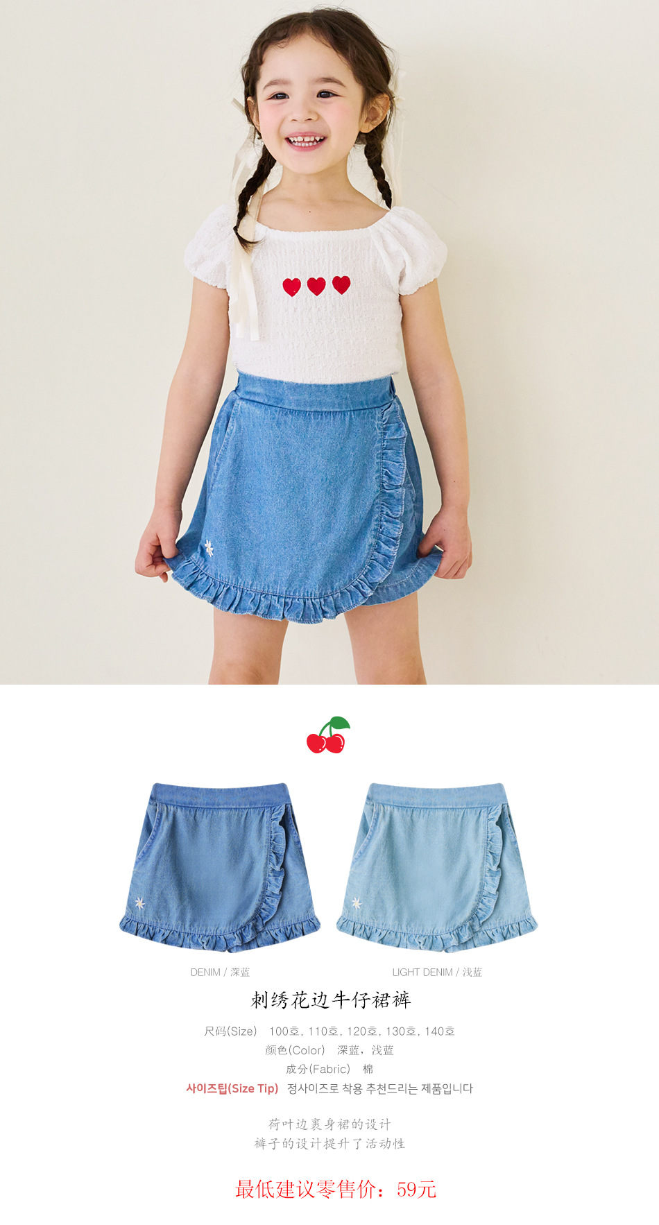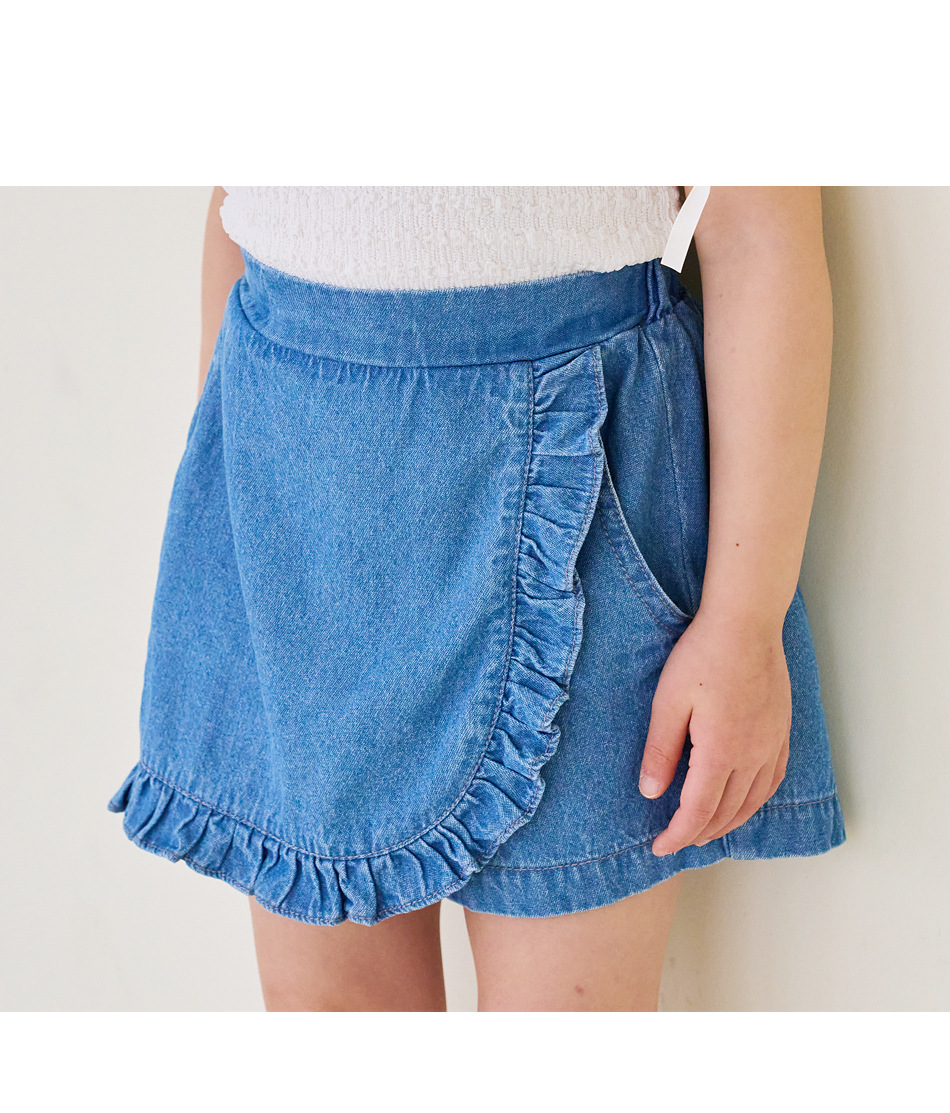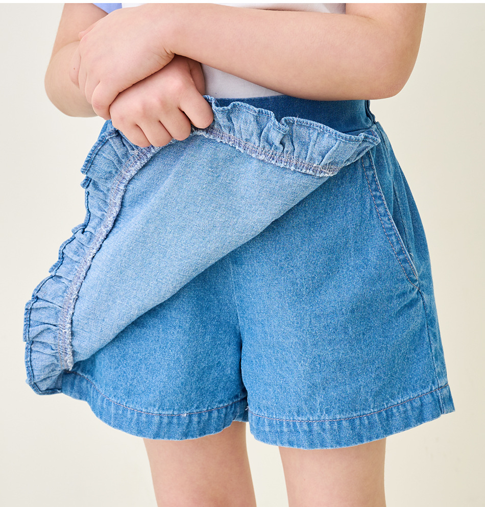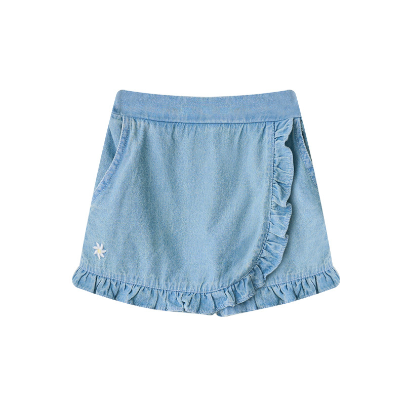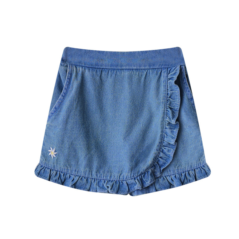 한국 아동복 2024 여름 소녀 반바지 컬롯 귀여운 레이스 자수 가방 스커트 데님 반바지 쿼드 바지스토어 가기