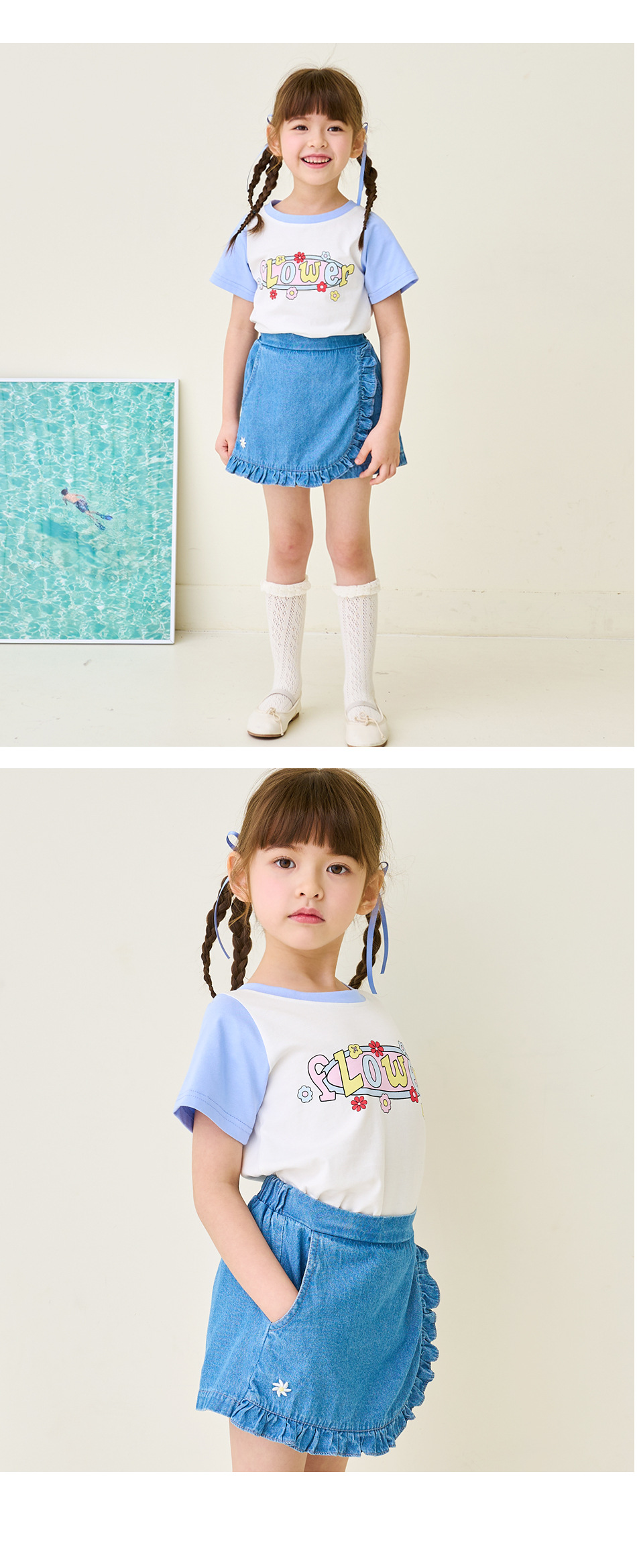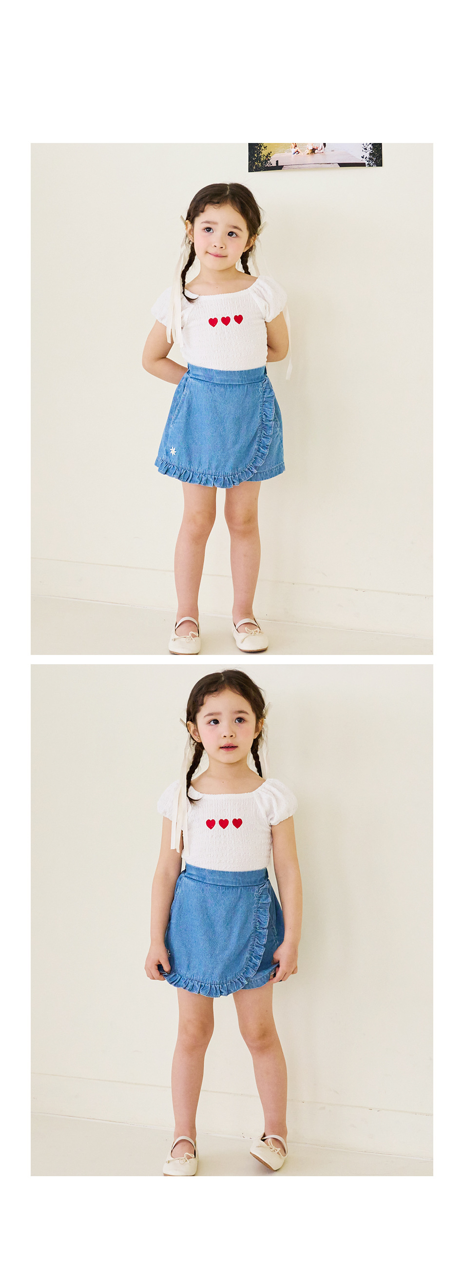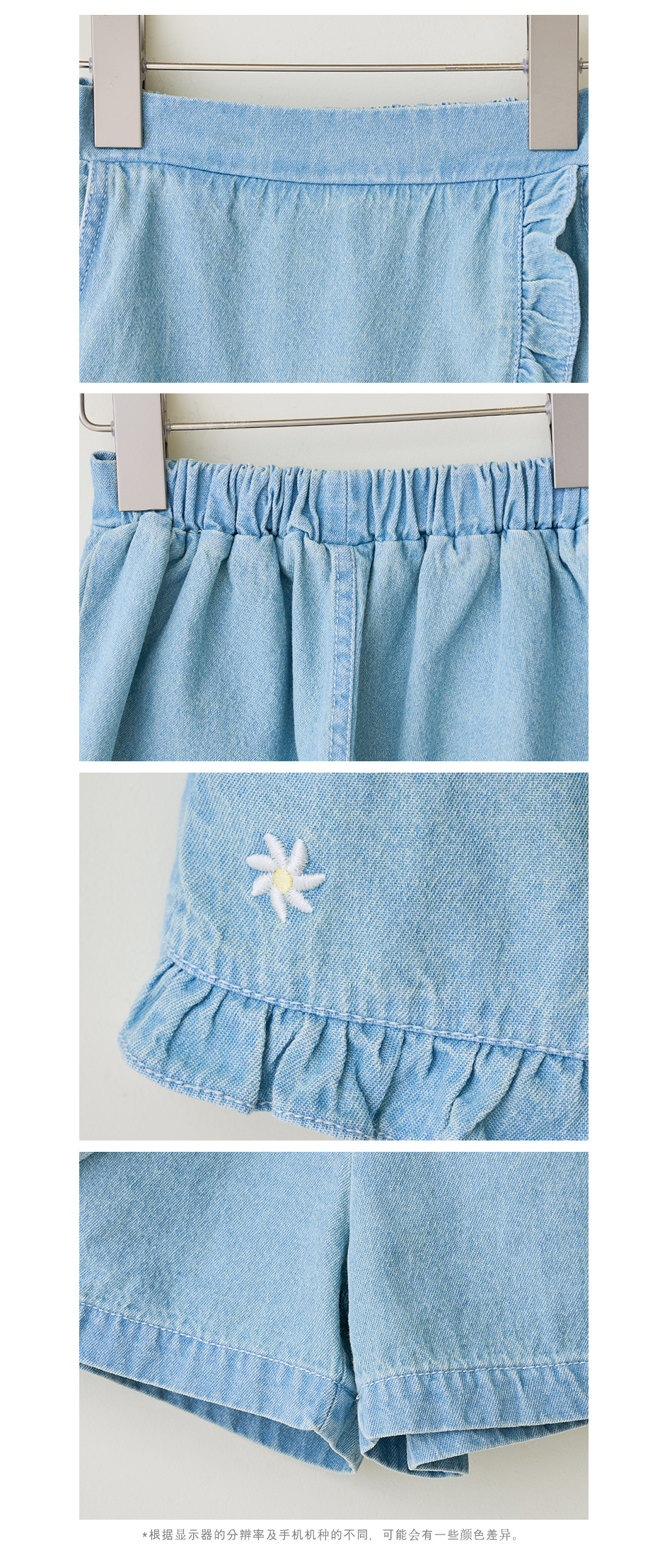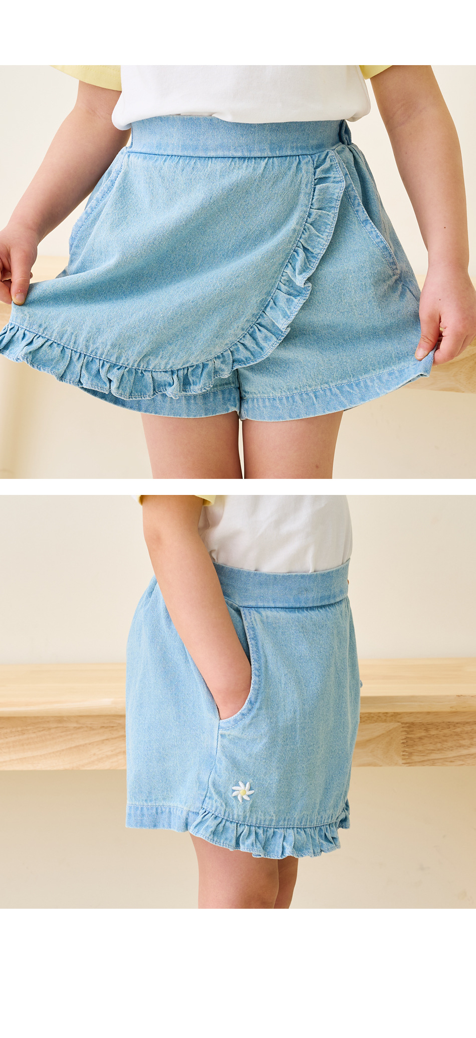 한국 아동복 2024 여름 소녀 반바지 컬롯 귀여운 레이스 자수 가방 스커트 데님 반바지 쿼드 바지스토어 가기