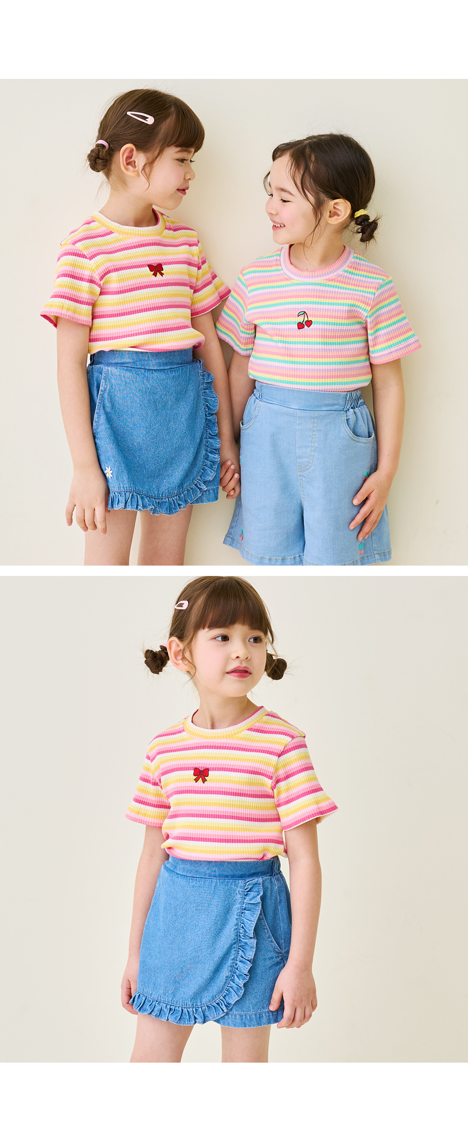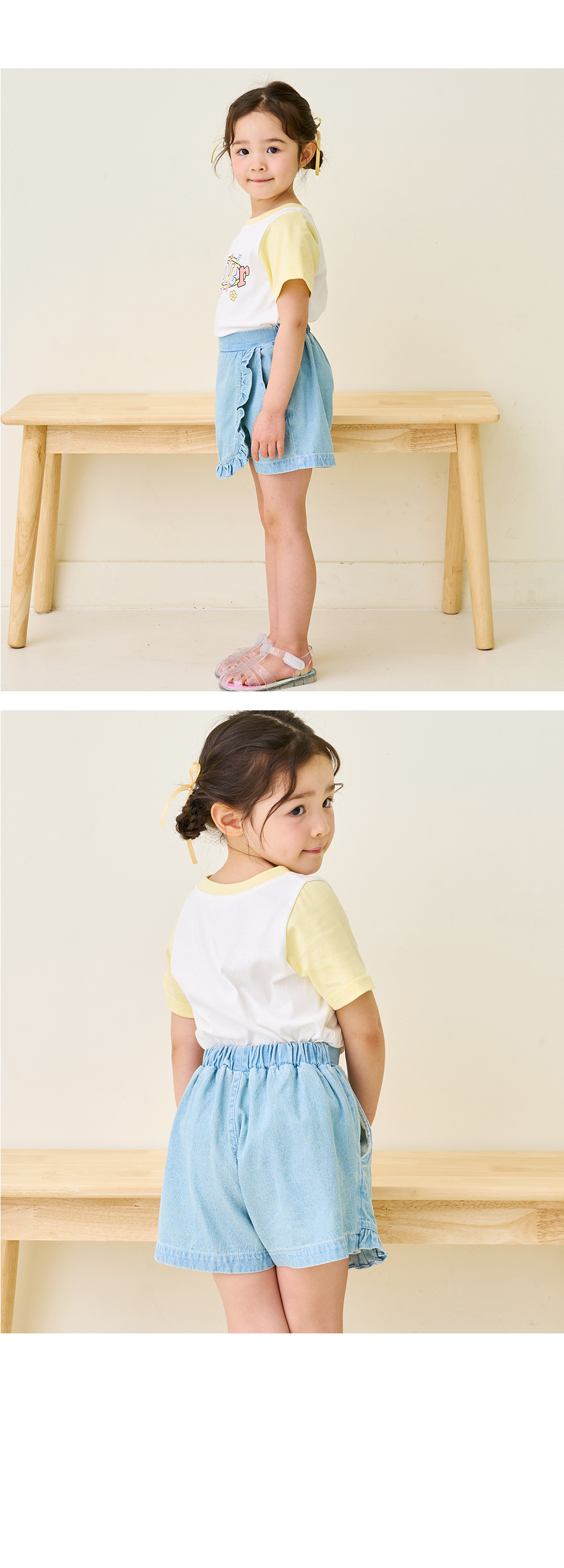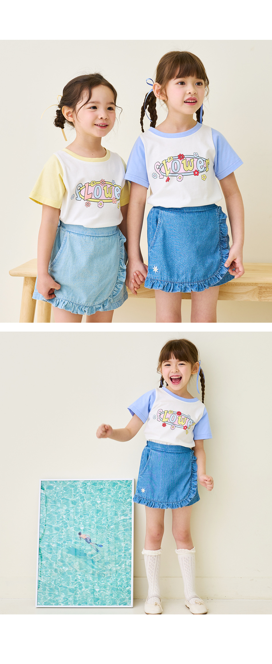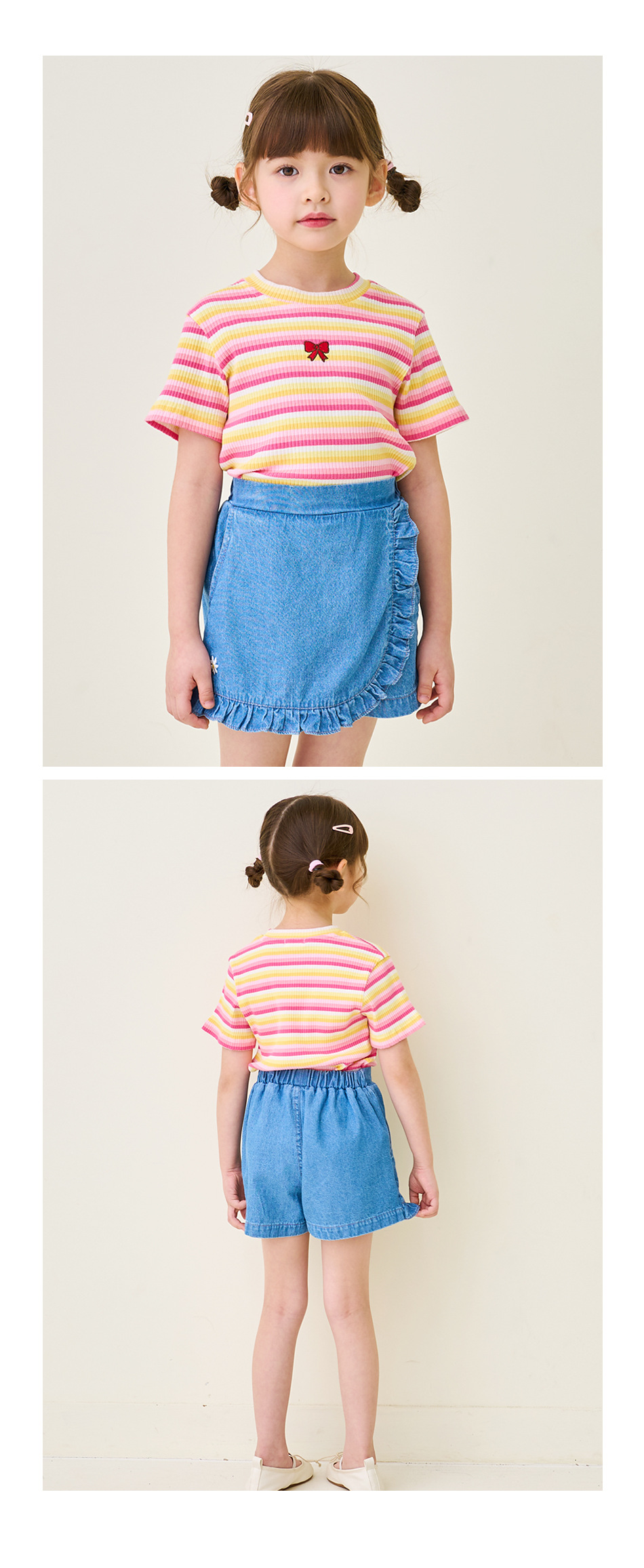 한국 아동복 2024 여름 소녀 반바지 컬롯 귀여운 레이스 자수 가방 스커트 데님 반바지 쿼드 바지스토어 가기