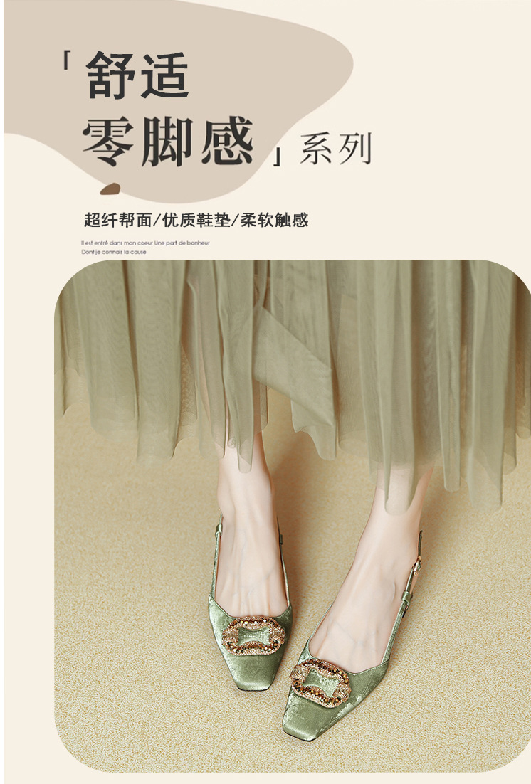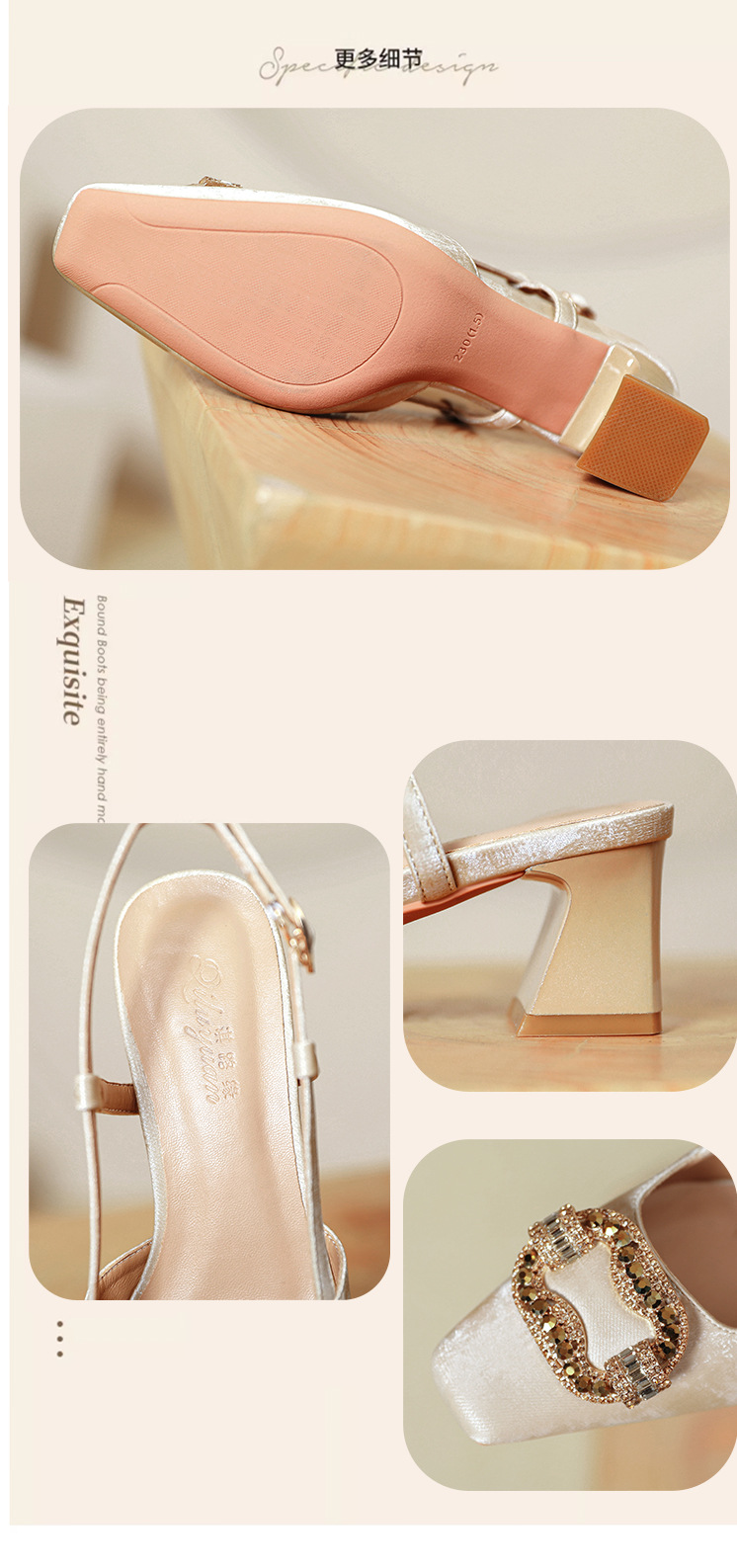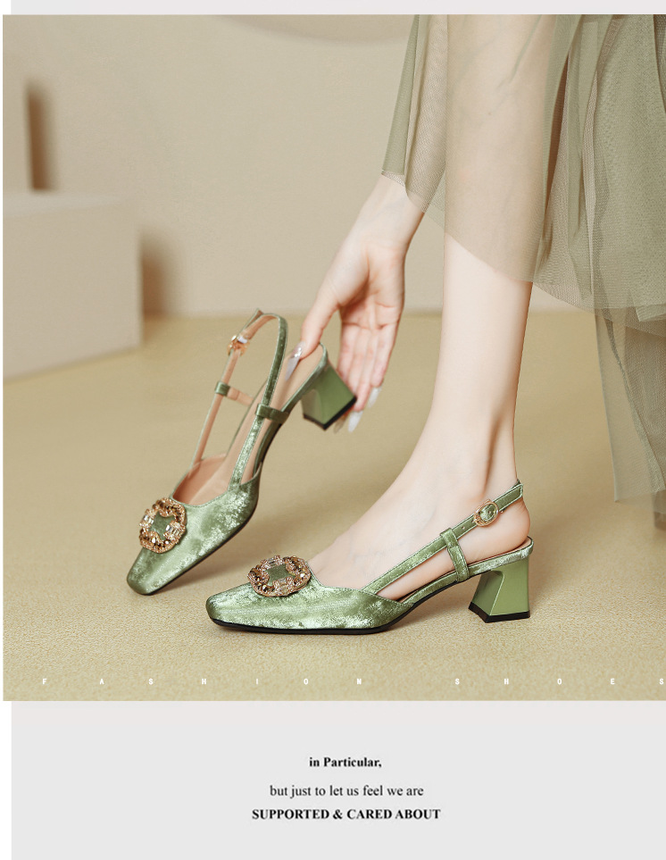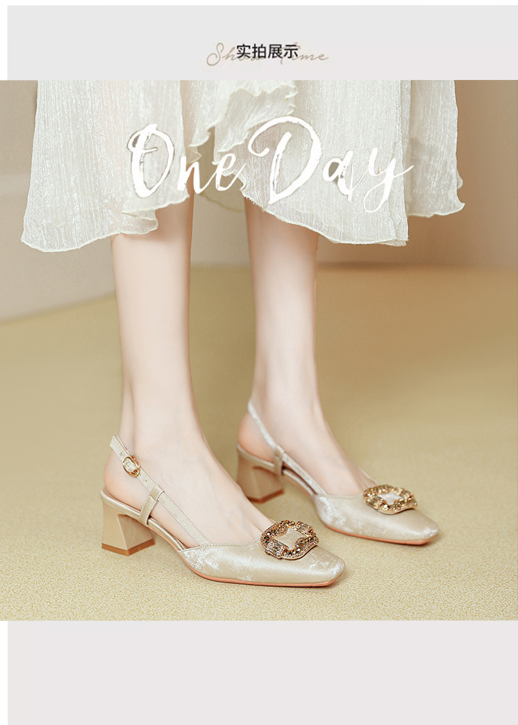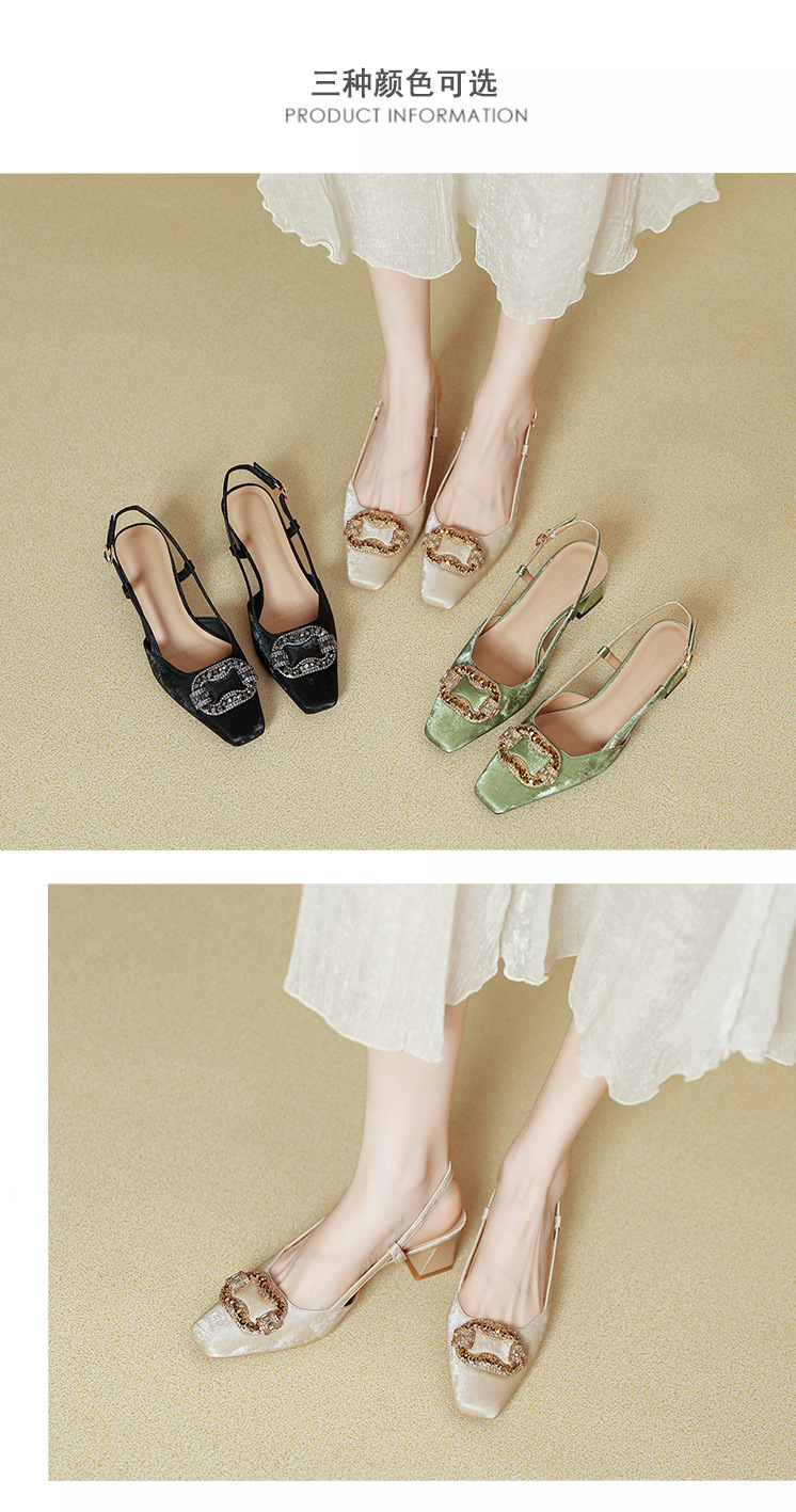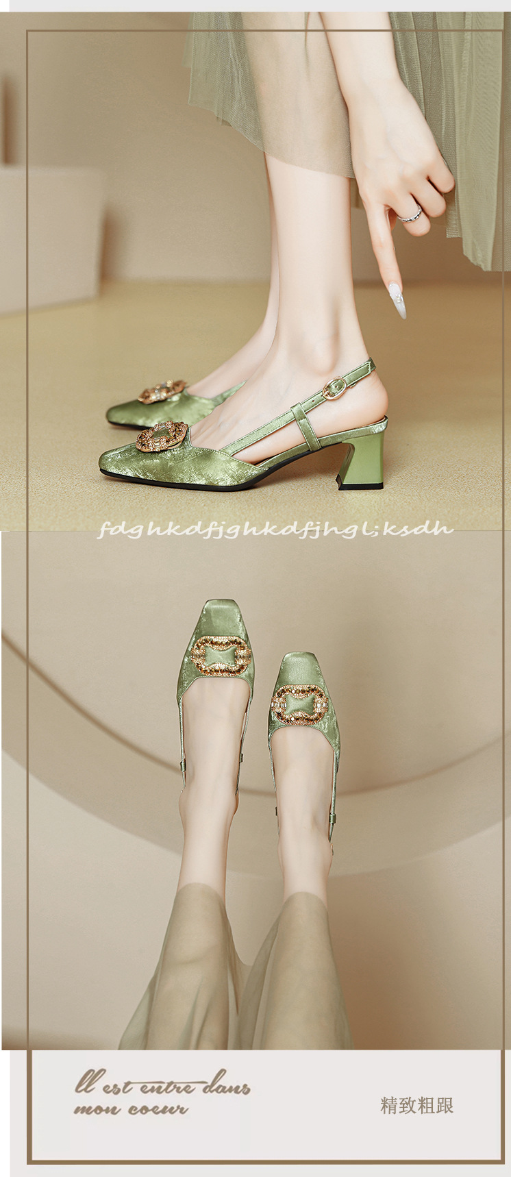프렌치 스타일 여성용 샌들, 두꺼운 굽, 2025년 여름, 요정 스타일, 뒤가 열린 슬립온, 원라인 버클 스트랩, 사각코 하이힐스토어 가기