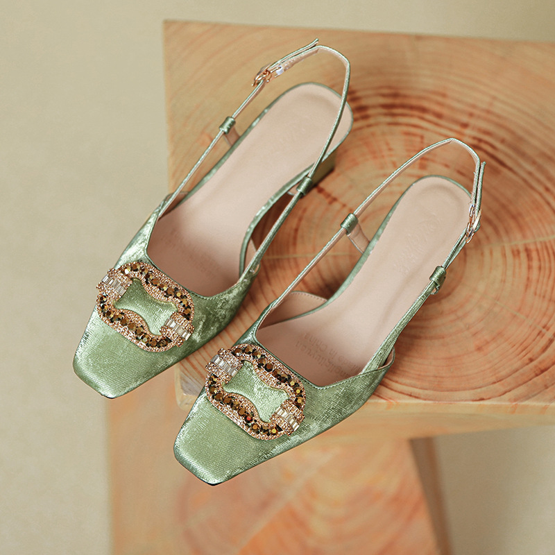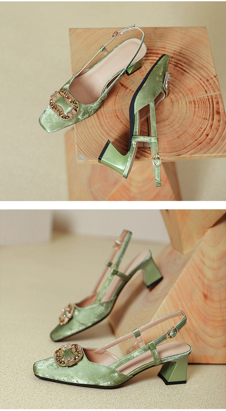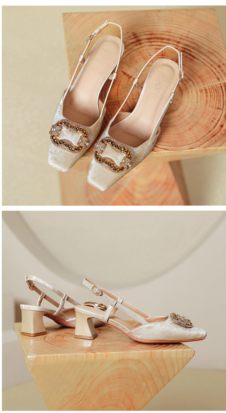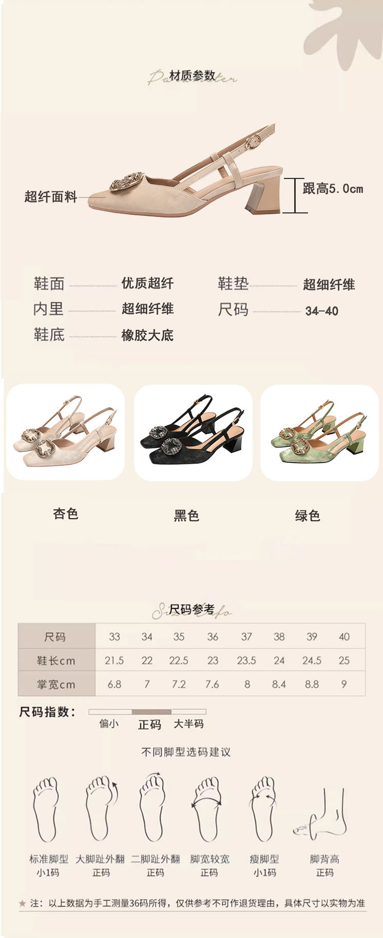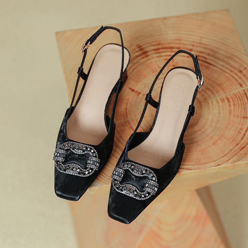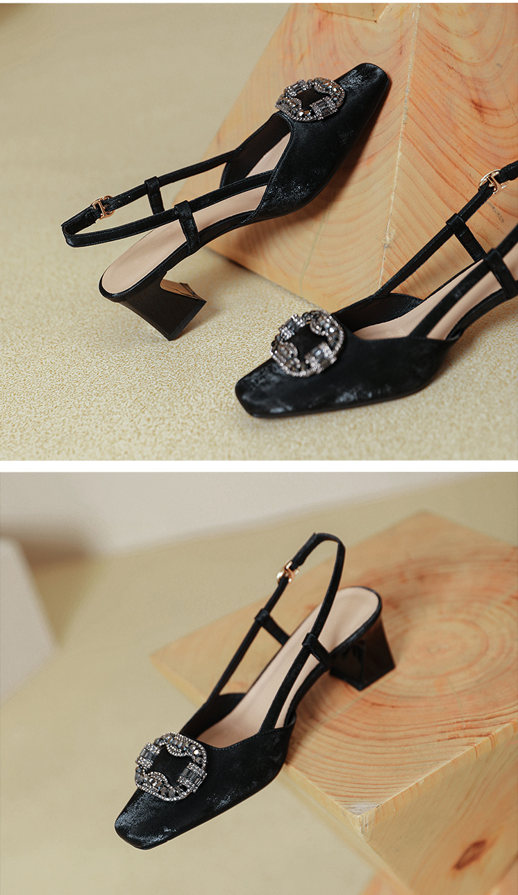 프렌치 스타일 여성용 샌들, 두꺼운 굽, 2025년 여름, 요정 스타일, 뒤가 열린 슬립온, 원라인 버클 스트랩, 사각코 하이힐스토어 가기