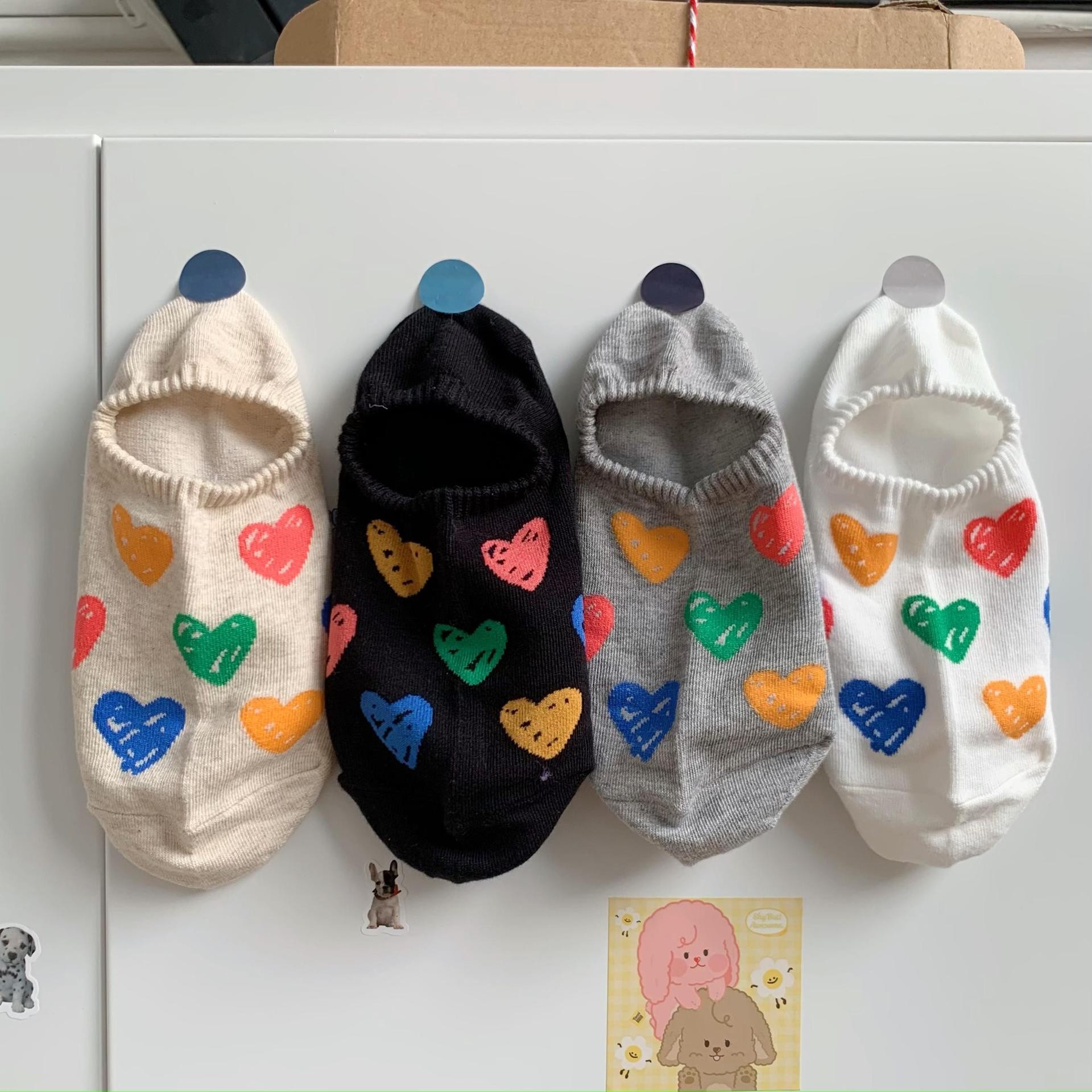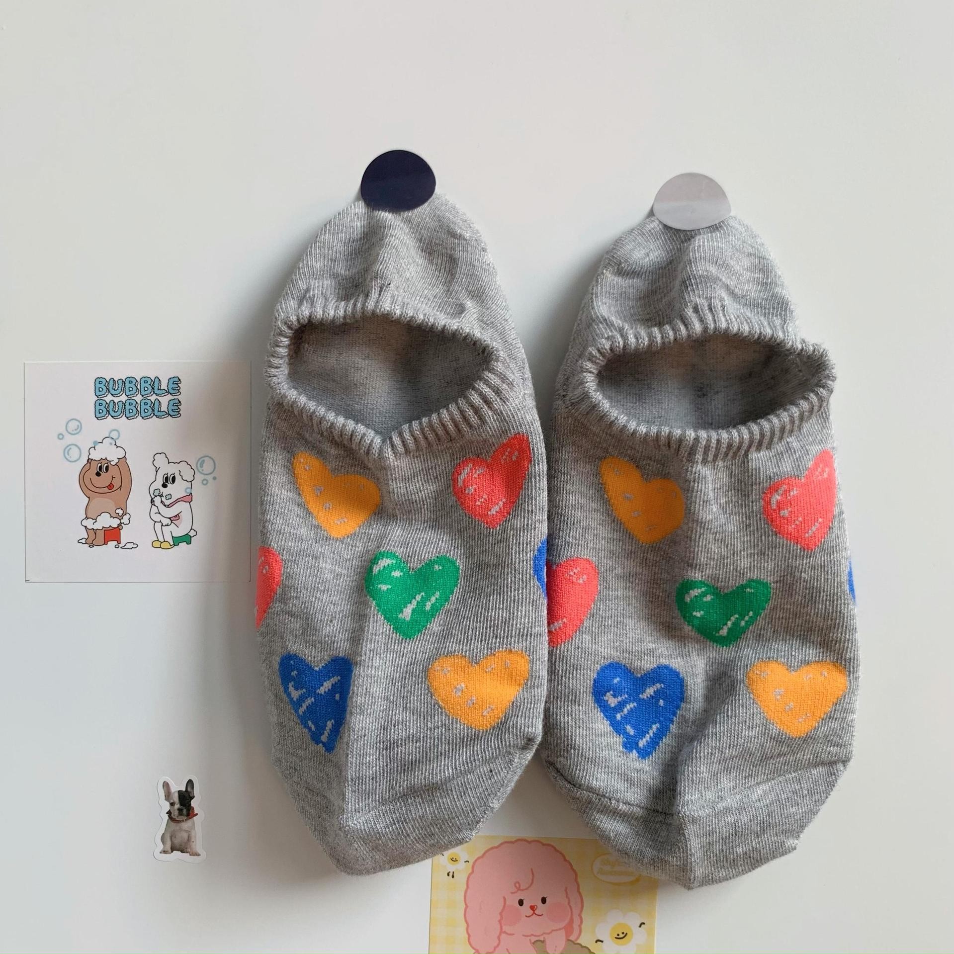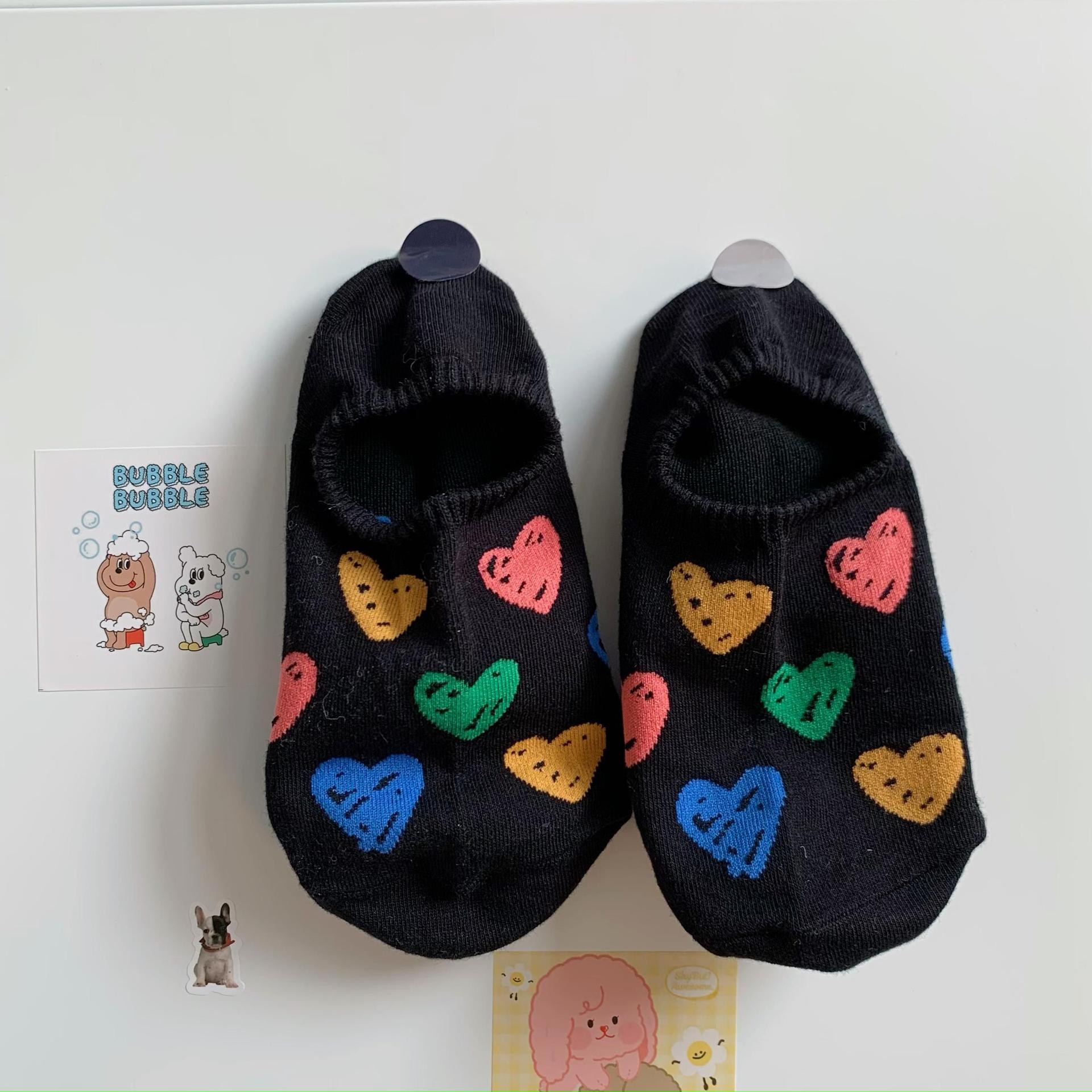 양말 여성 소녀 보이지 않는 보트 양말 여성 여름 얇은 귀여운 색상 낙서 사랑은 양말을 떨어 뜨리지 마십시오