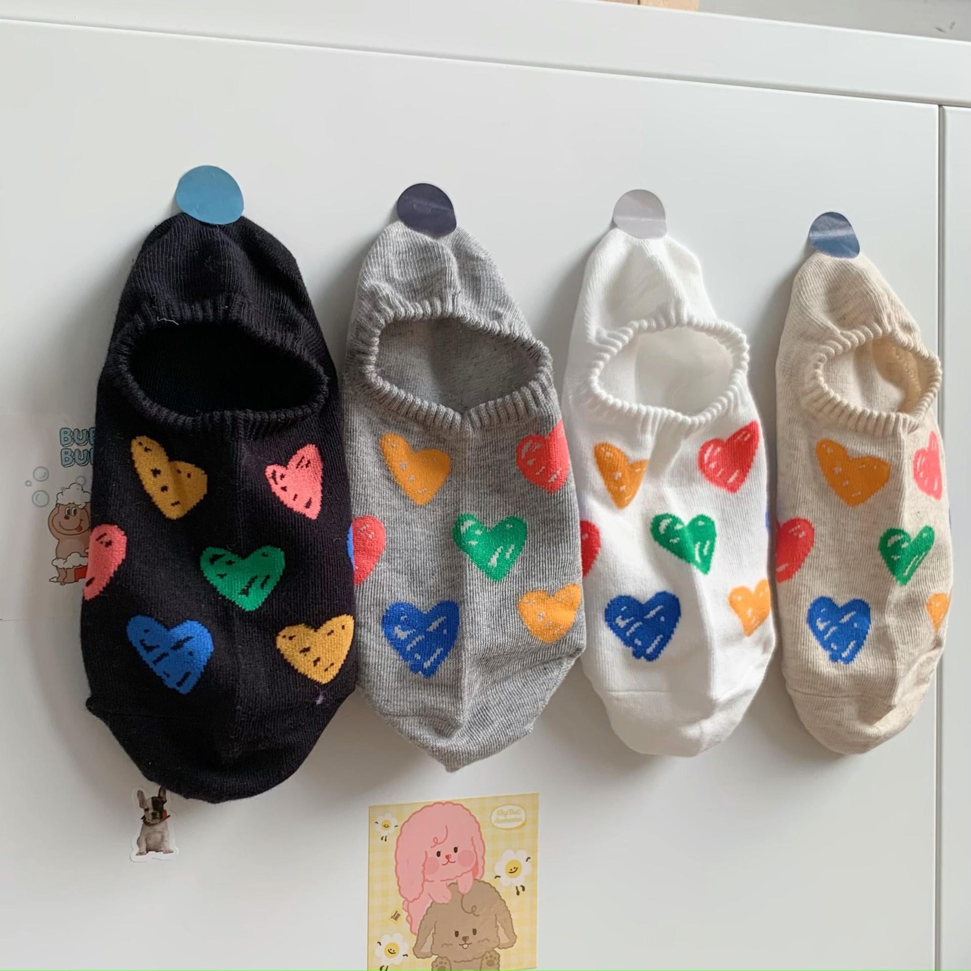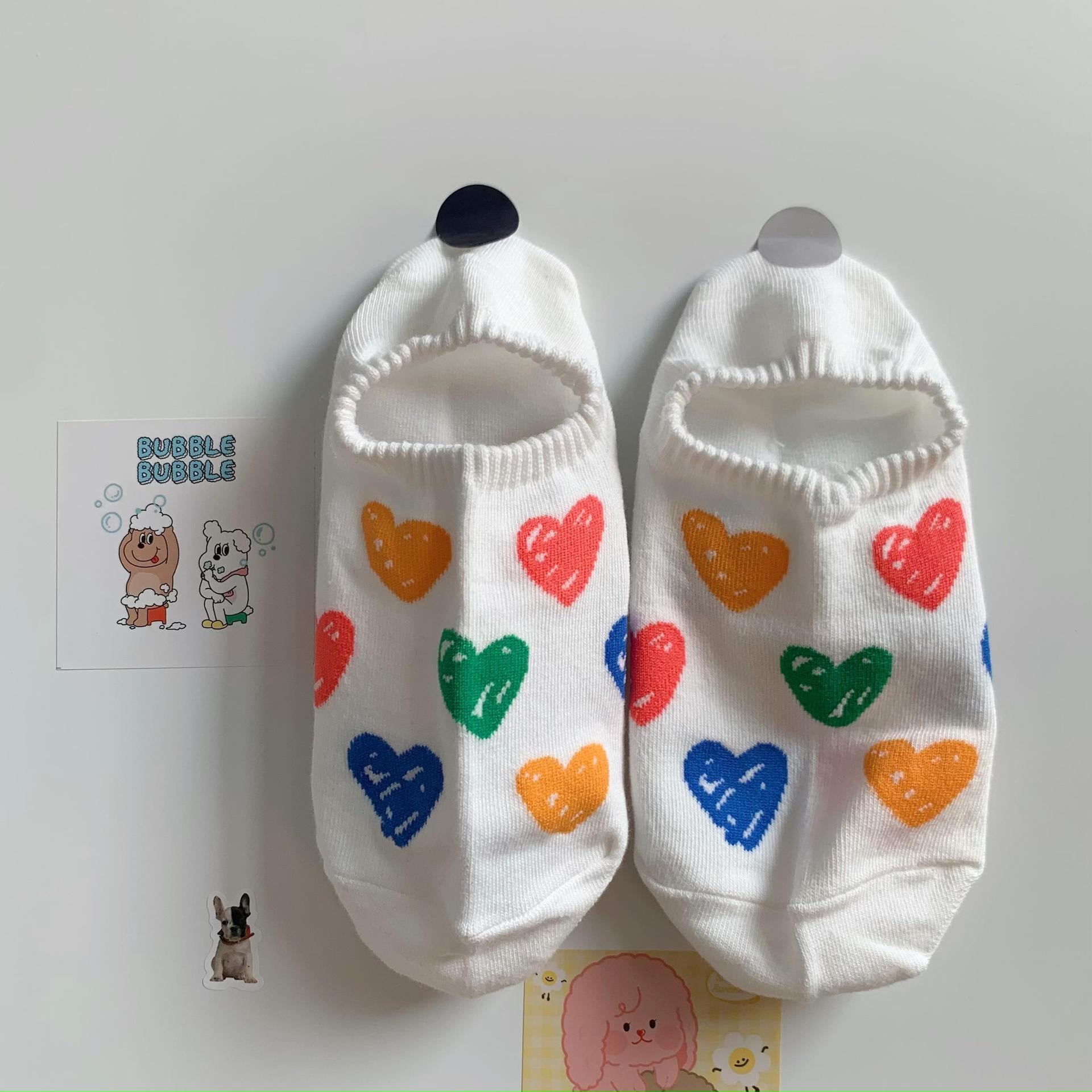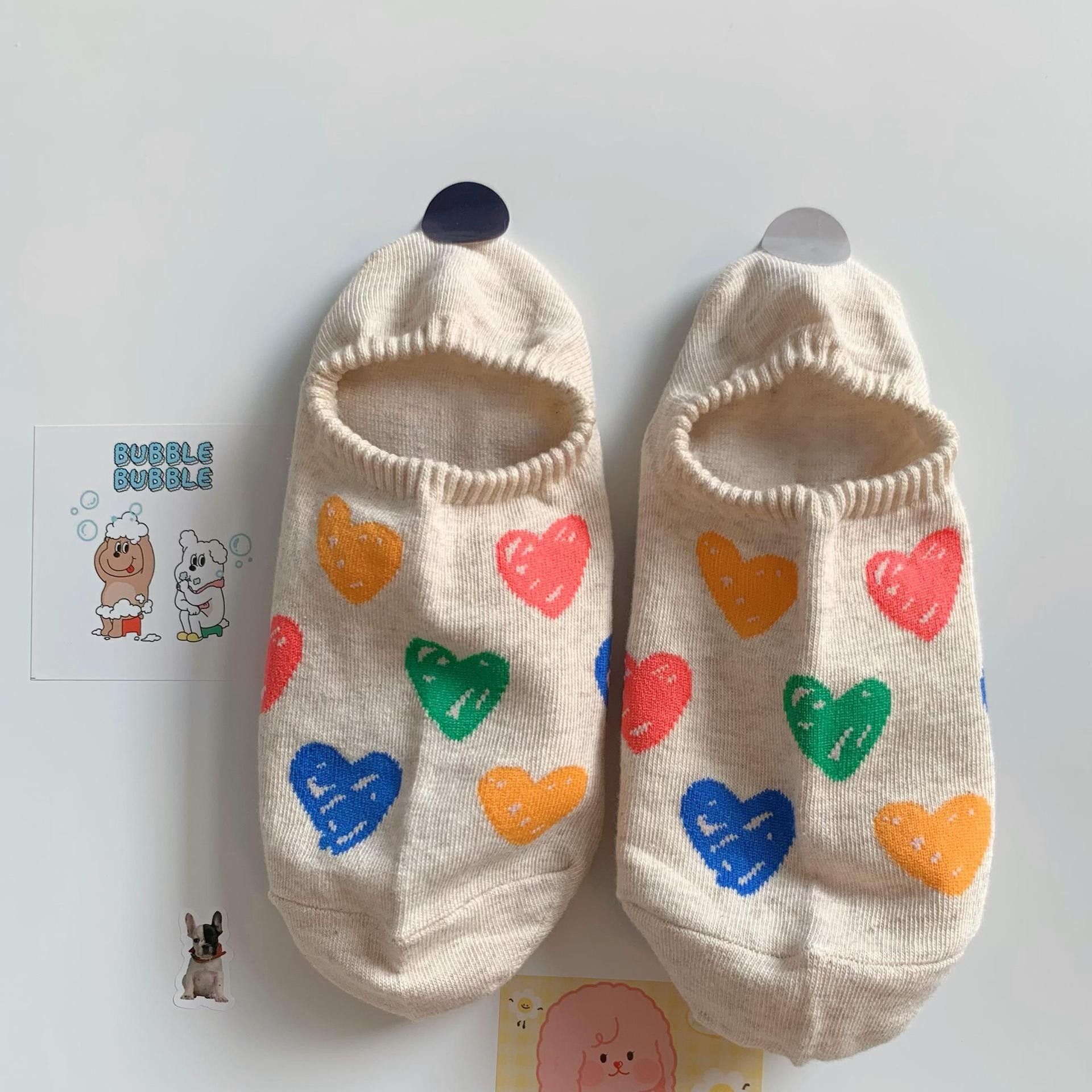 양말 여성 소녀 보이지 않는 보트 양말 여성 여름 얇은 귀여운 색상 낙서 사랑은 양말을 떨어 뜨리지 마십시오