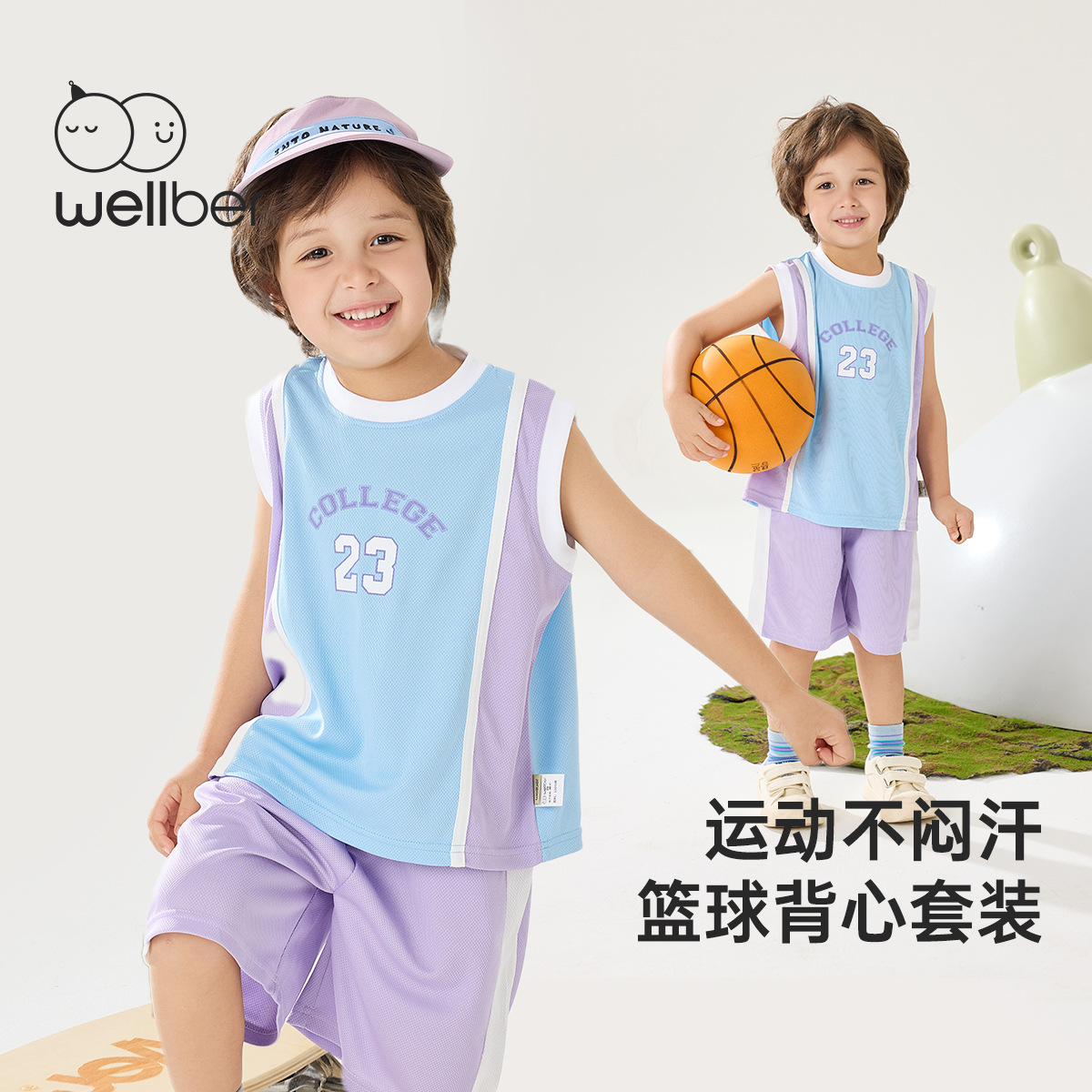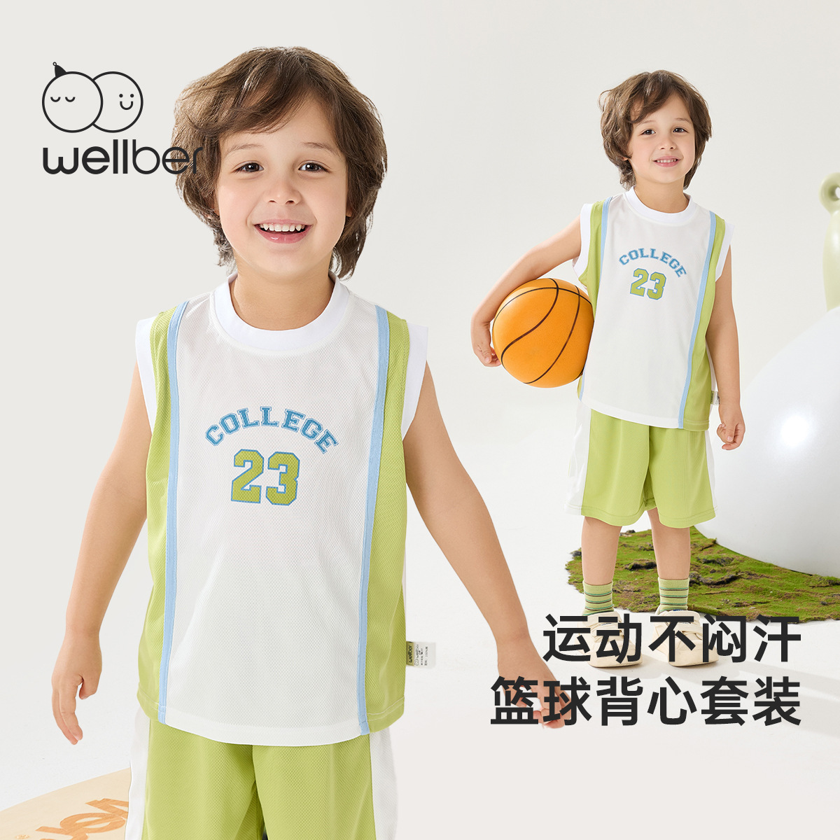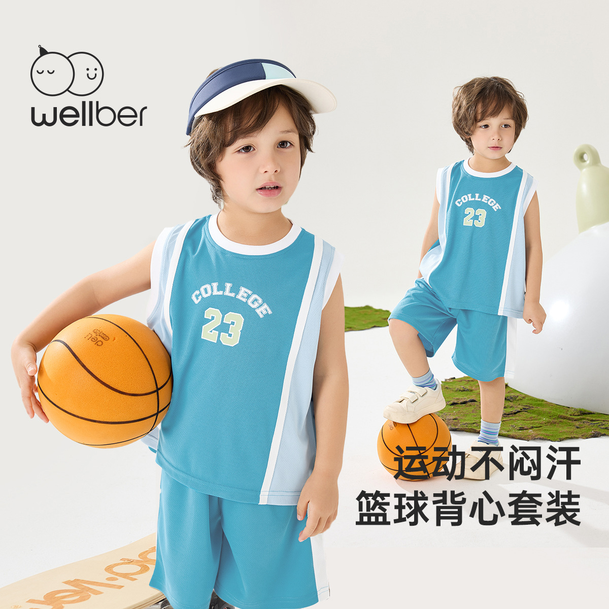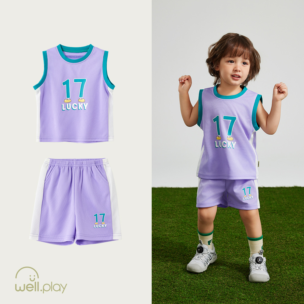윌베루 여름 소년 스포츠 아기 조끼 세트 클래스 A 스포츠 옷 어린이 운동복 캠퍼스스토어 가기