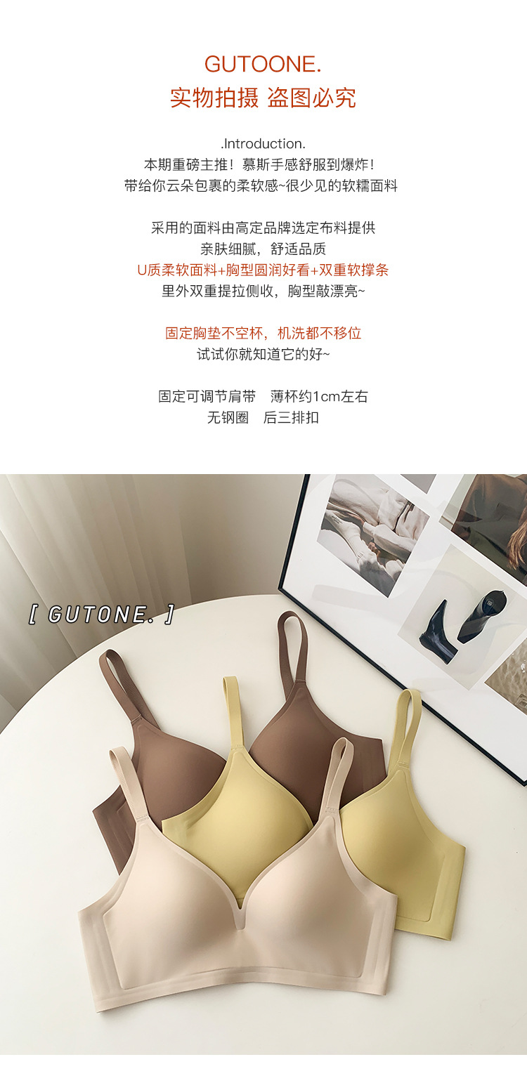 Gutoone 0061 일본 추적없는 속옷 여성의 작은 가슴 개더 얇은 알몸 느낌 비 강철 반지 소프트 지원 브래지어