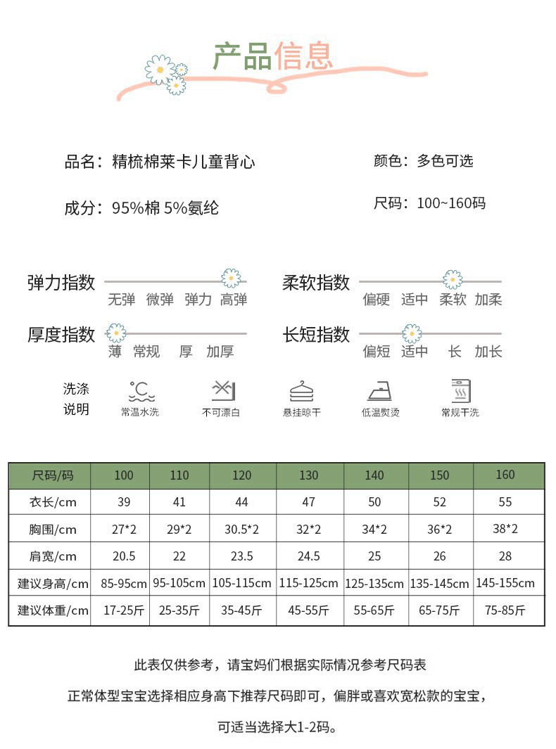 소녀 조끼 순면 봄과 여름 어린이 내복베이스 셔츠 슬링 탑 얇은 소년의 아기 민소매 잠옷