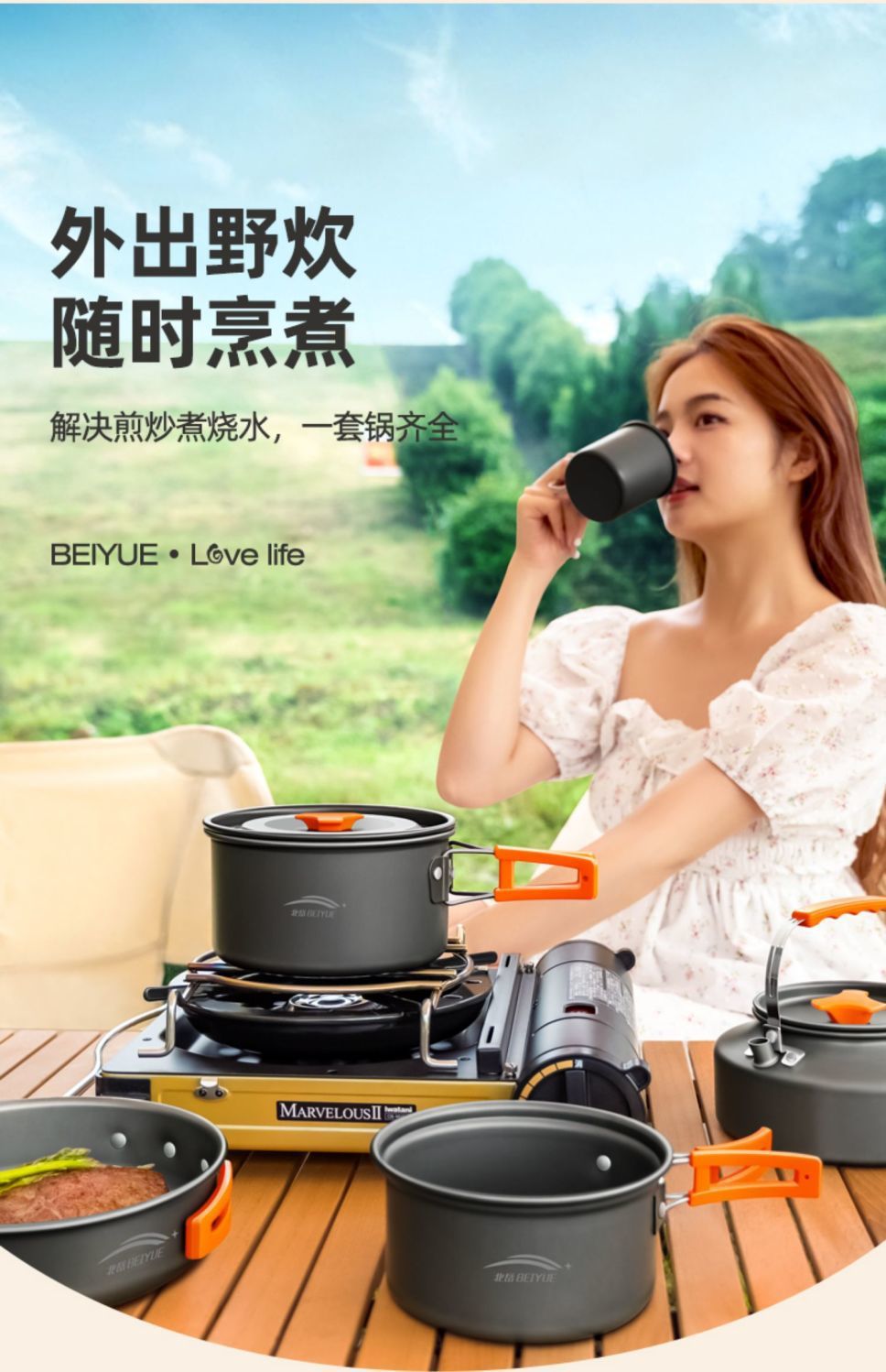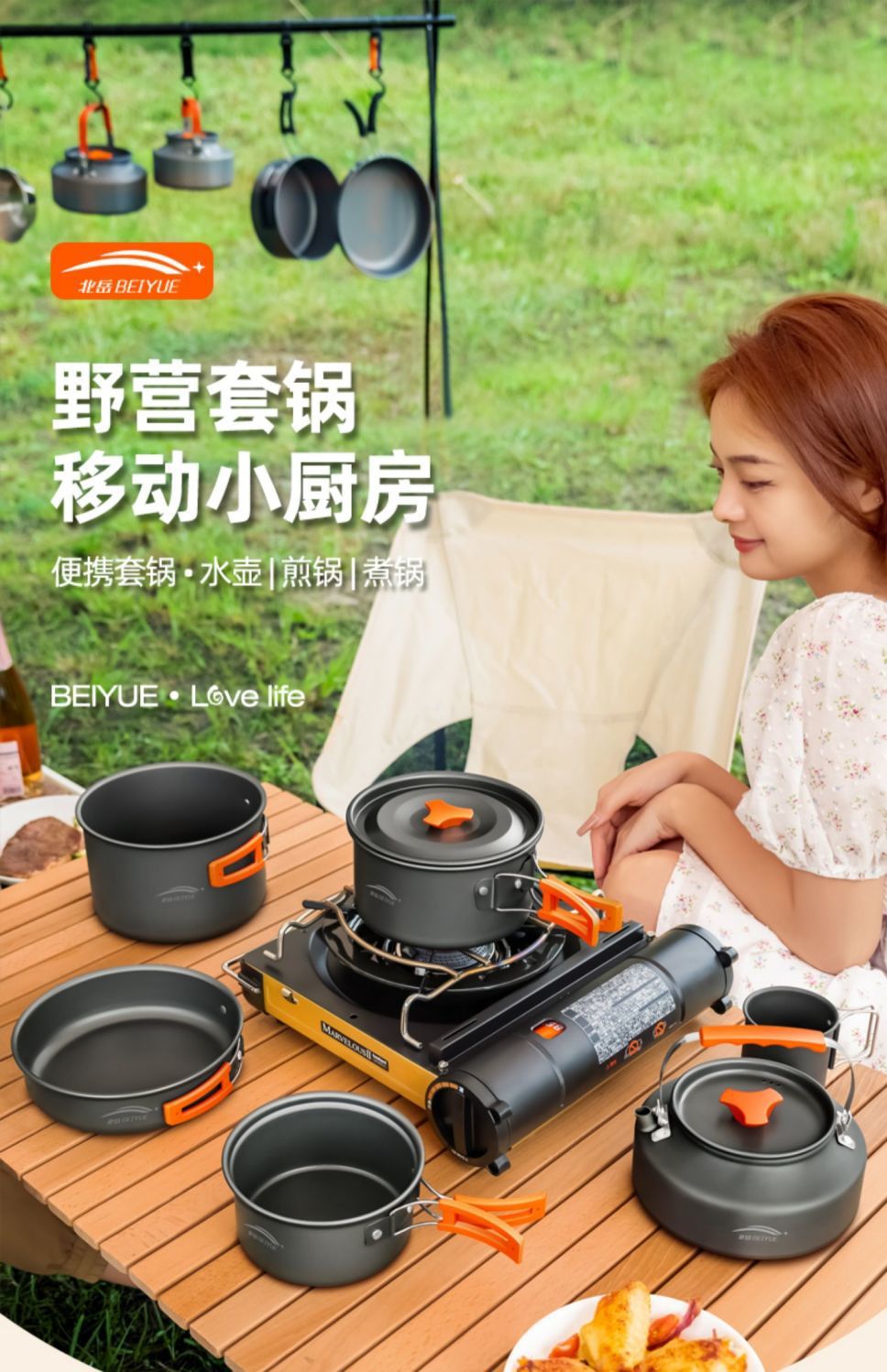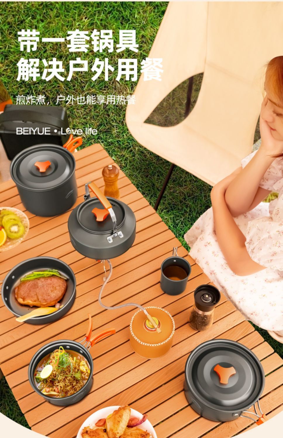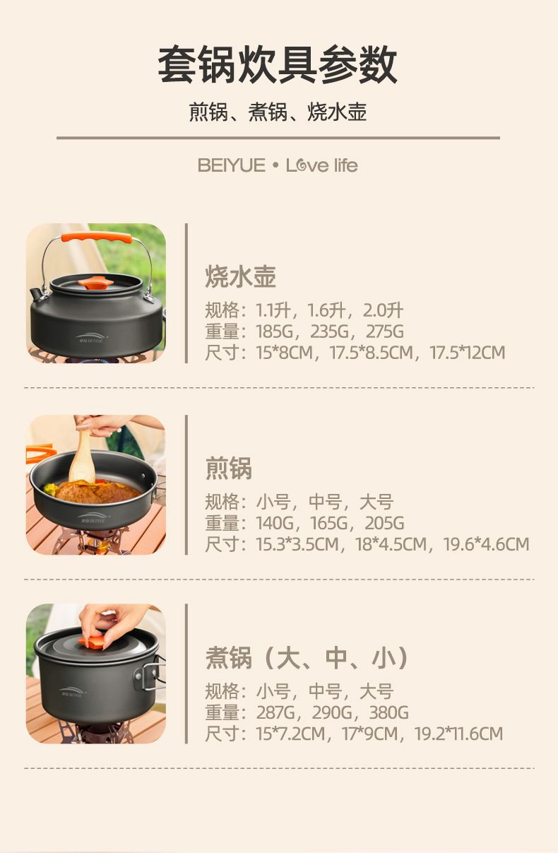 야외 하이킹 조리기구, 캠핑 조리기구, 물 주전자, 프라이팬 장비, 휴대용 캠핑 냄비 및 용품 조합 세트스토어 가기
