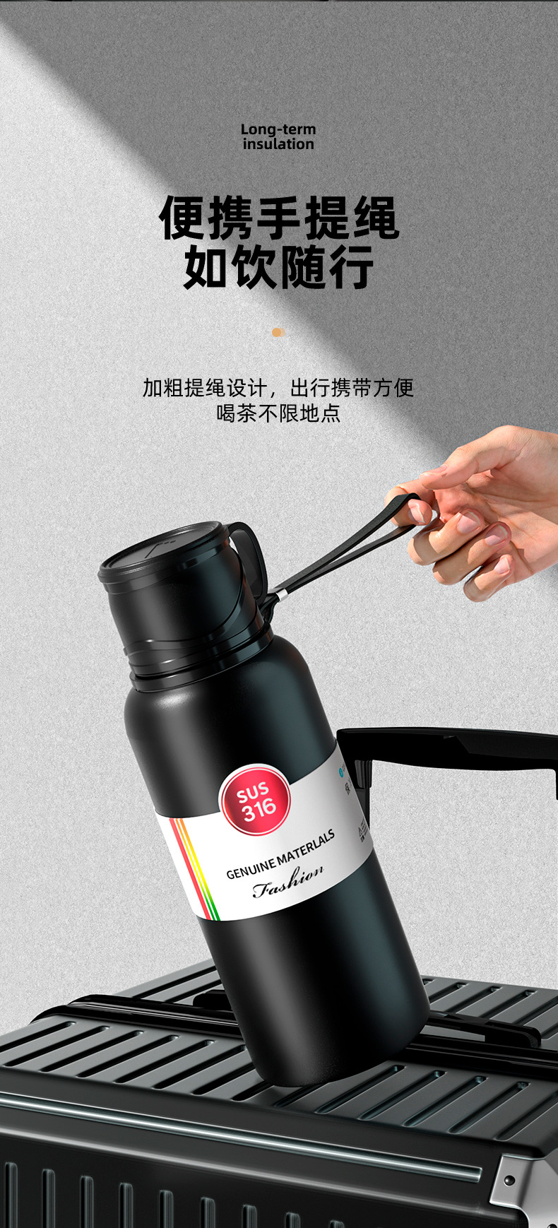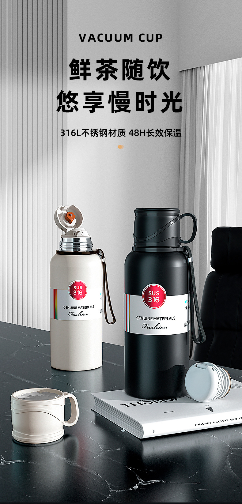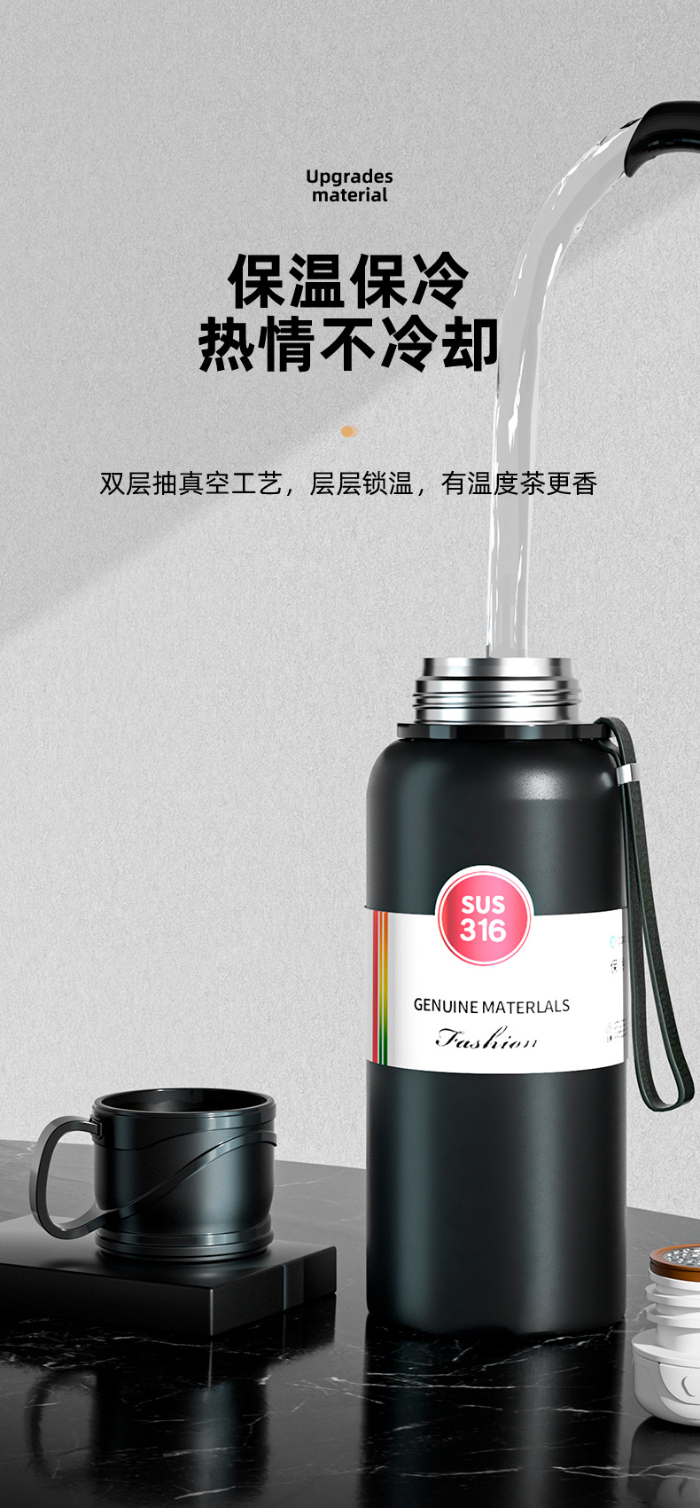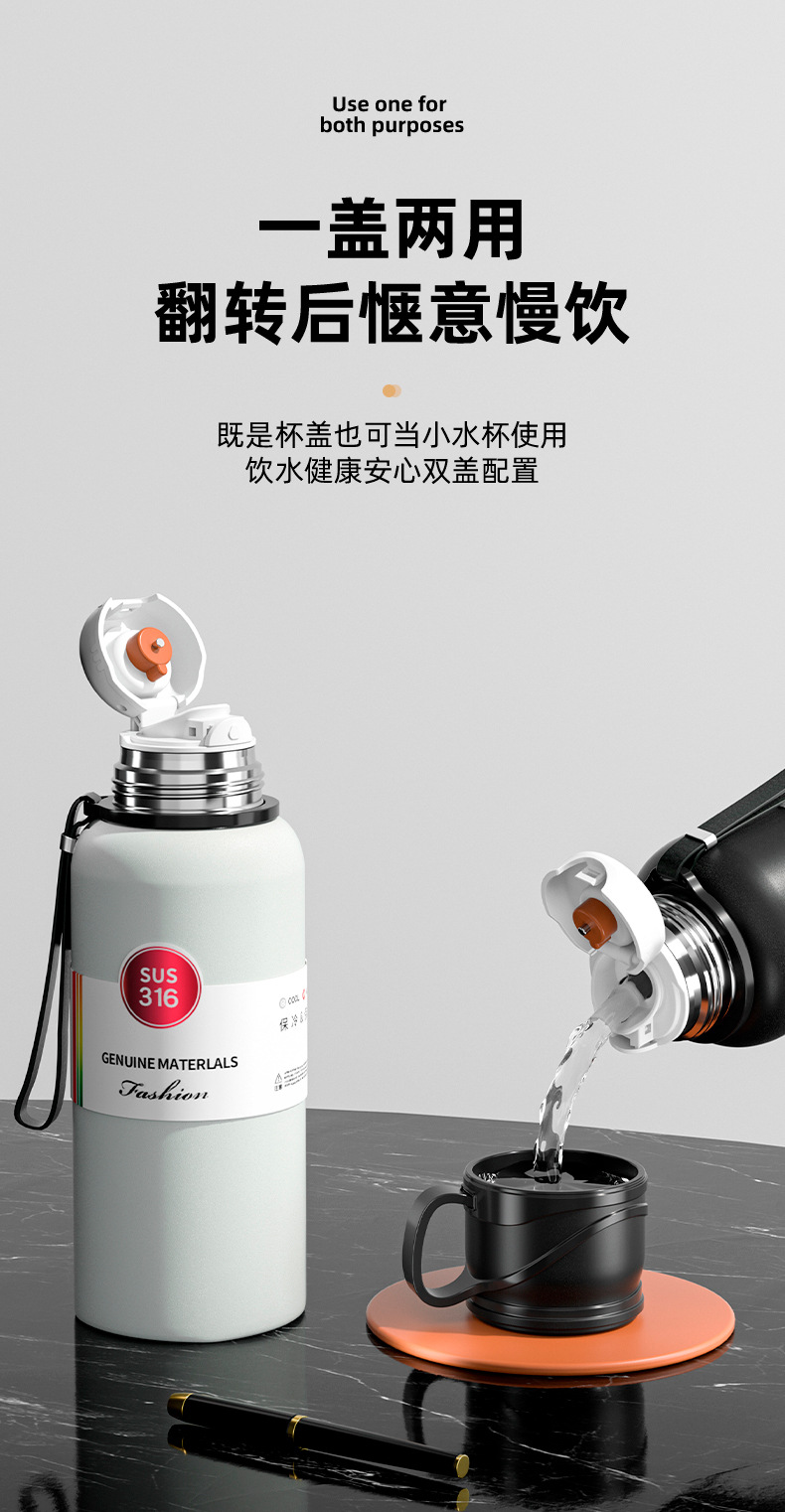 국경을 넘는 304 스테인리스 스틸 휴대용 이중 뚜껑 보온병 가정용 사무실 비즈니스 차컵 여행용 주전자 도매