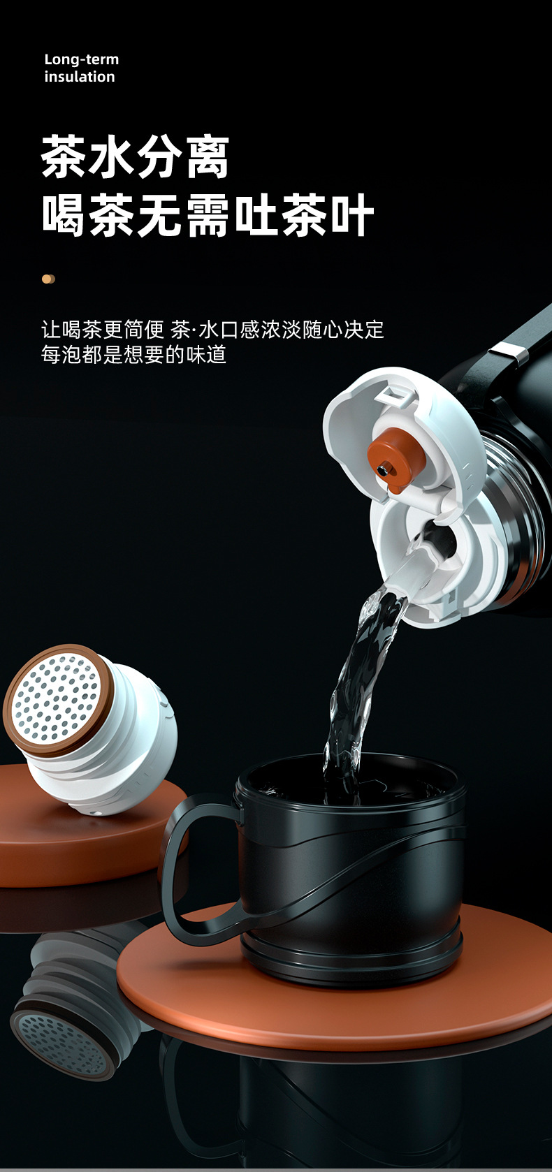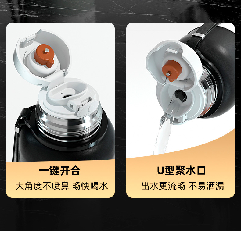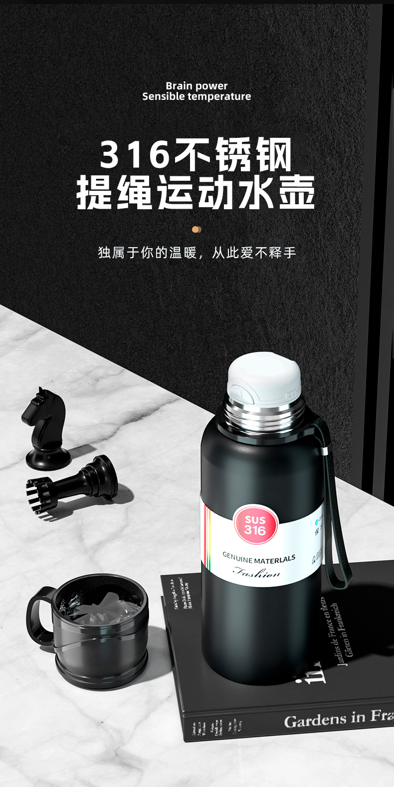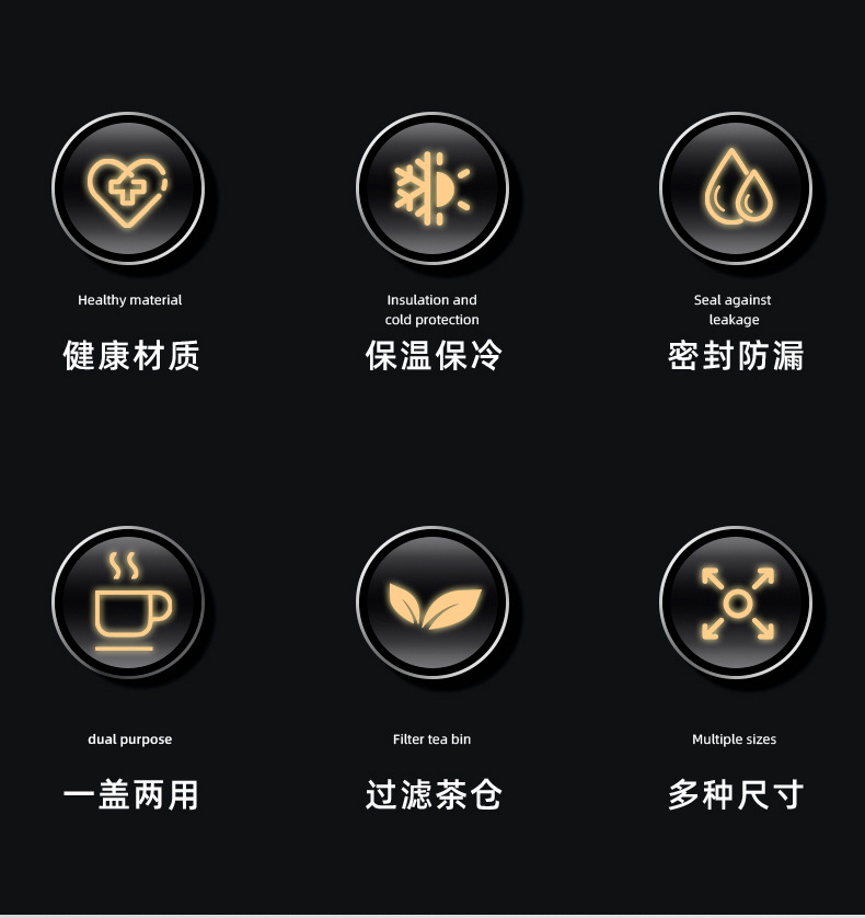 국경을 넘는 304 스테인리스 스틸 휴대용 이중 뚜껑 보온병 가정용 사무실 비즈니스 차컵 여행용 주전자 도매