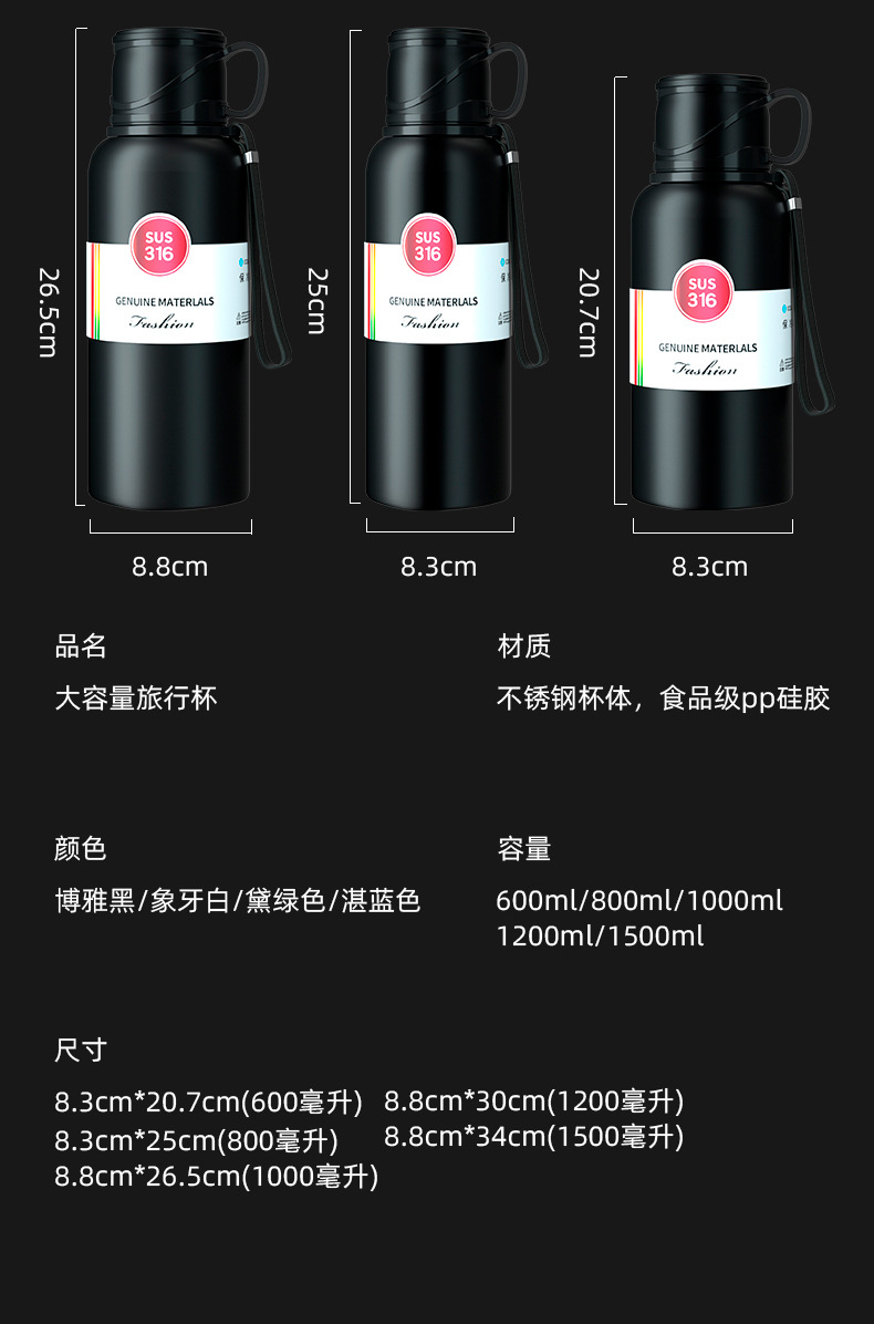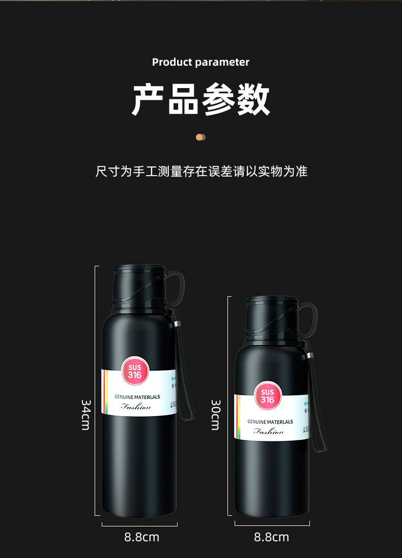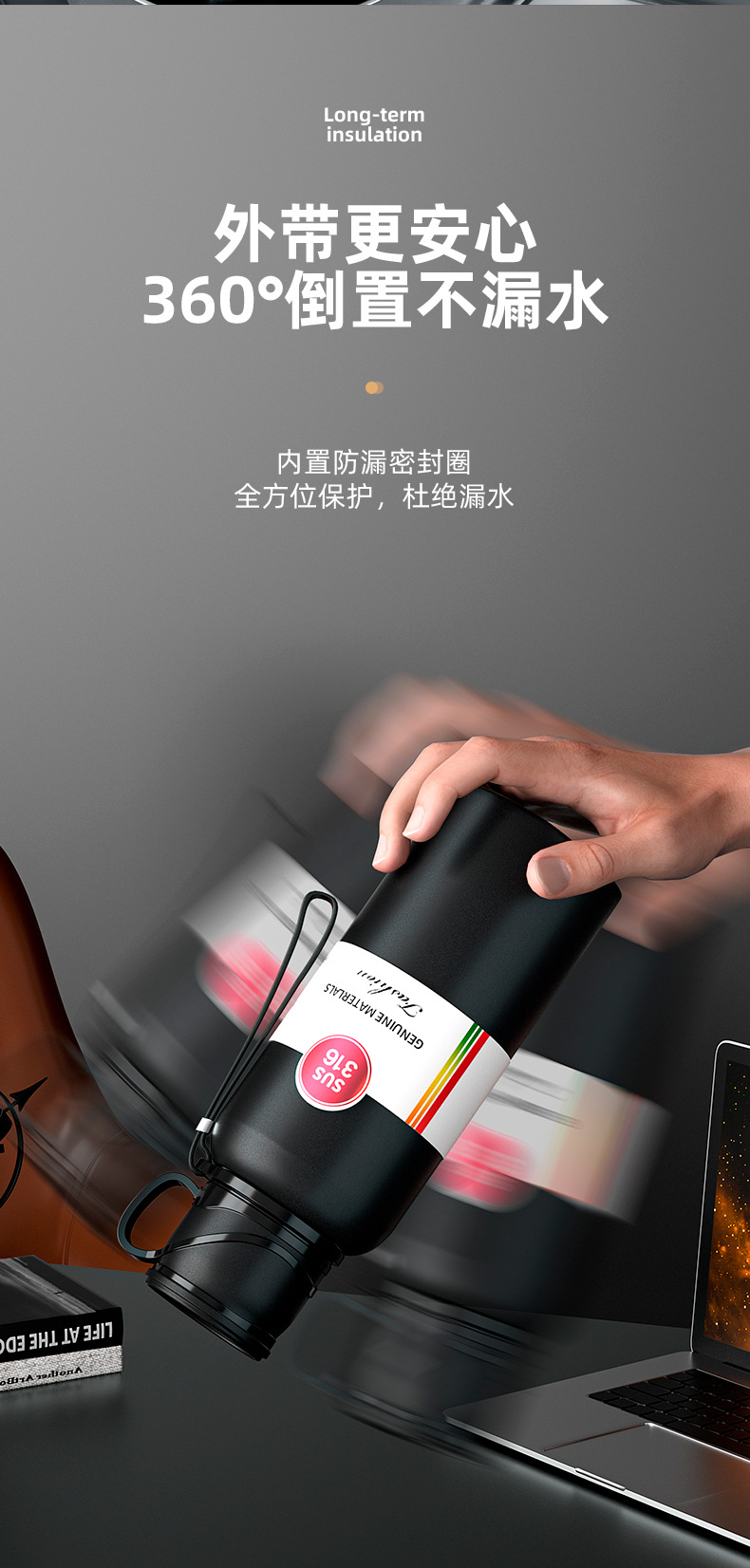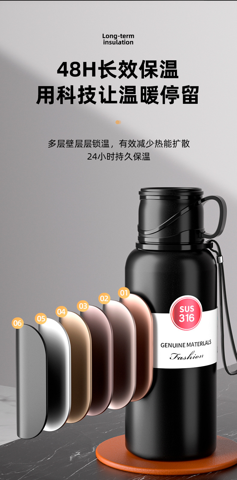 국경을 넘는 304 스테인리스 스틸 휴대용 이중 뚜껑 보온병 가정용 사무실 비즈니스 차컵 여행용 주전자 도매