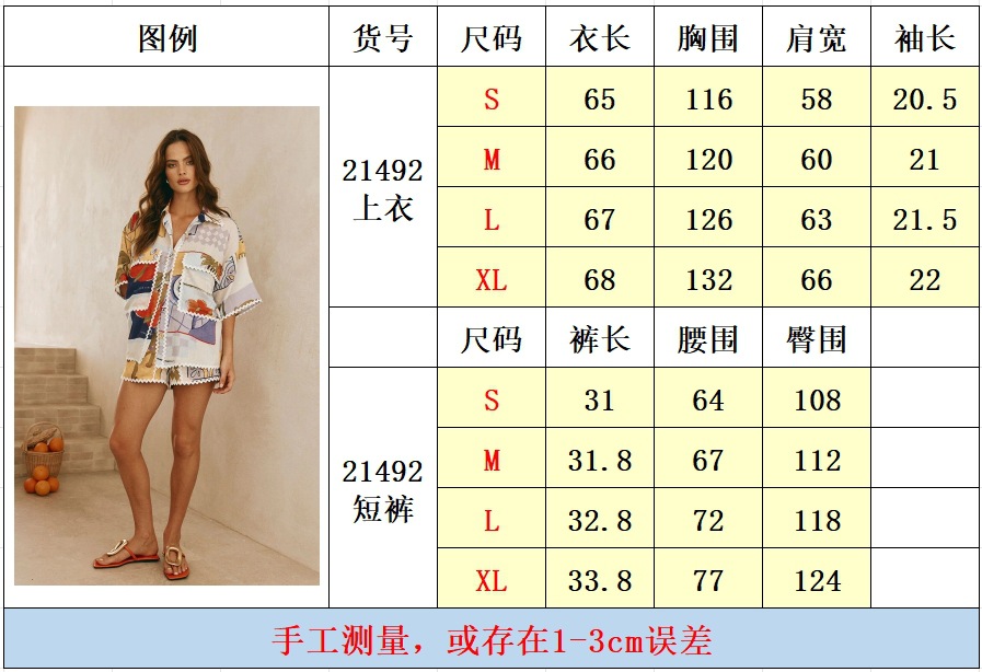 여름 유럽과 미국 여성의 AliExpress 새로운 도착 기질 패션 프린트 셔츠 탑 느슨한 캐주얼 반바지 세트