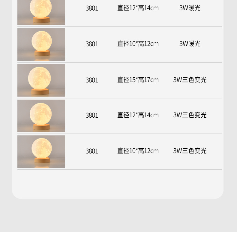 • 15cm 달 [충전 버튼 디밍] 3 색 디밍 3W