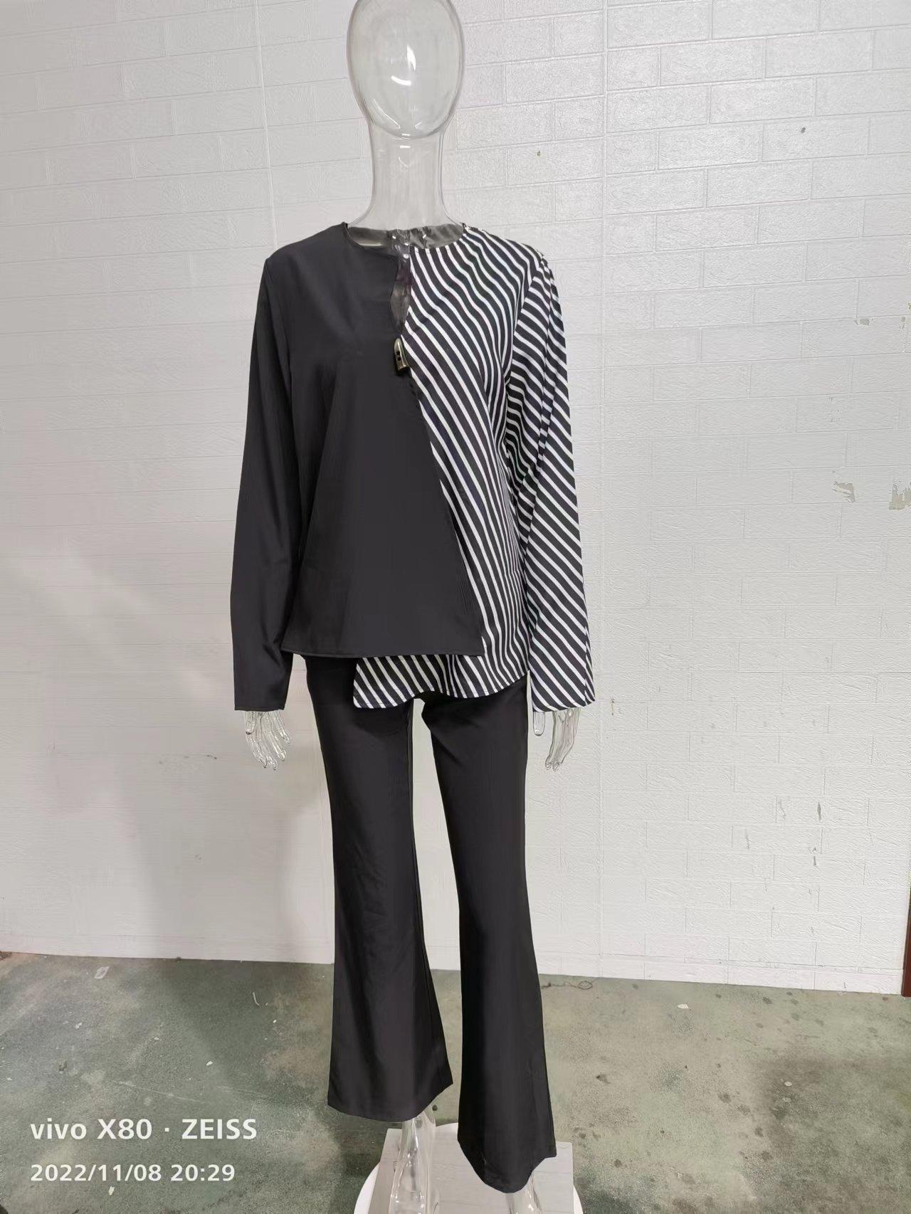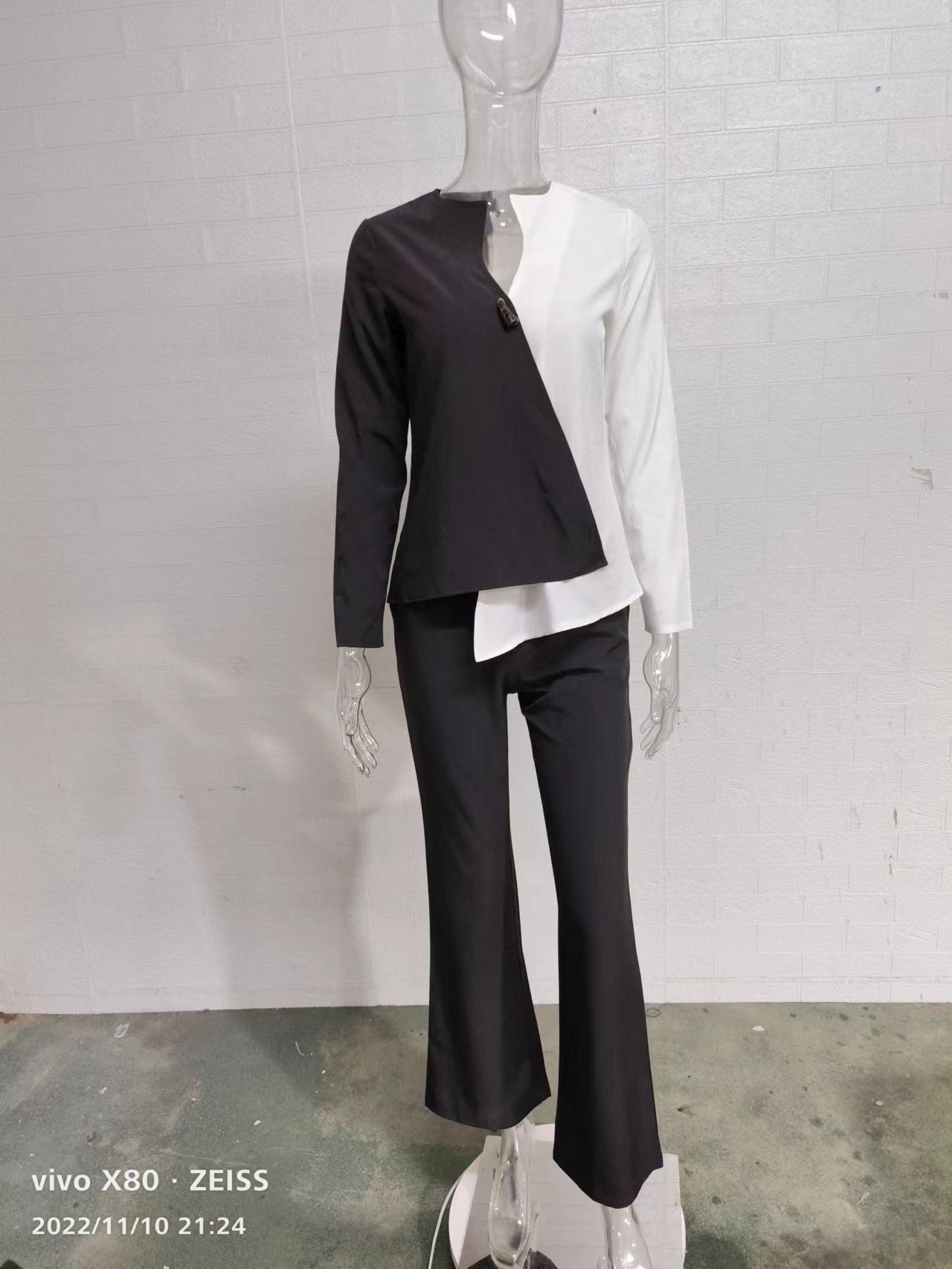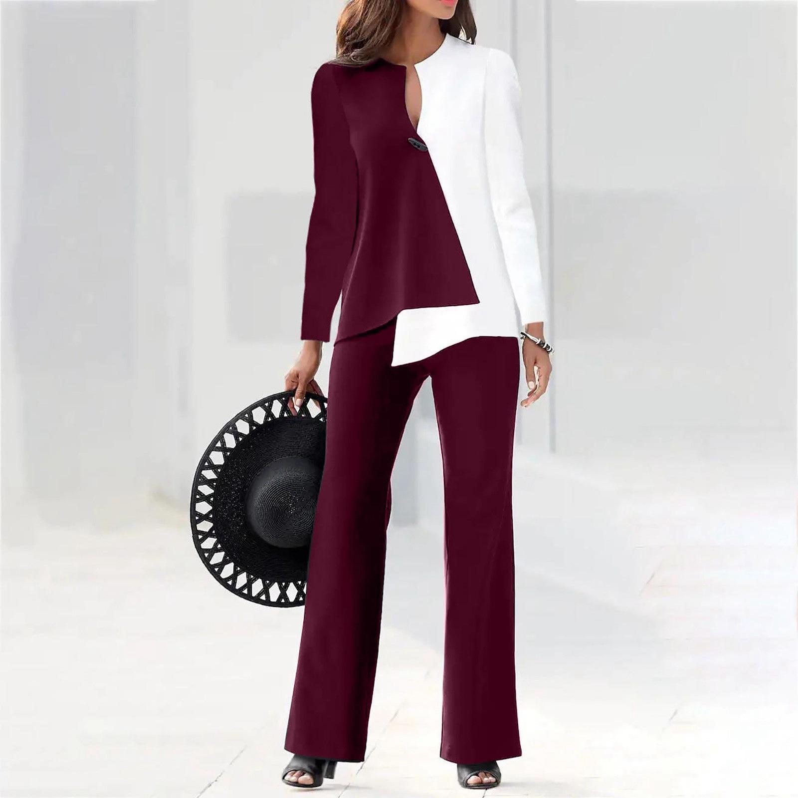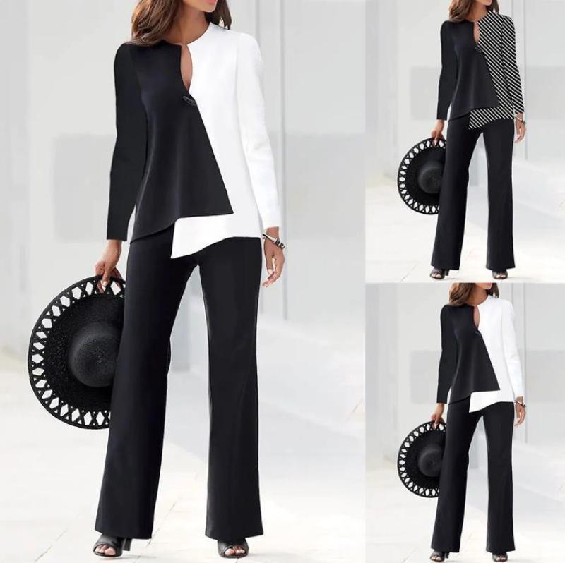 2024 봄과 가을 국경 유럽과 미국 아마존 패션 기질 통근 컬러 매칭 느슨한 바지 새로운 투피스 세트