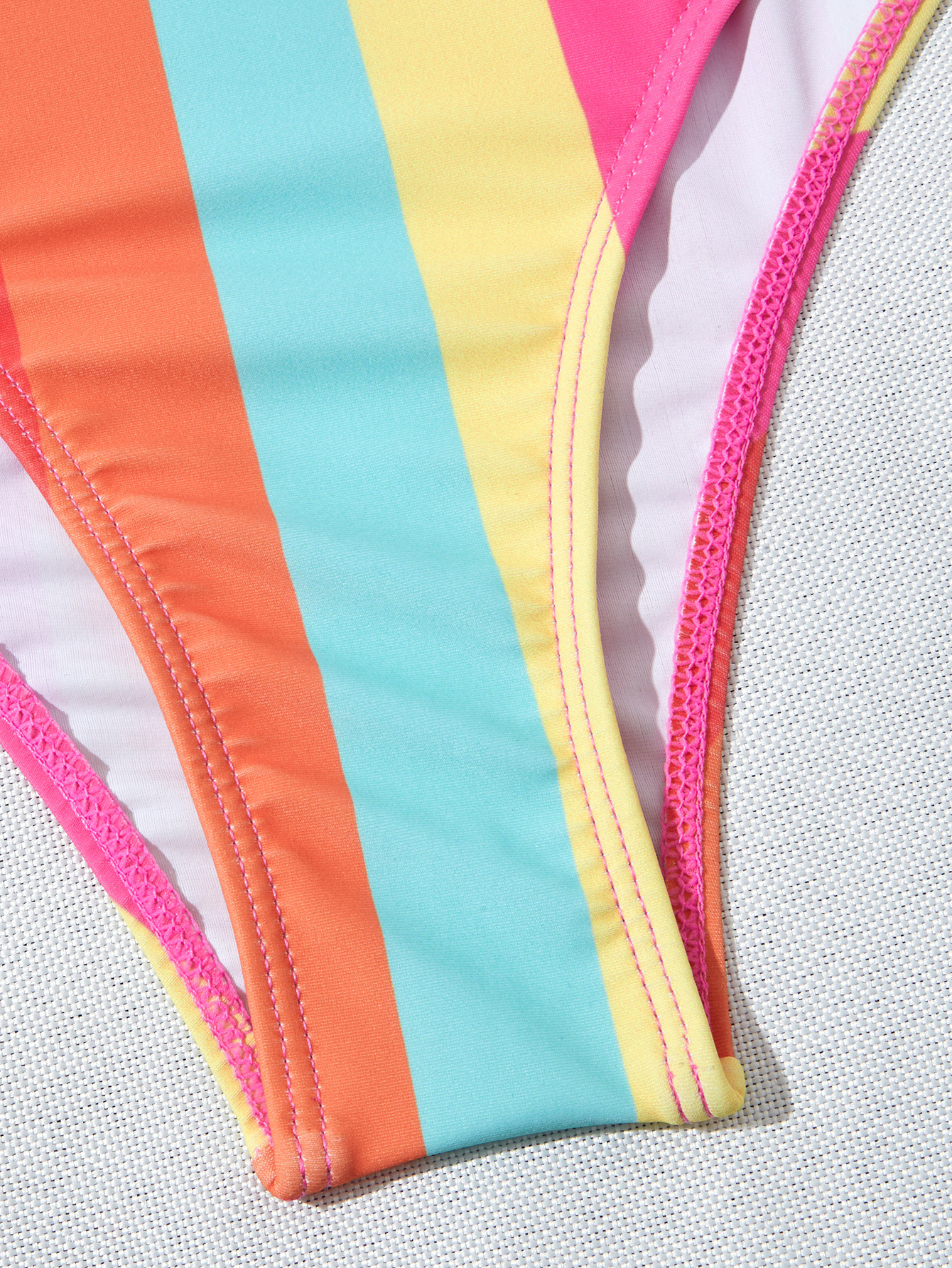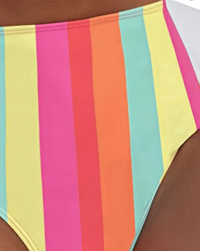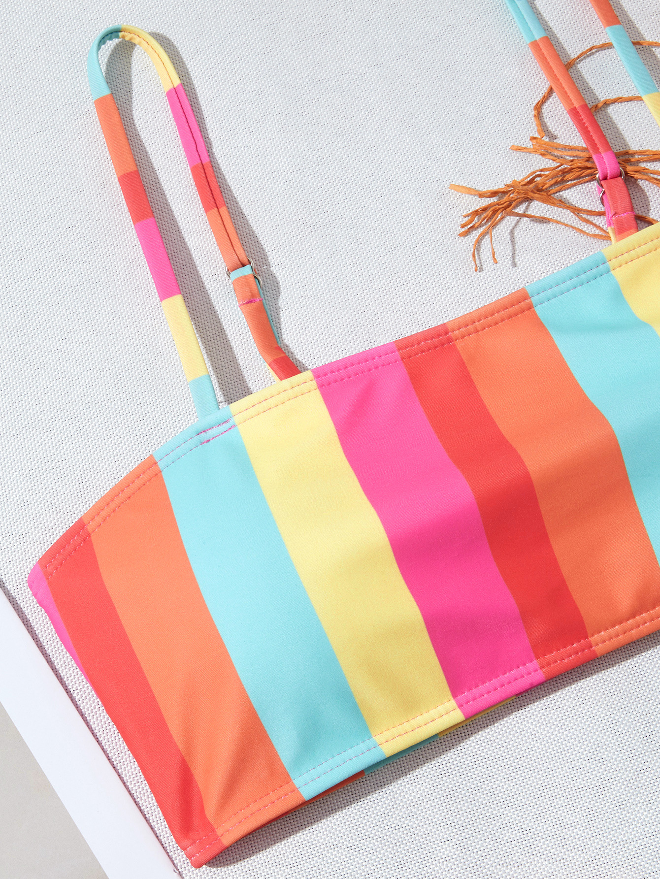 2024 새로운 유럽과 미국의 국경 간 대외 무역 스트라이프 인쇄 스트랩리스 얇은 어깨 스트랩 높은 허리 분할 수영복 비키니 여성