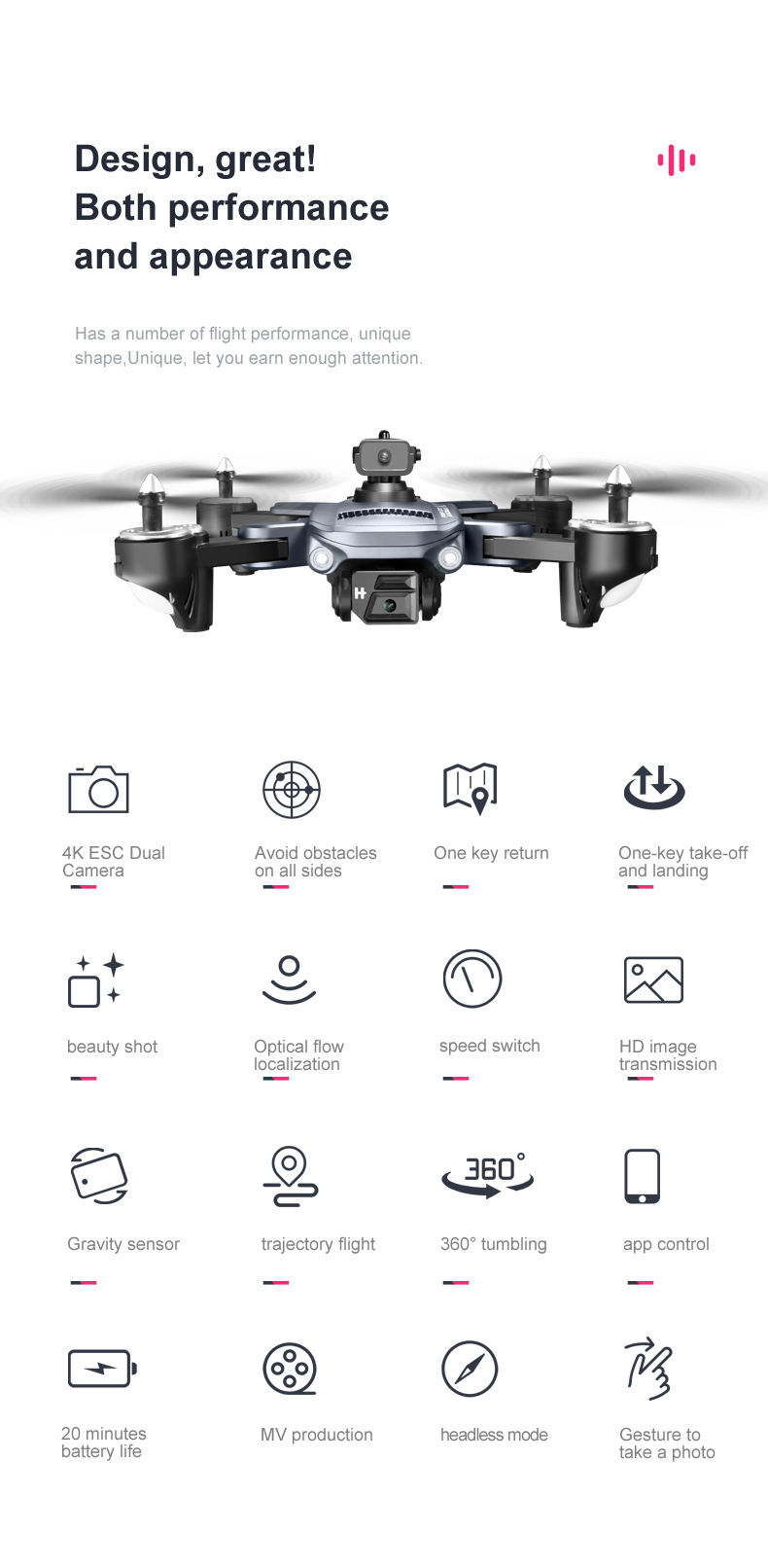 • 블랙-스몰 K7 [8K 전자조절 듀얼 카메라 +360°포괄적인 장애물 회피 + 광학 흐름 포지셔닝]