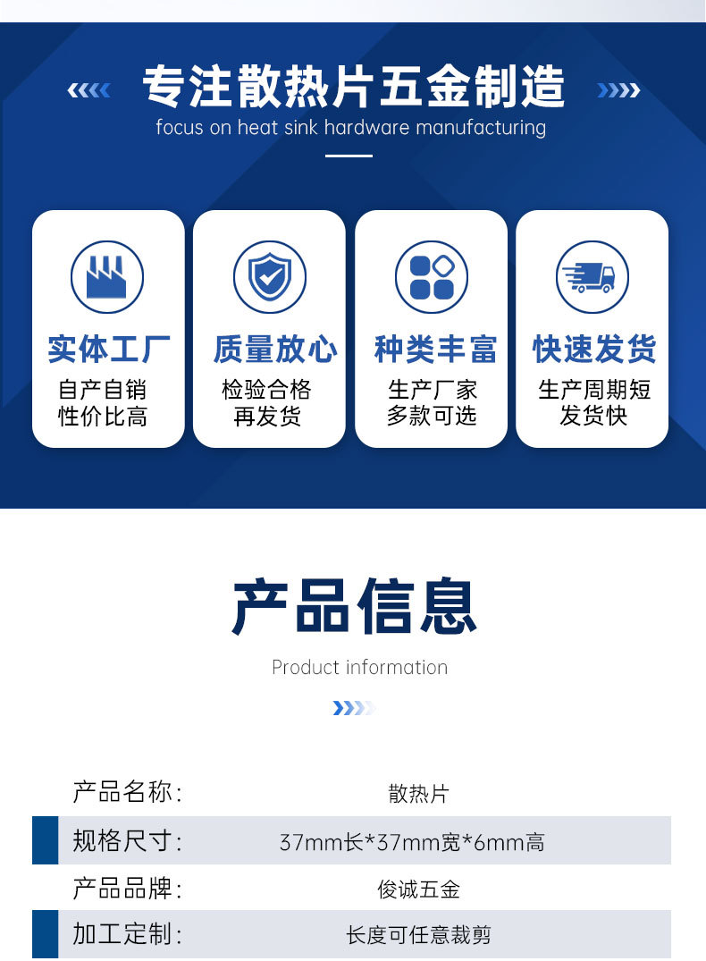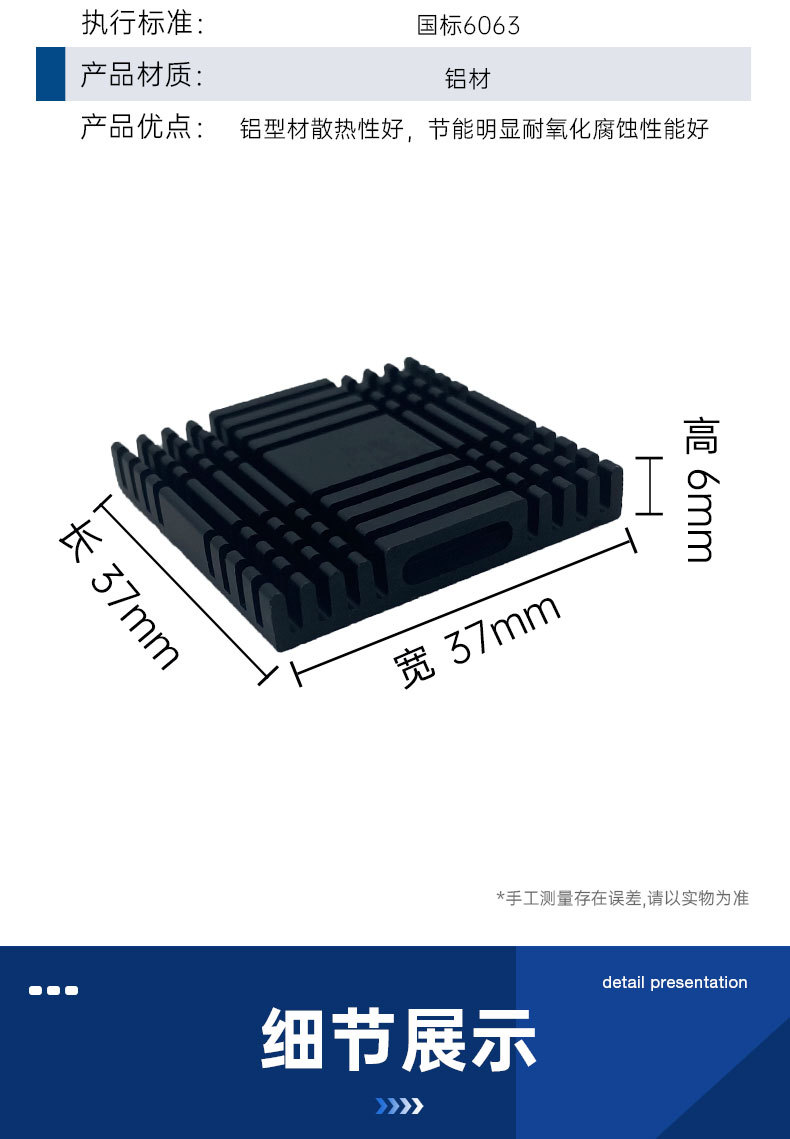 알루미늄 방열판 37*37*6MM CPU 깨진 방열판 칩 MOS 그래픽 카드 접착 전자 라디에이터