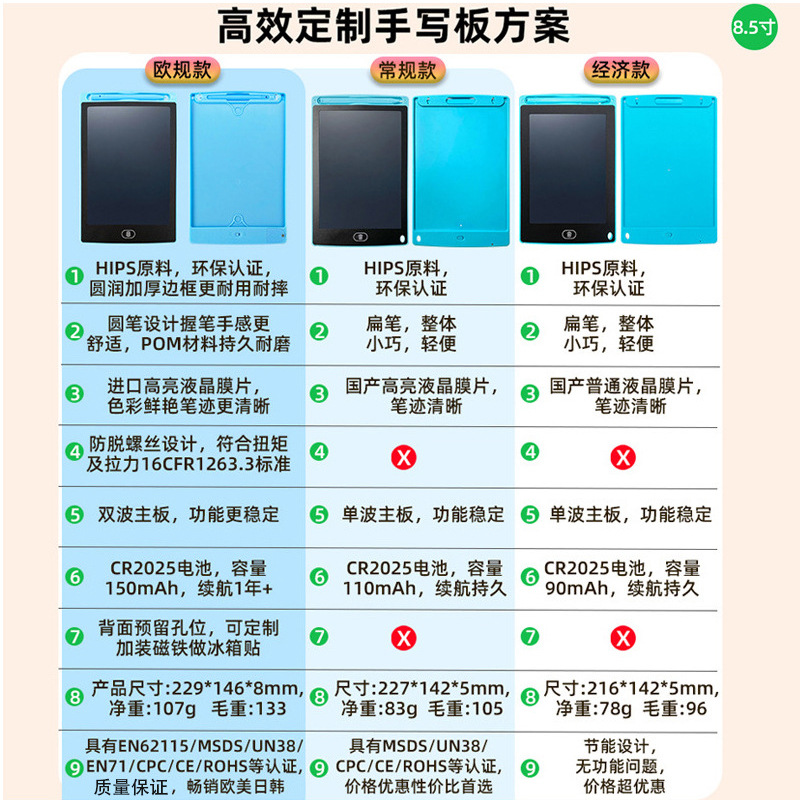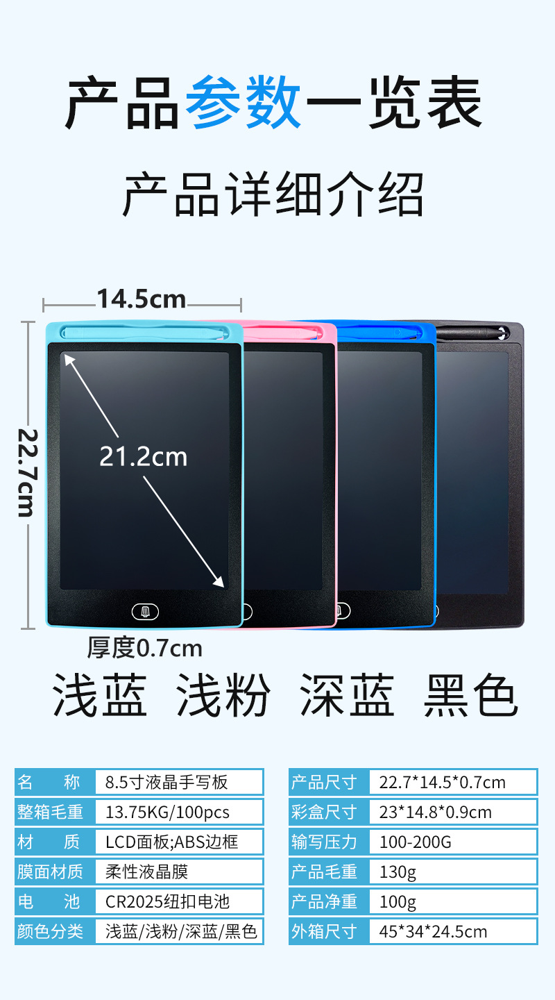 8.5 인치 하이라이트 컬러 필기 어린이 LCD 드로잉 보드 전자 필기 보드 LCD 드로잉 보드 작은 칠판 대외 무역