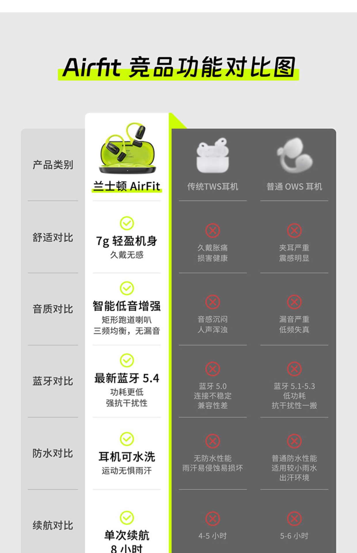Lanston AirFit 블루투스 헤드셋 귀에 매달린 뼈 전도 개념이 귀에 들어 가지 않습니다.