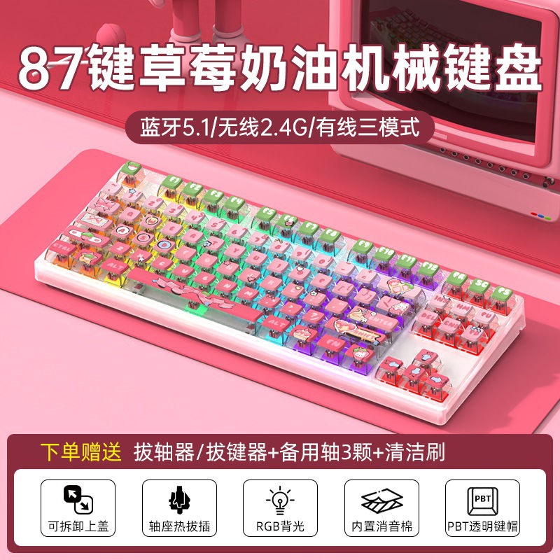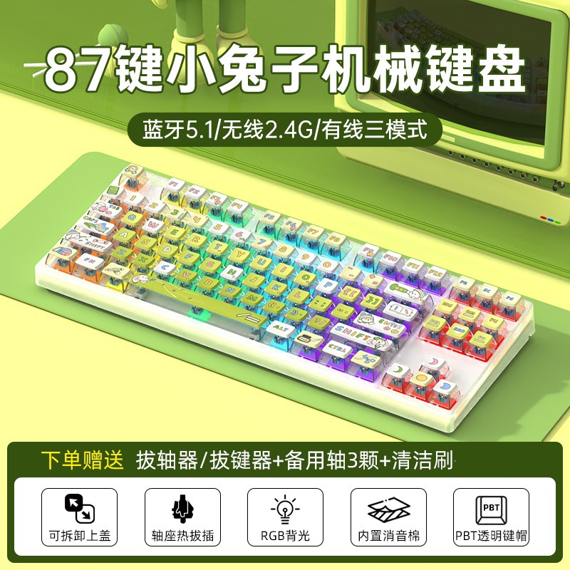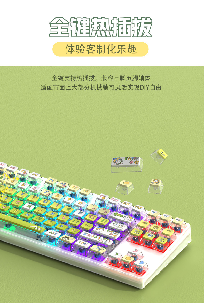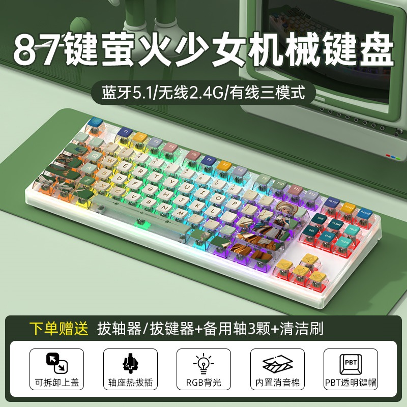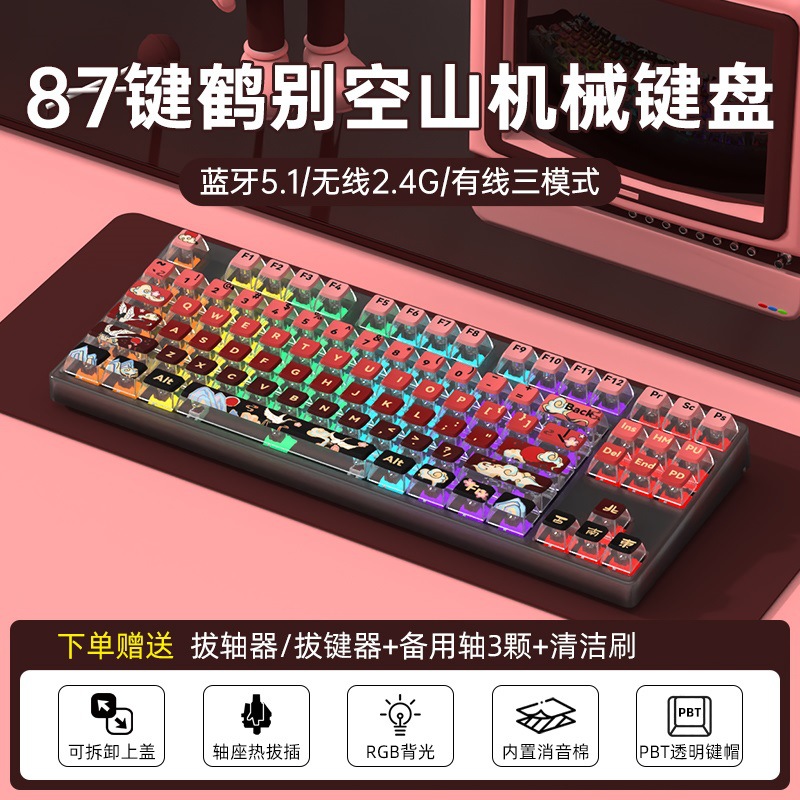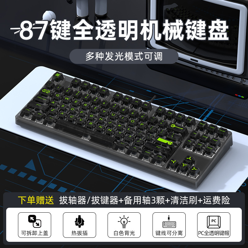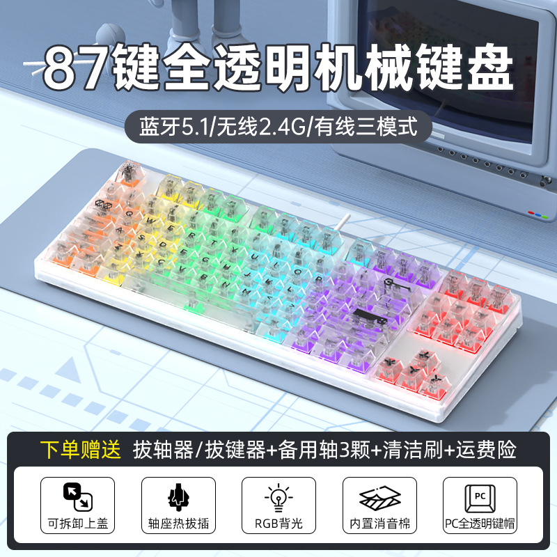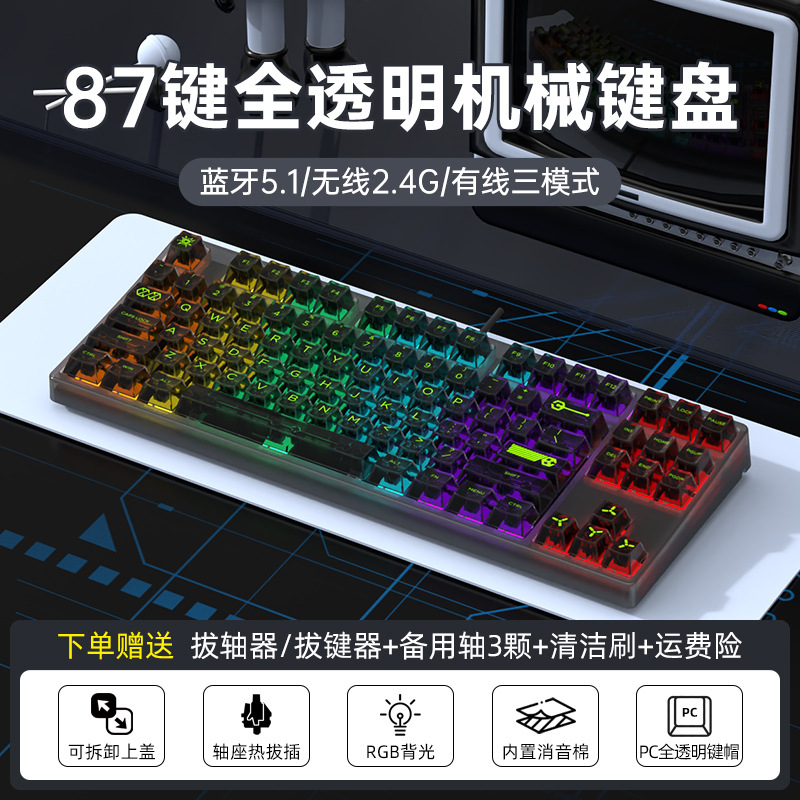 87 키 무선 블루투스 3 모드 완전 투명 기계식 키보드 소녀 RGB 맞춤형 핫 플러그 녹색 홍차 블랙 샤프트스토어 가기