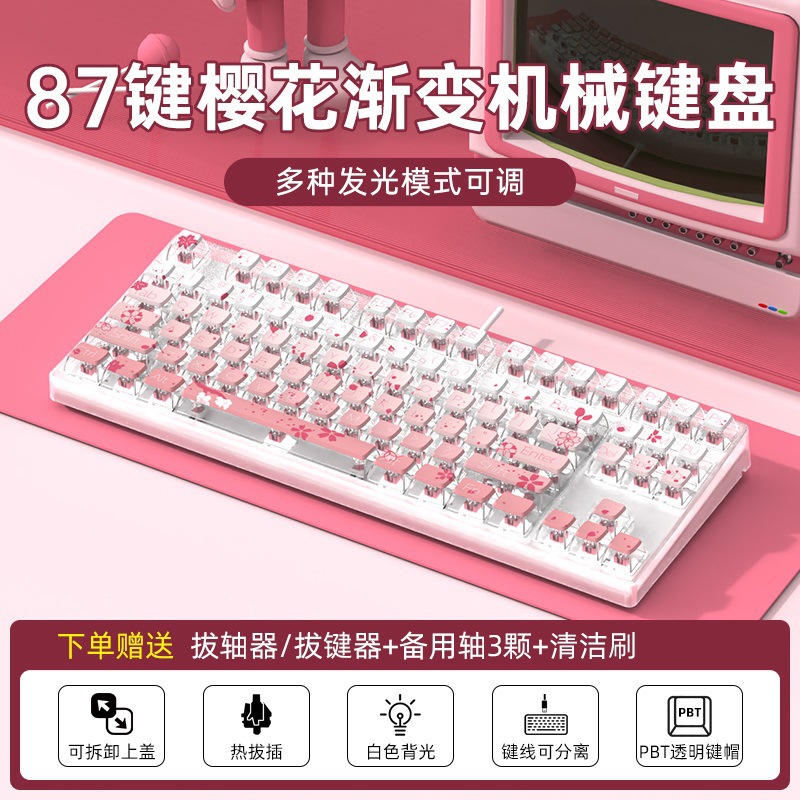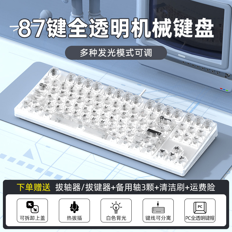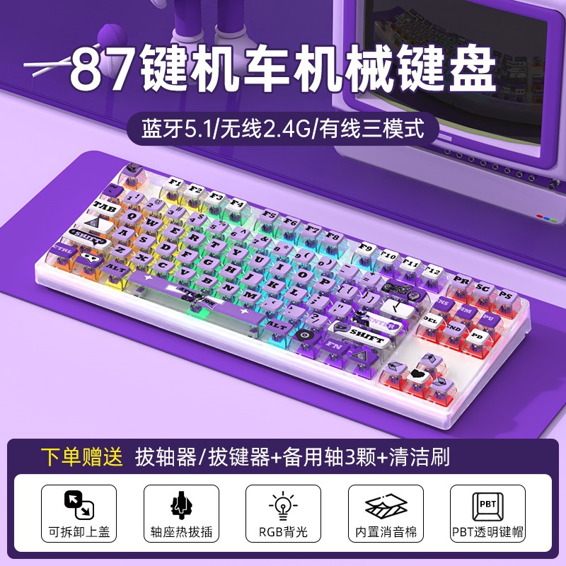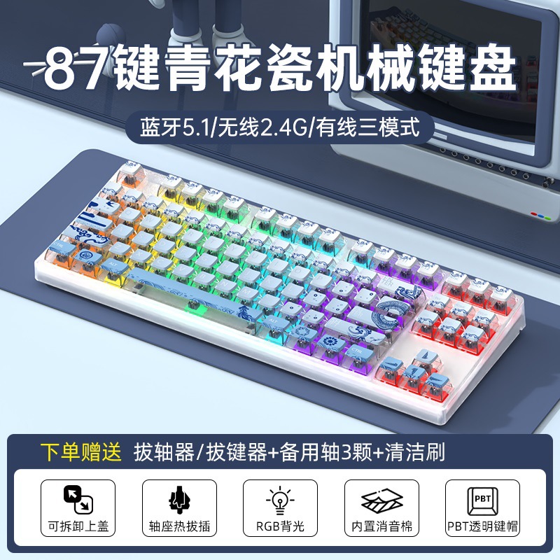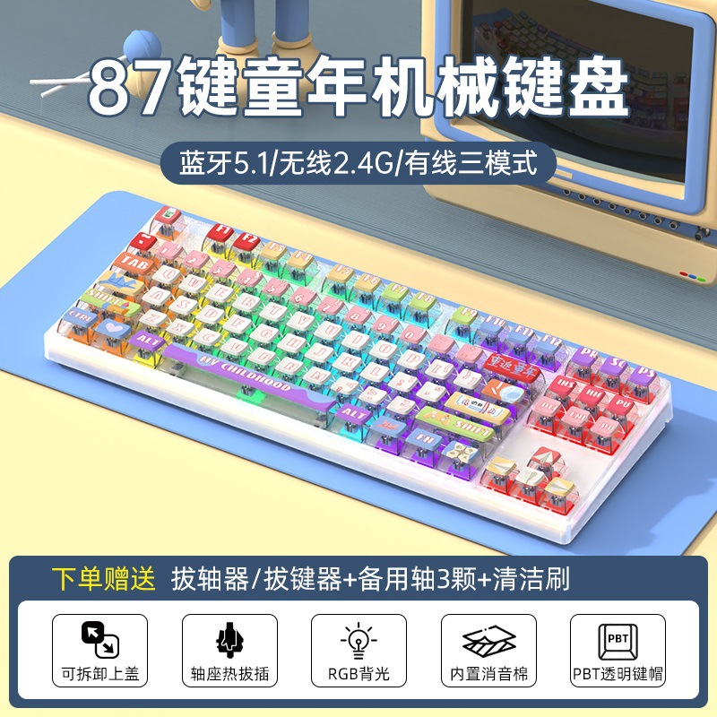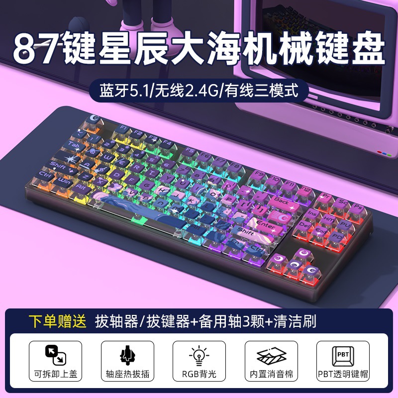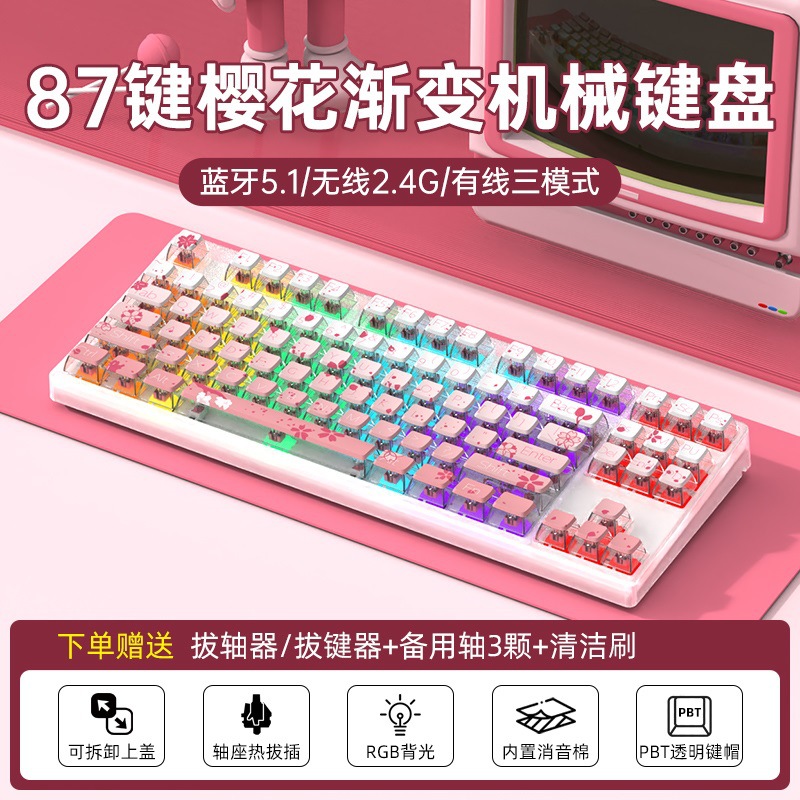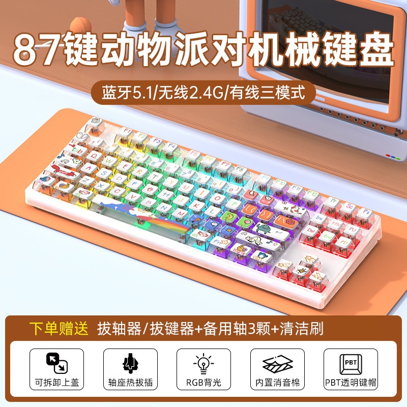 87 키 무선 블루투스 3 모드 완전 투명 기계식 키보드 소녀 RGB 맞춤형 핫 플러그 녹색 홍차 블랙 샤프트스토어 가기