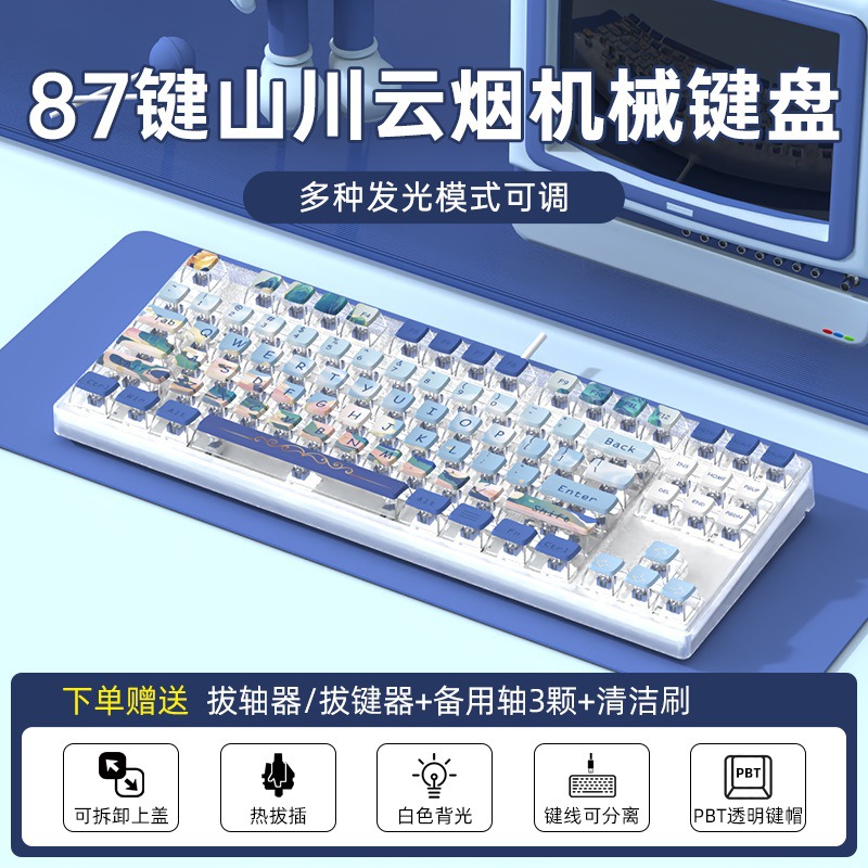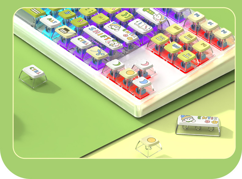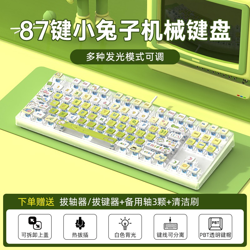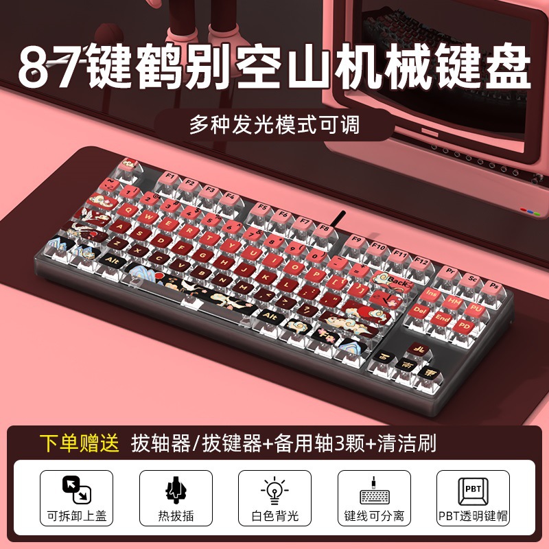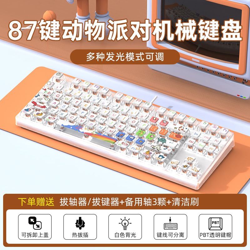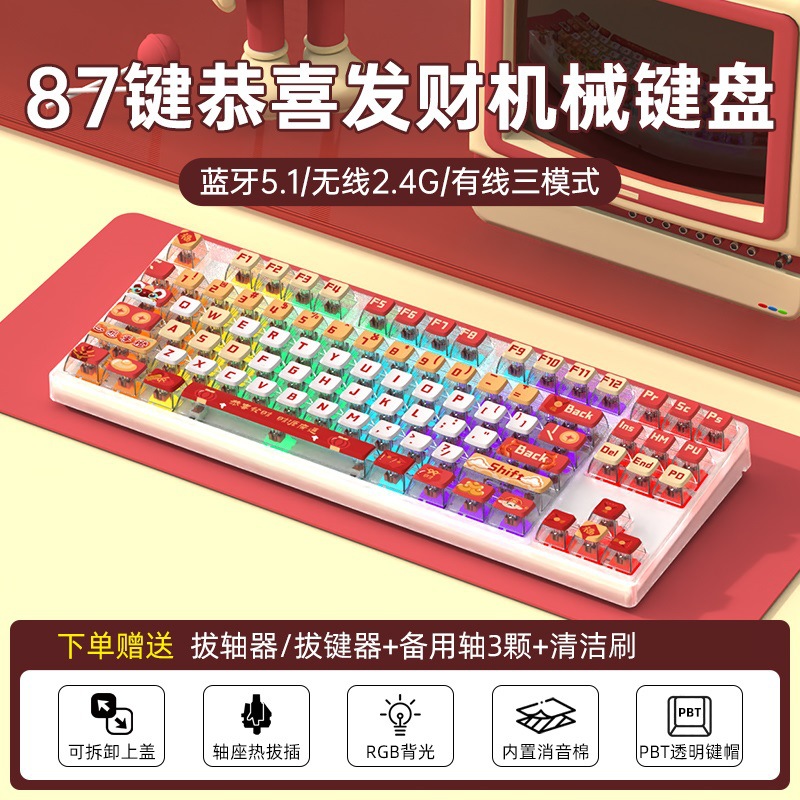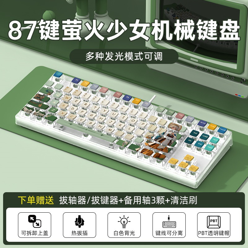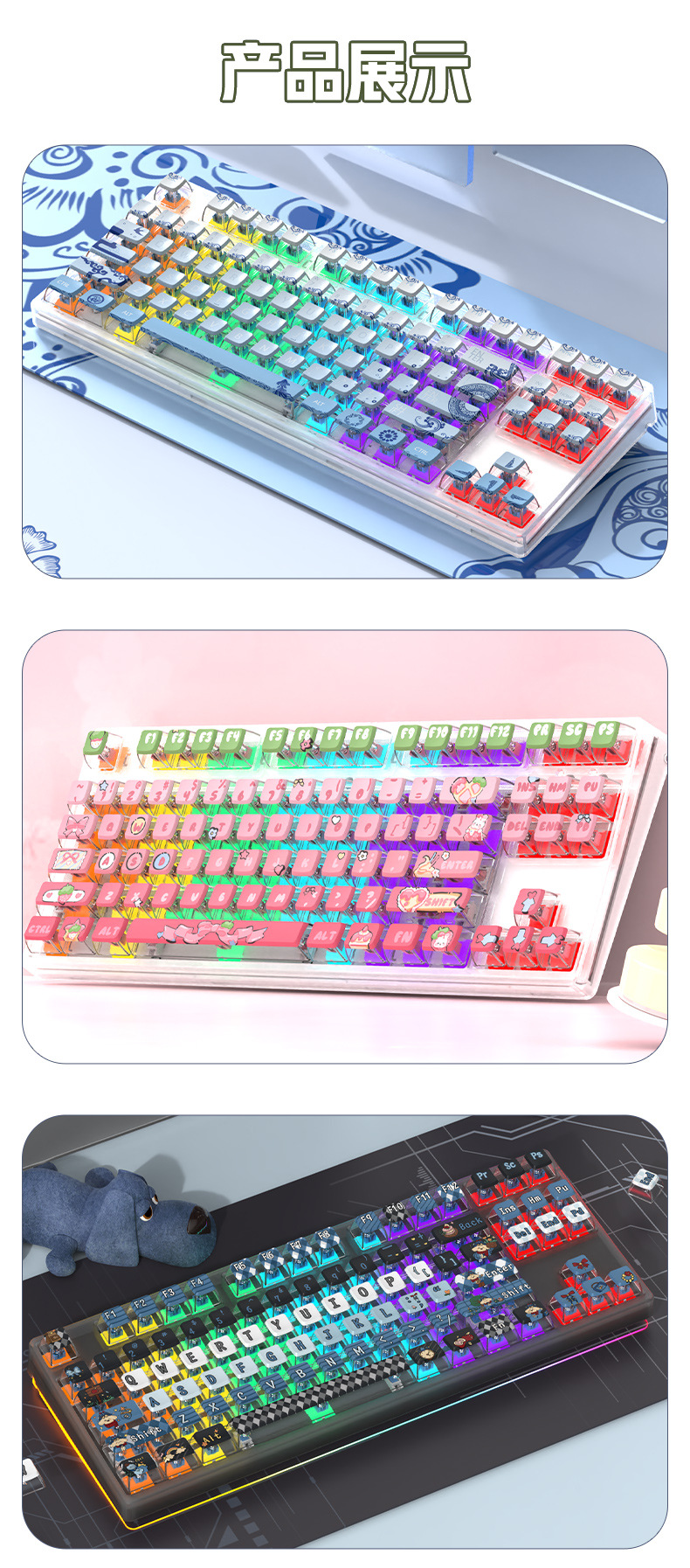 87 키 무선 블루투스 3 모드 완전 투명 기계식 키보드 소녀 RGB 맞춤형 핫 플러그 녹색 홍차 블랙 샤프트스토어 가기