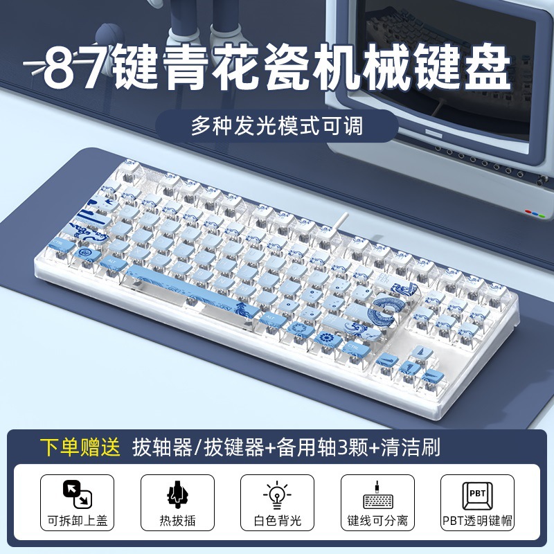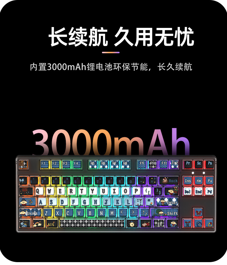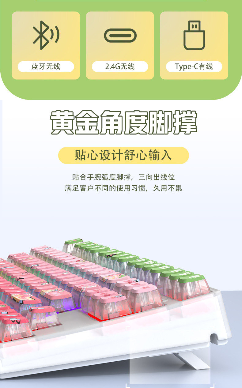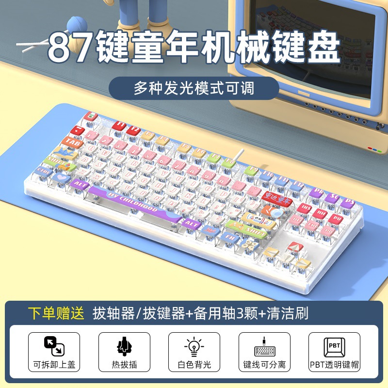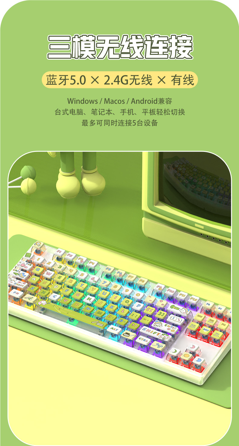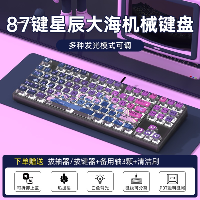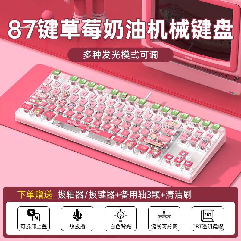 87 키 무선 블루투스 3 모드 완전 투명 기계식 키보드 소녀 RGB 맞춤형 핫 플러그 녹색 홍차 블랙 샤프트스토어 가기