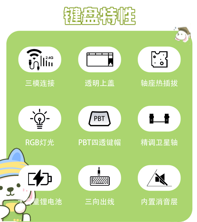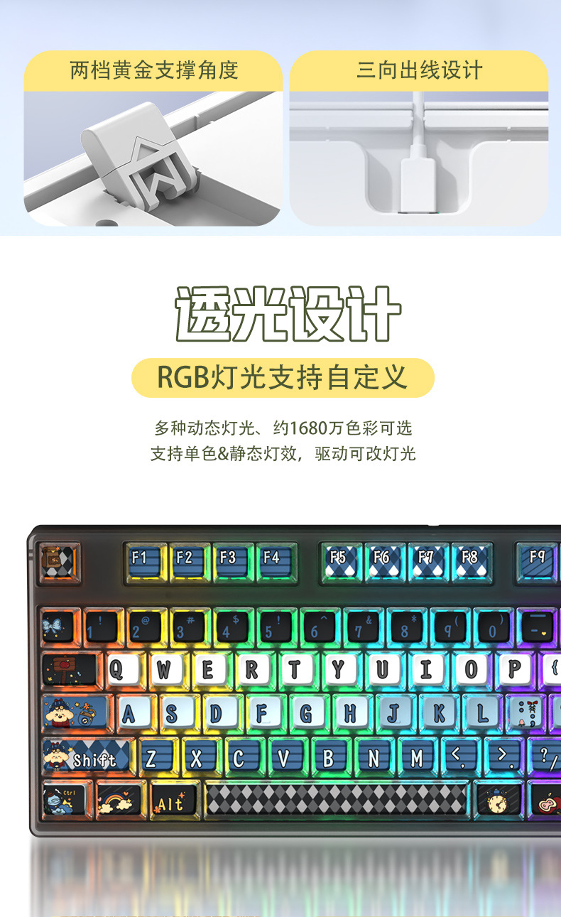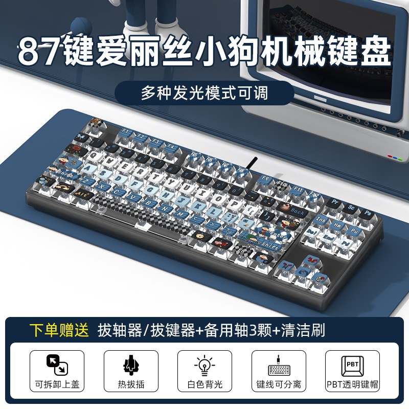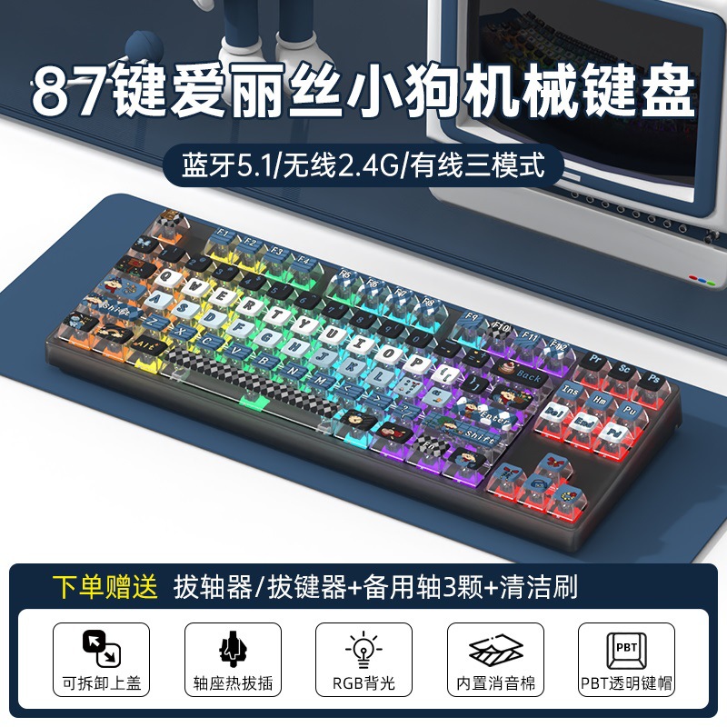 • 87 무선 3 모드-RGB 빛-투명 블랙-앨리스 강아지
