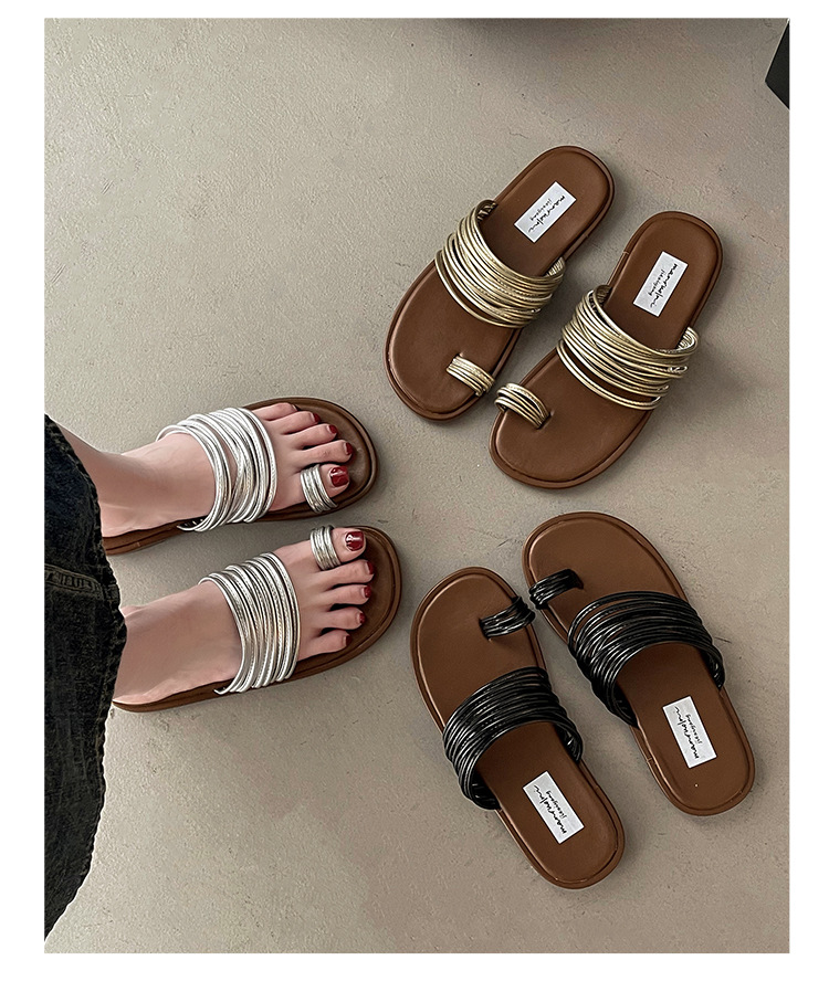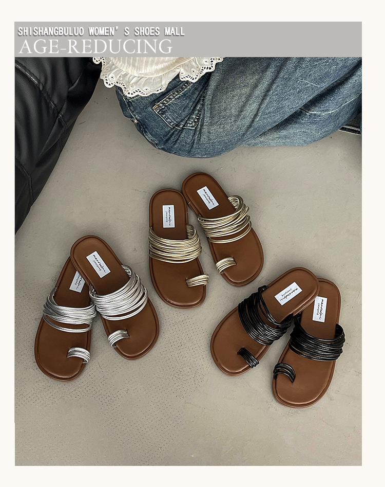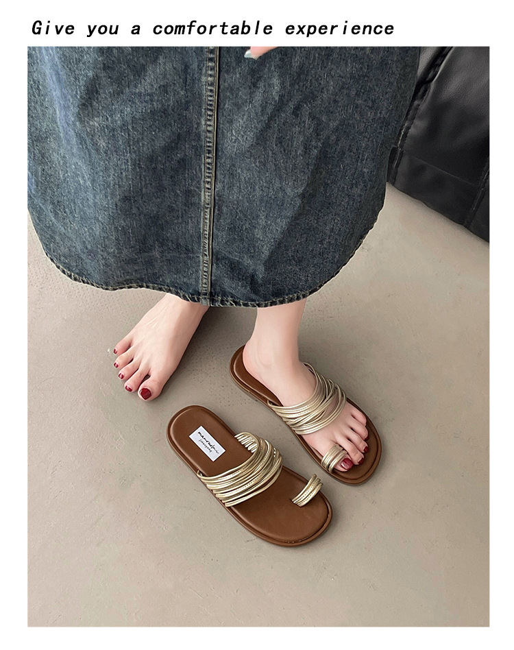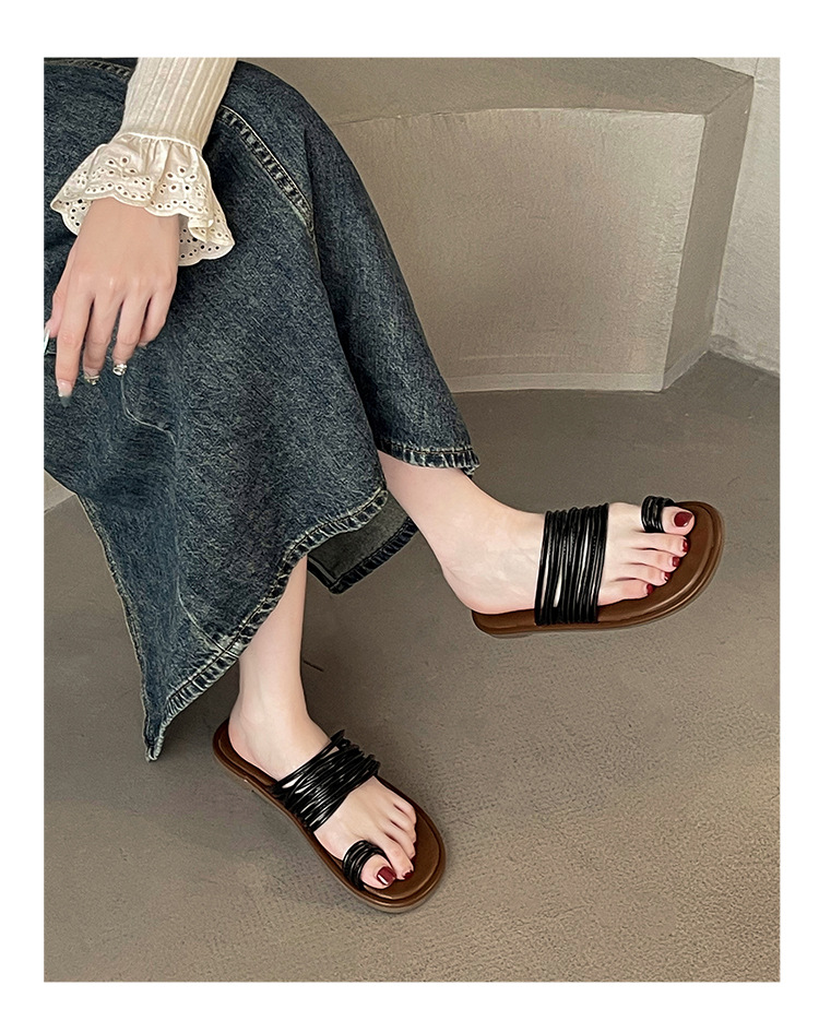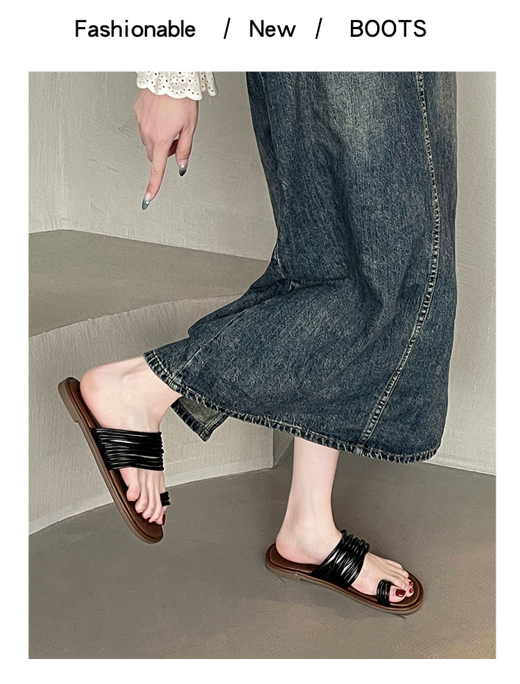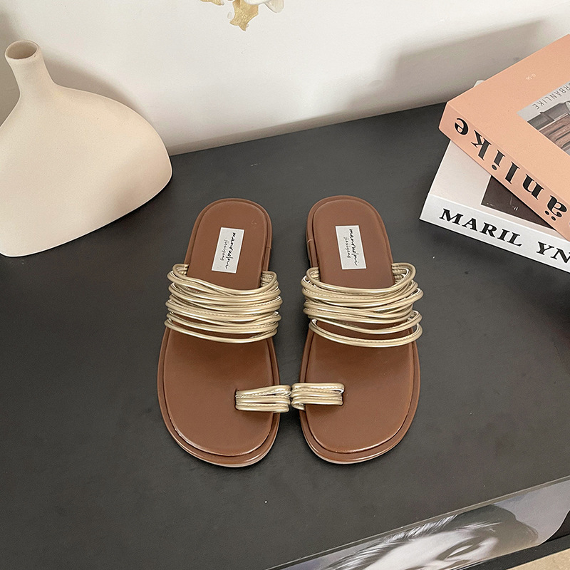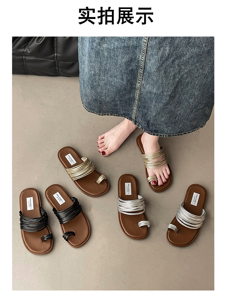 프랑스 스타일 플랫 발가락 샌들과 슬리퍼 여성 여름 외부 착용 2024 새로운 슈퍼 인기 작은 해변 슬리퍼스토어 가기