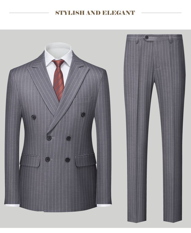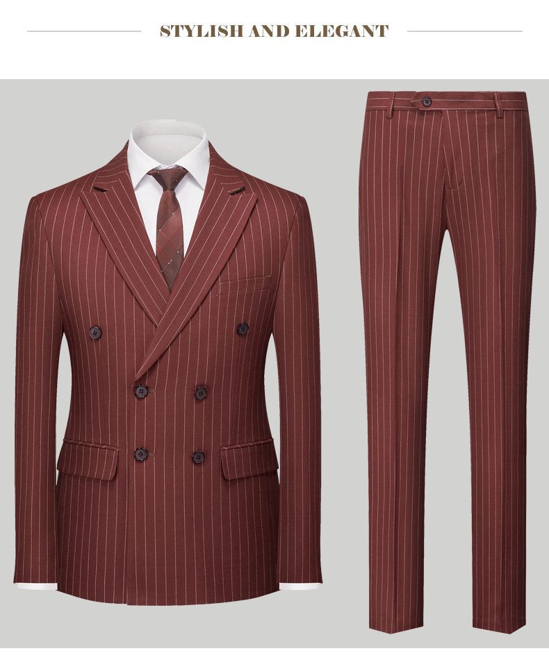 2025 실투 신상 남성 스트라이프 무늬 수출용 아마존 정장 투피스 남성 더블 슬릿 수트 세트
