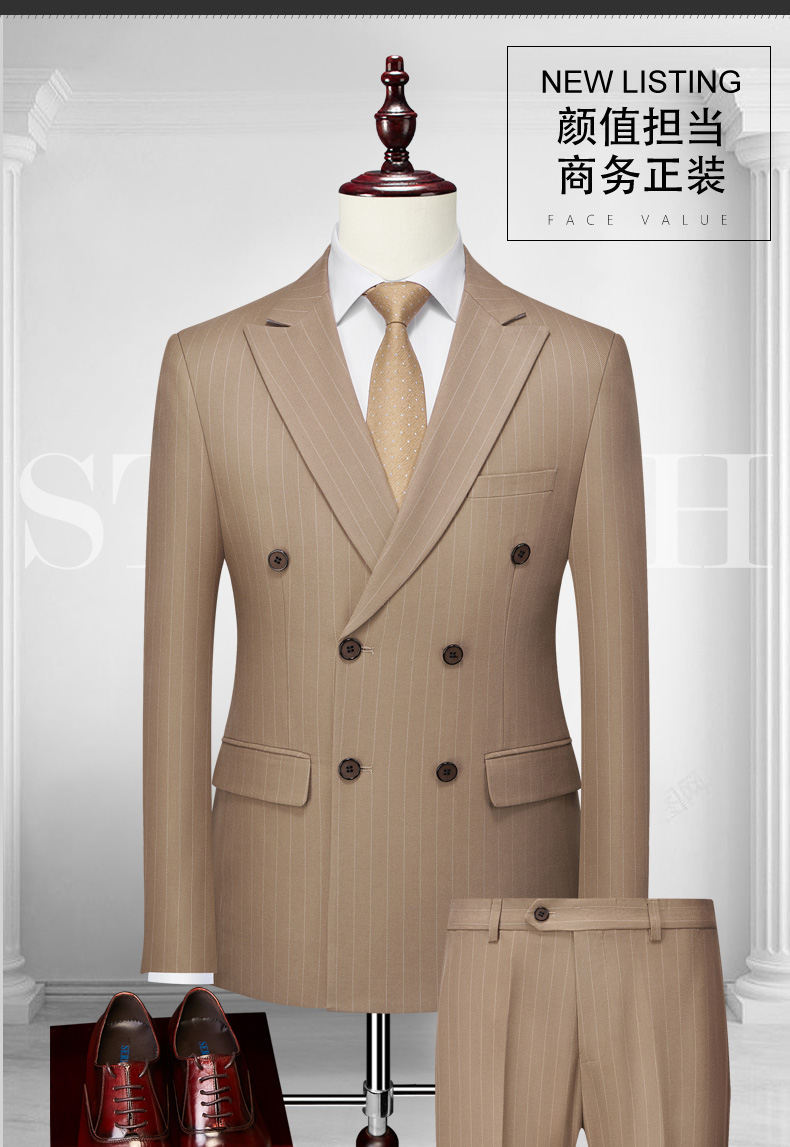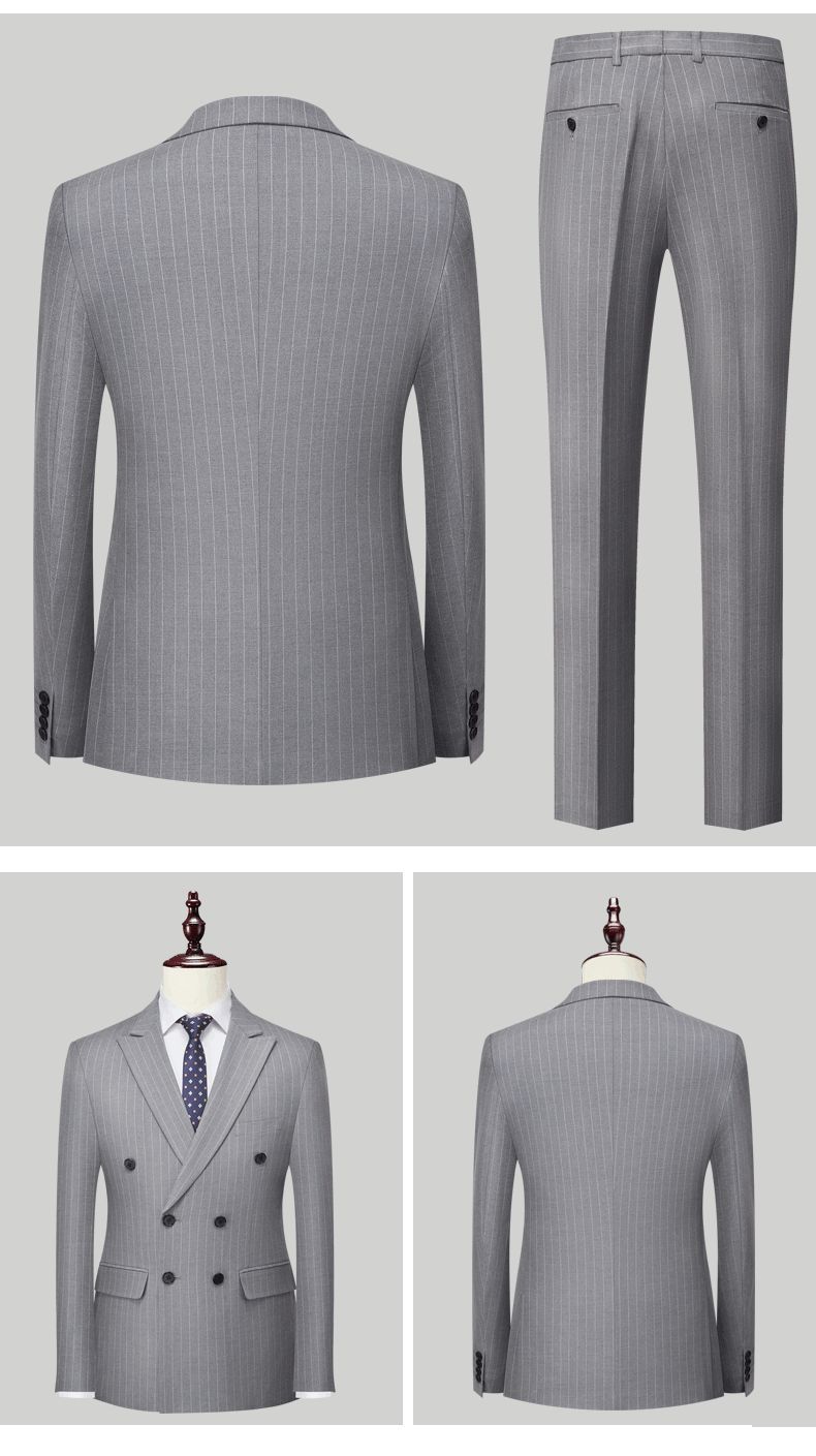 2025 실투 신상 남성 스트라이프 무늬 수출용 아마존 정장 투피스 남성 더블 슬릿 수트 세트스토어 가기