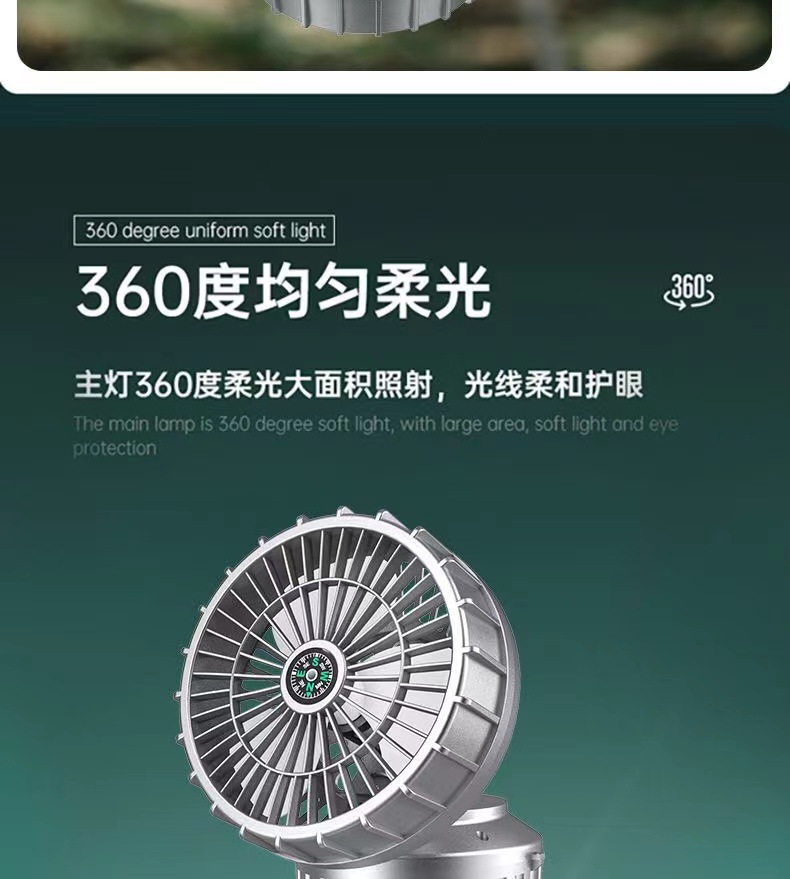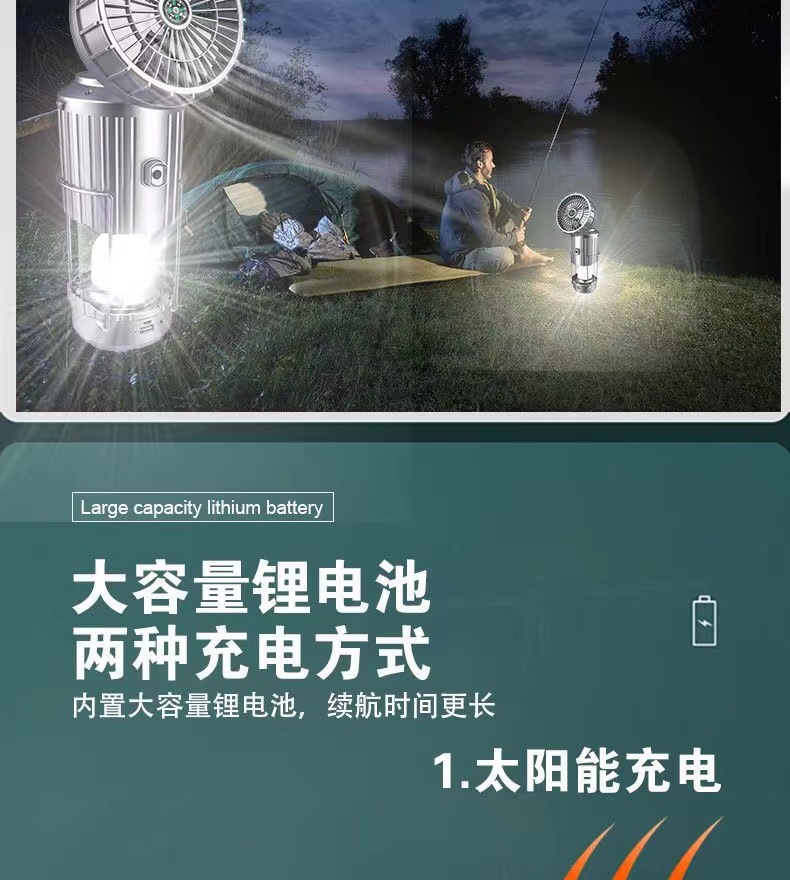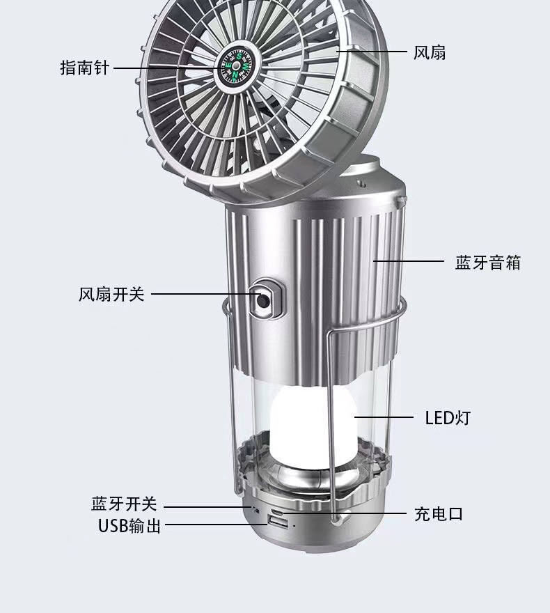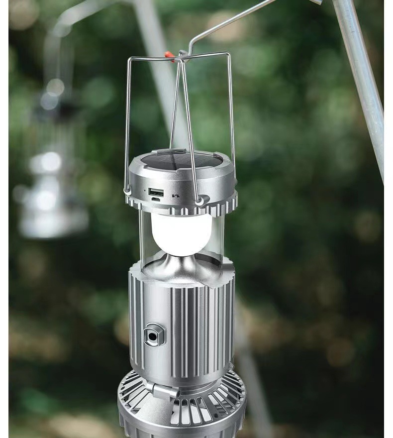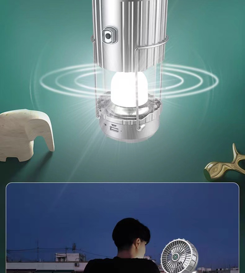 • 실버 팬 캠핑 램프 [충전식 휴대 전화 배터리 장착 가능]]