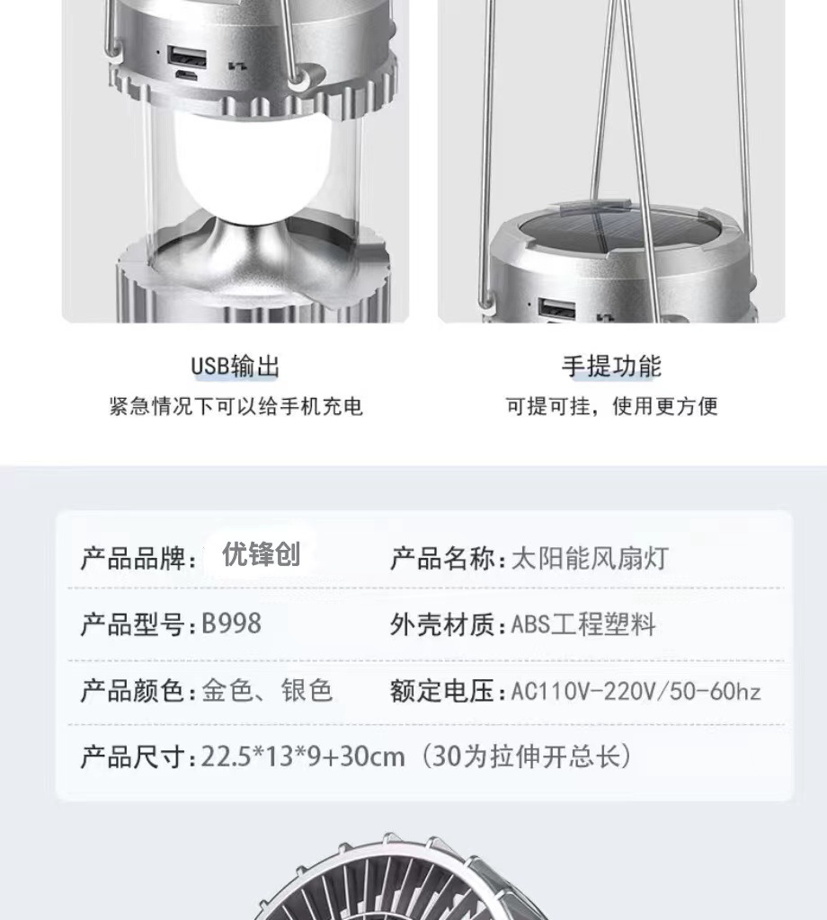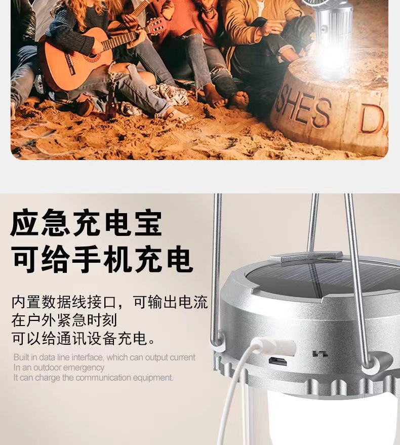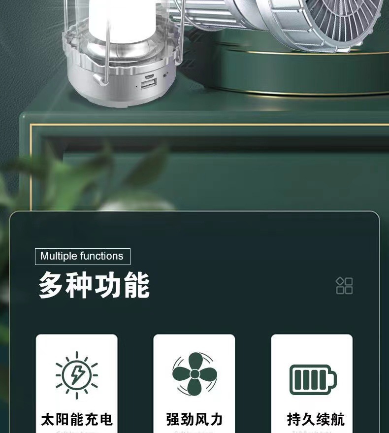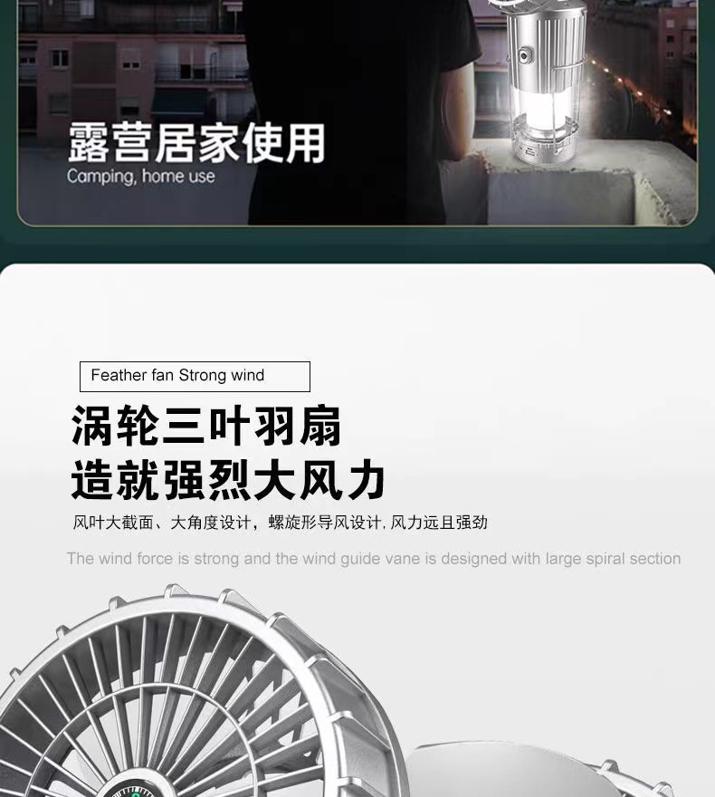 • 실버 팬 캠핑 램프 [충전식 휴대 전화 배터리 장착 가능]]