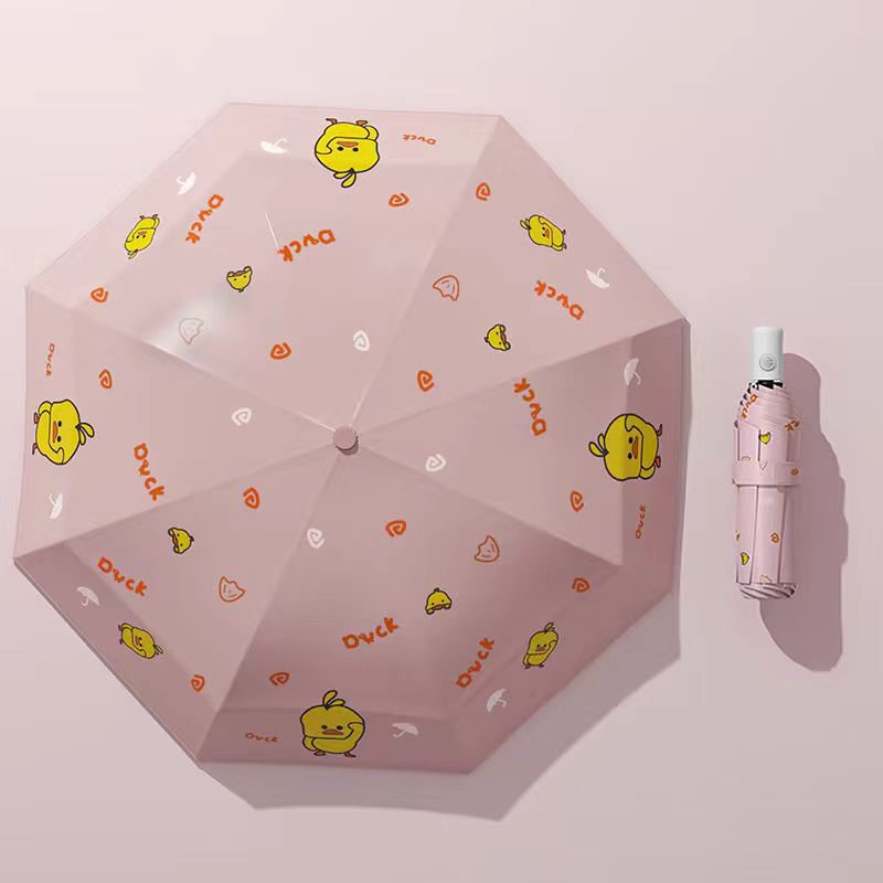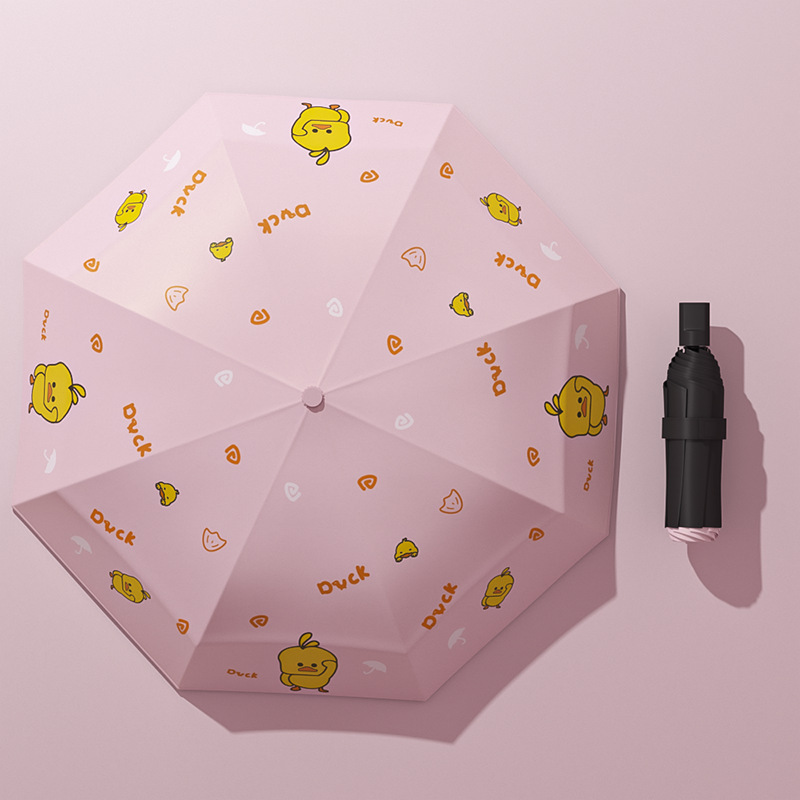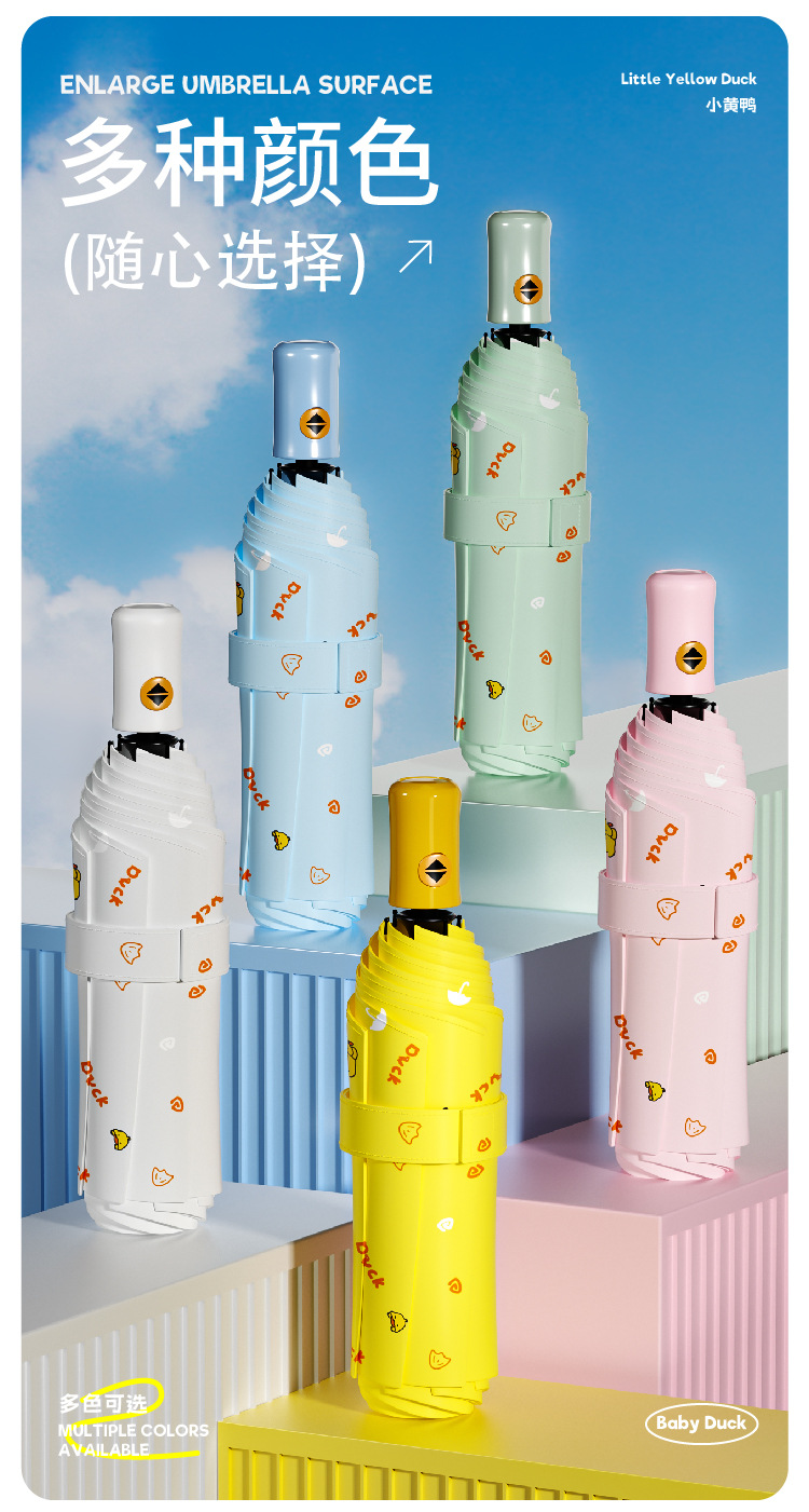 어린이 우산 만화 노란 오리 Ins 햇빛과 비 이중 사용 선 스크린 햇빛 우산 수동 접는 우산 검은 고무 태양 우산스토어 가기