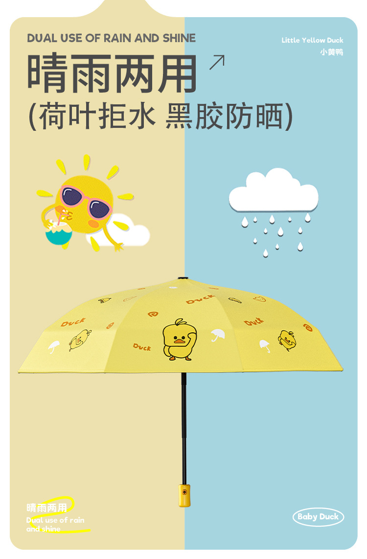 어린이 우산 만화 노란 오리 Ins 햇빛과 비 이중 사용 선 스크린 햇빛 우산 수동 접는 우산 검은 고무 태양 우산