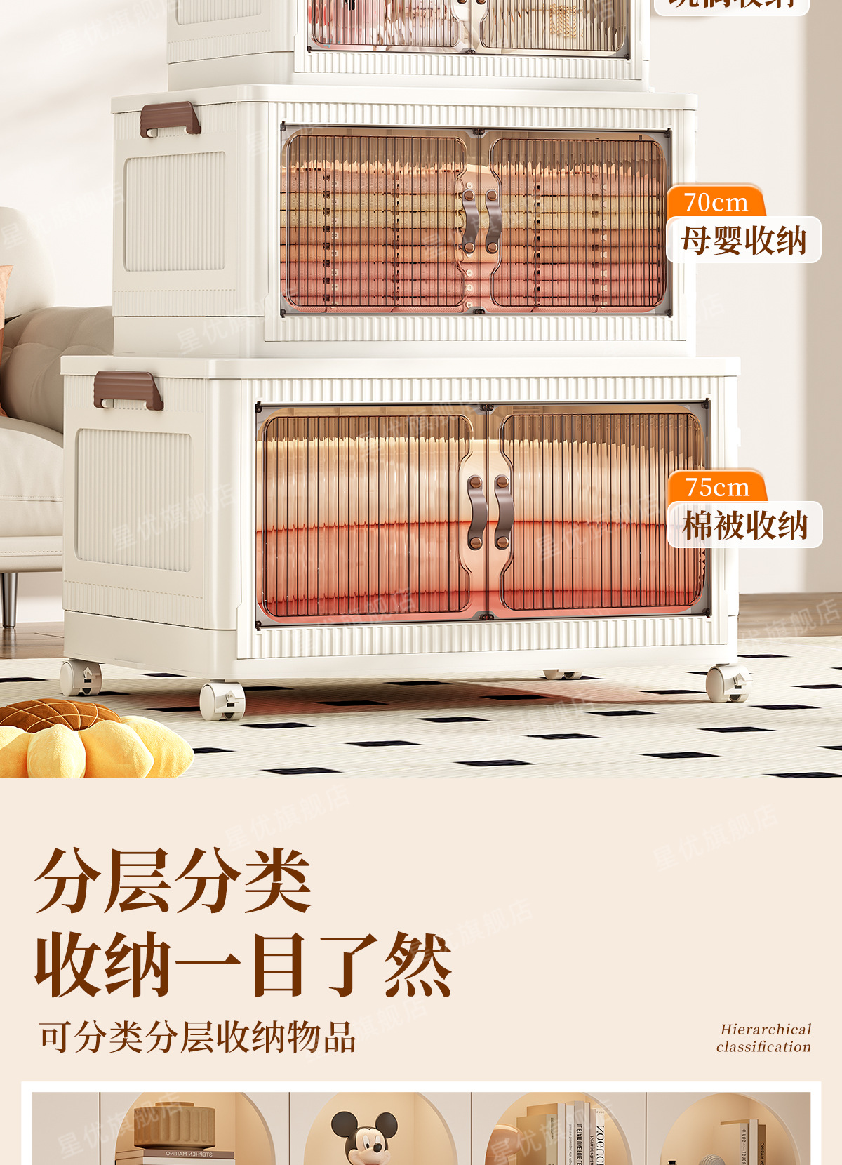 • [폭 75CM] 단색 3겹 패키지|커버 1개 + 상자 3개 + 도르래 4개