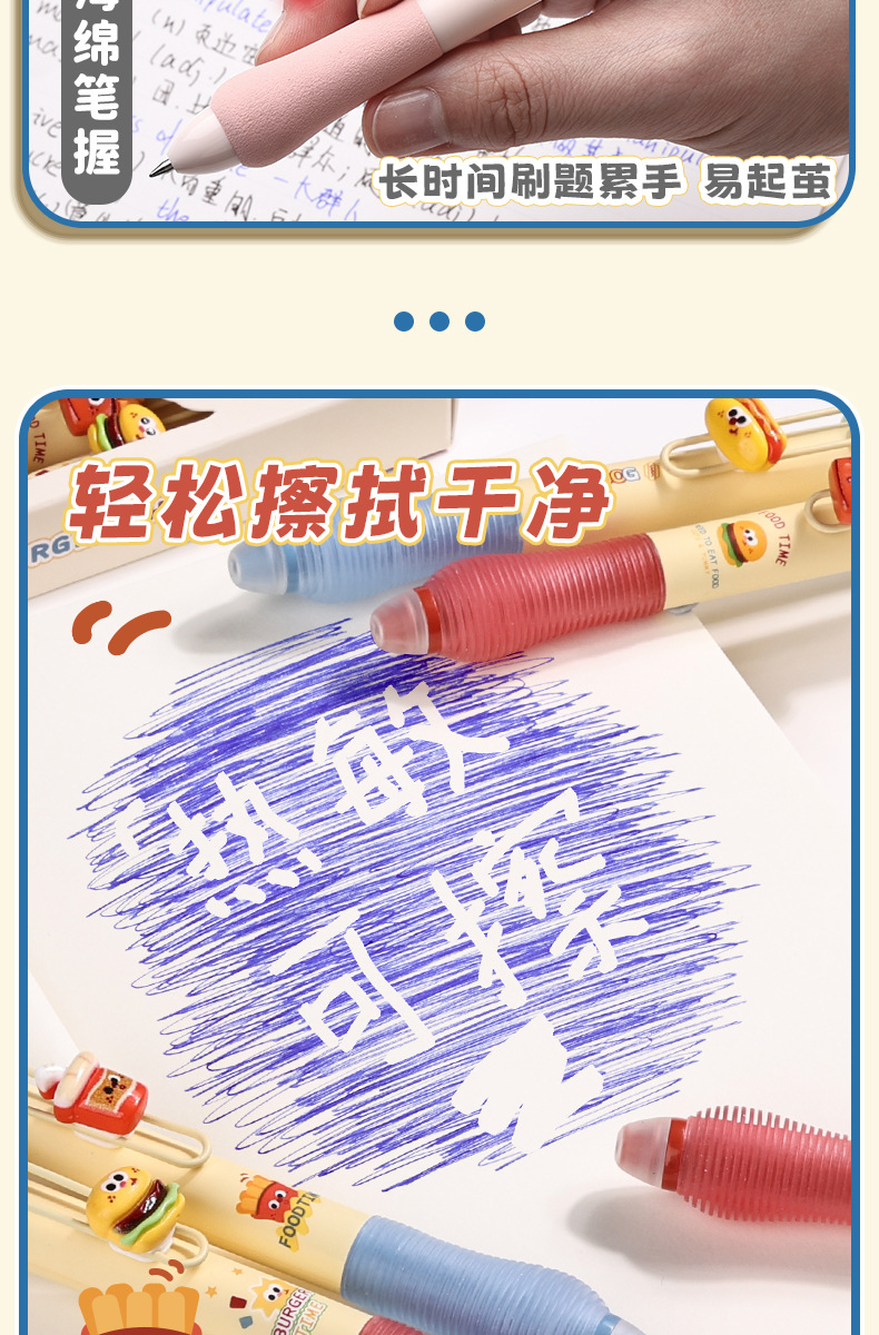 초등학생을위한 압축 감압 패치 소프트 그립 소거 가능한 펜 만화 블랙 크리스탈 블루 세트 남성과 여성을위한 높은 색상 값스토어 가기