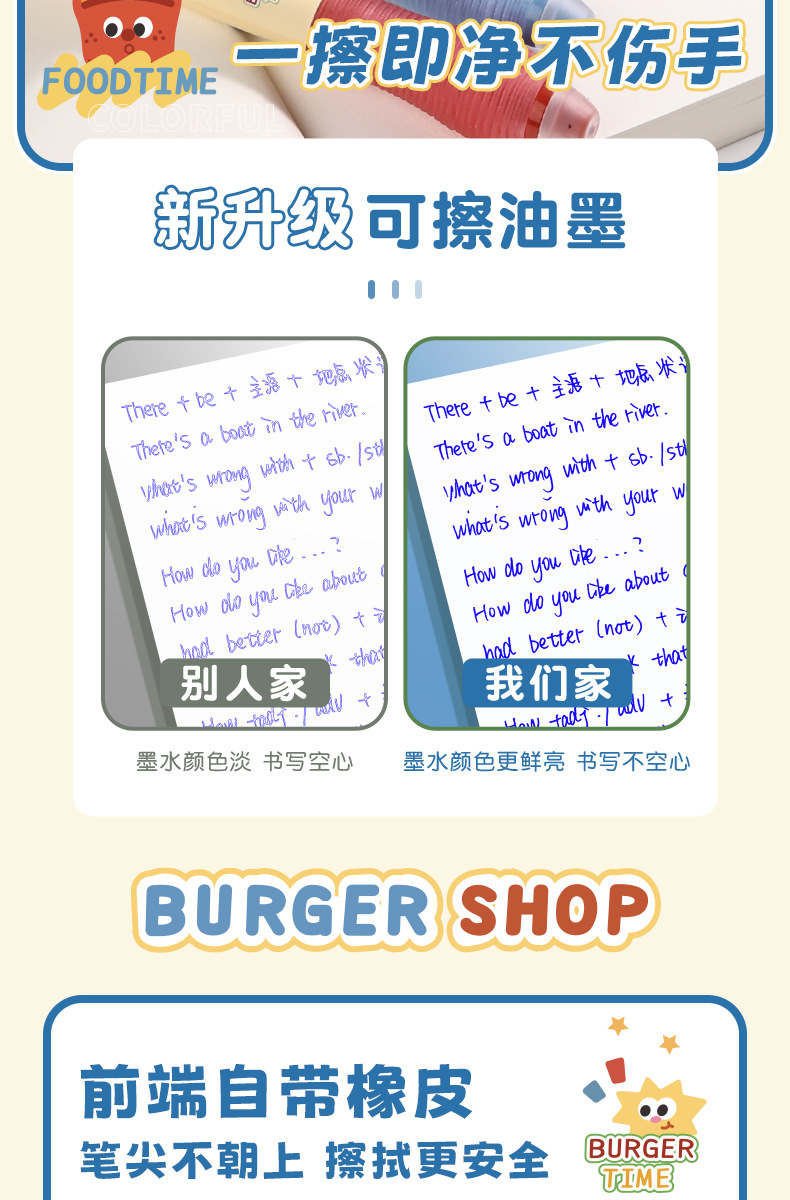 초등학생을위한 압축 감압 패치 소프트 그립 소거 가능한 펜 만화 블랙 크리스탈 블루 세트 남성과 여성을위한 높은 색상 값